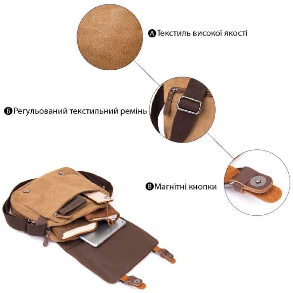 Незнімний текстильний ремінець на плече.