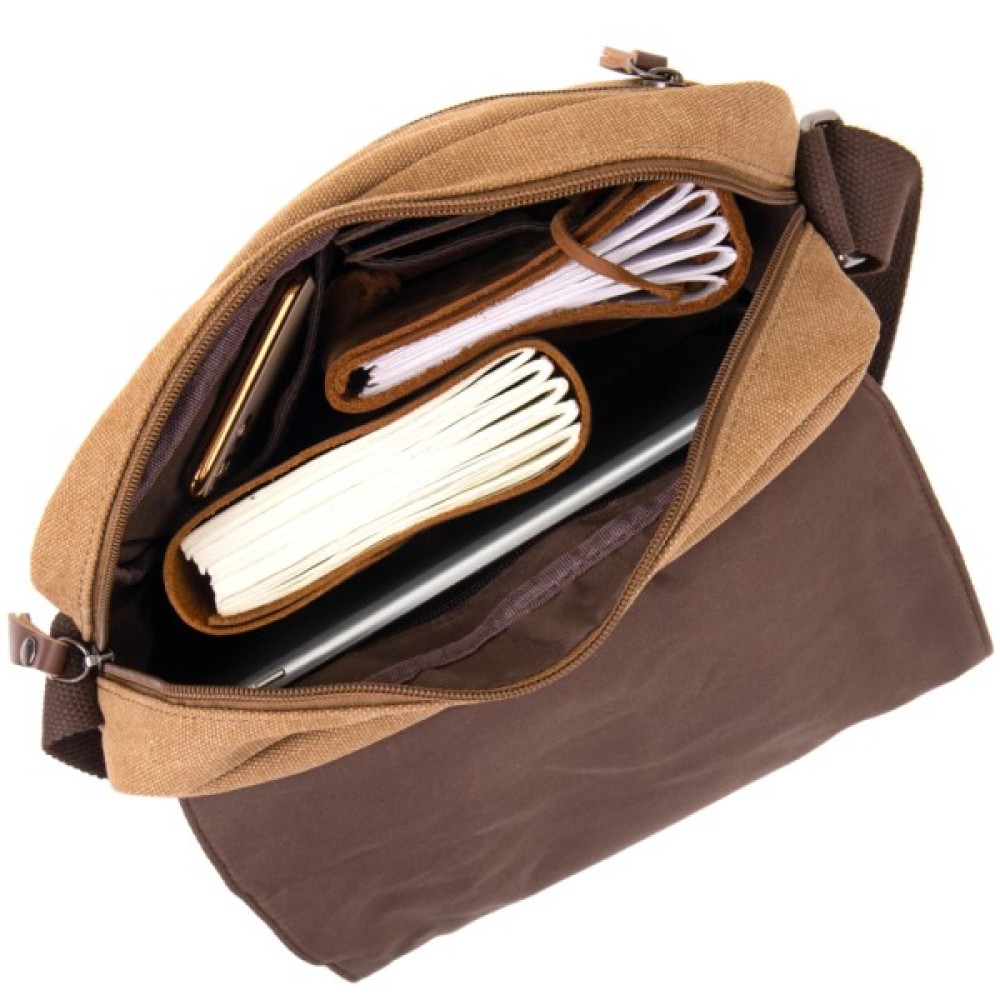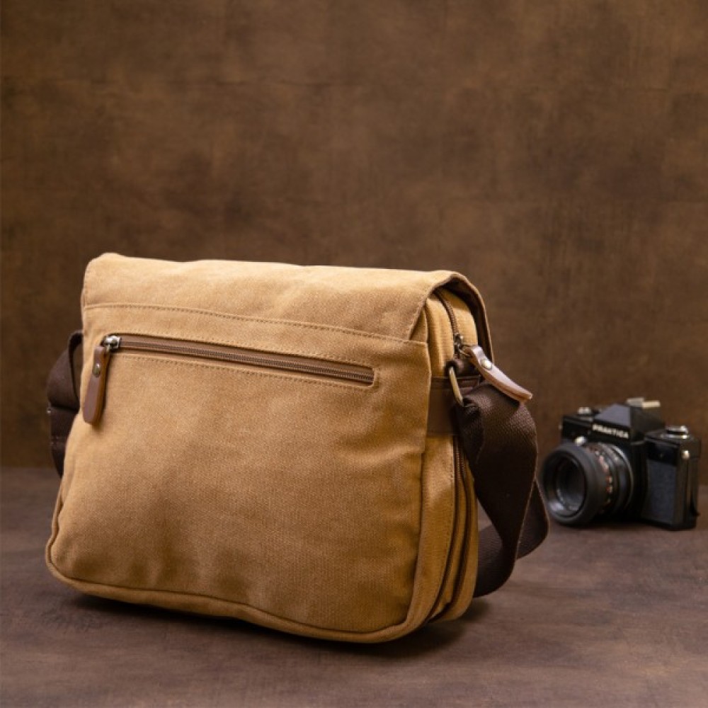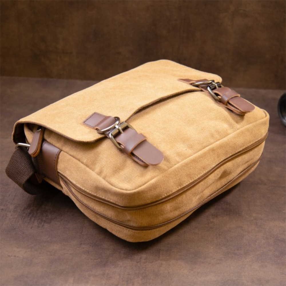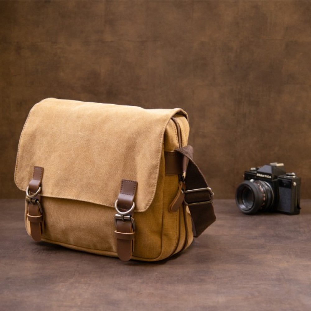 Компактна сумка-почтальонка із текстилю (сіра)