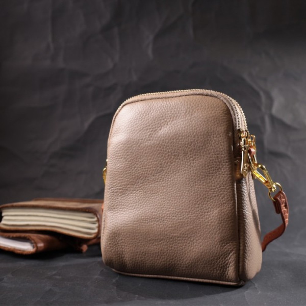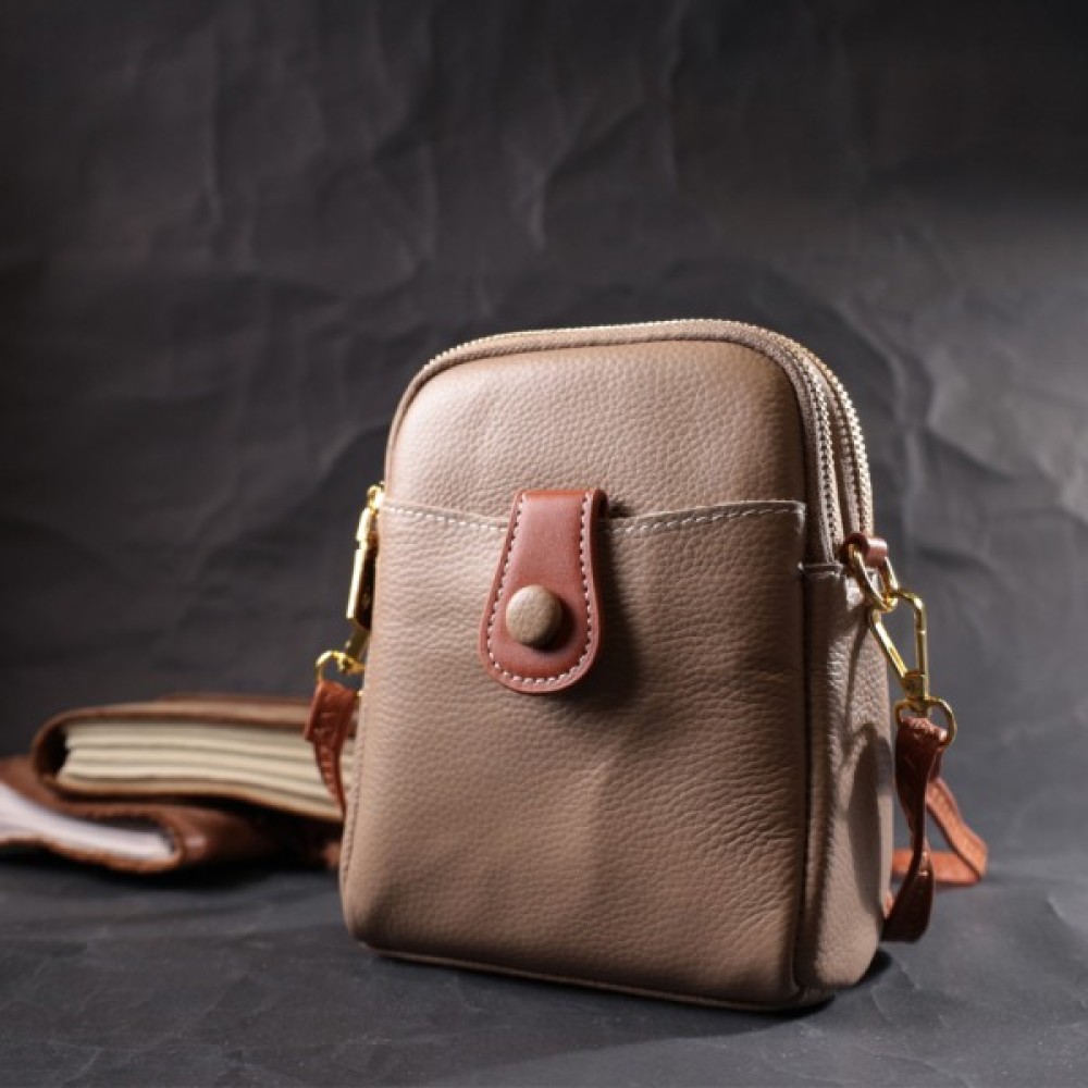 Жіноча цікава сумка трапецієподібної форми з натуральної шкіри з високим показником якості та зносостійкості.