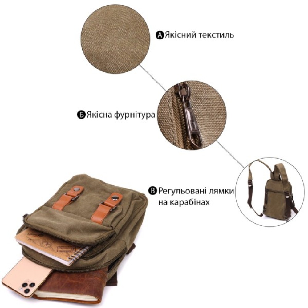 Оригінальна багатофункціональна сумка-рюкзак із міцного текстилю. Виріб підійде як для роботи, так і в дорогу, легко переться і зовсім не вибагливий у догляді.