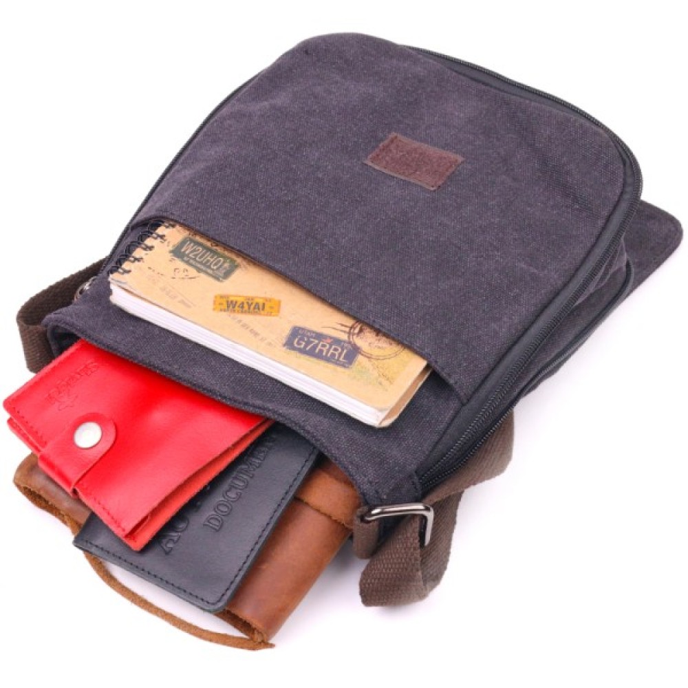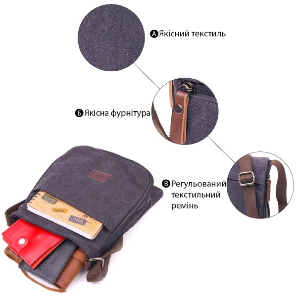 Сумка, Vintage, Вертикальна, чоловіча, текстильна, Чорна, 21265