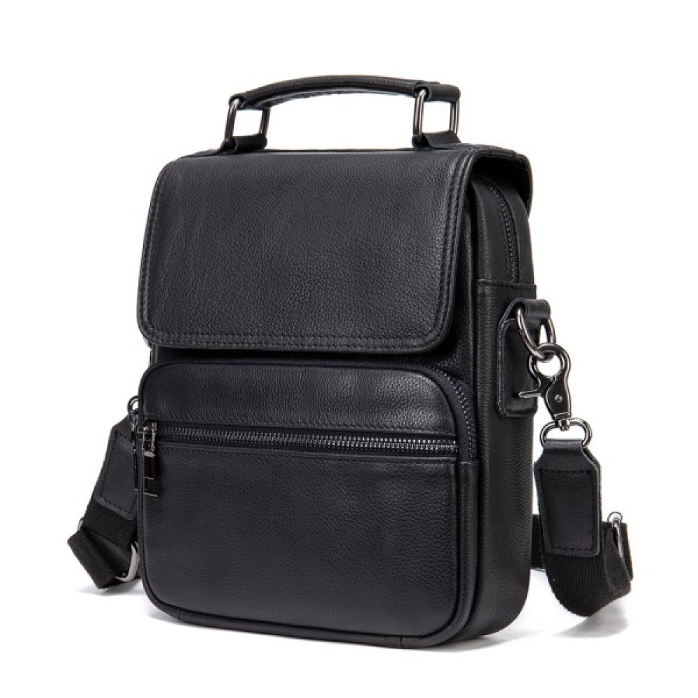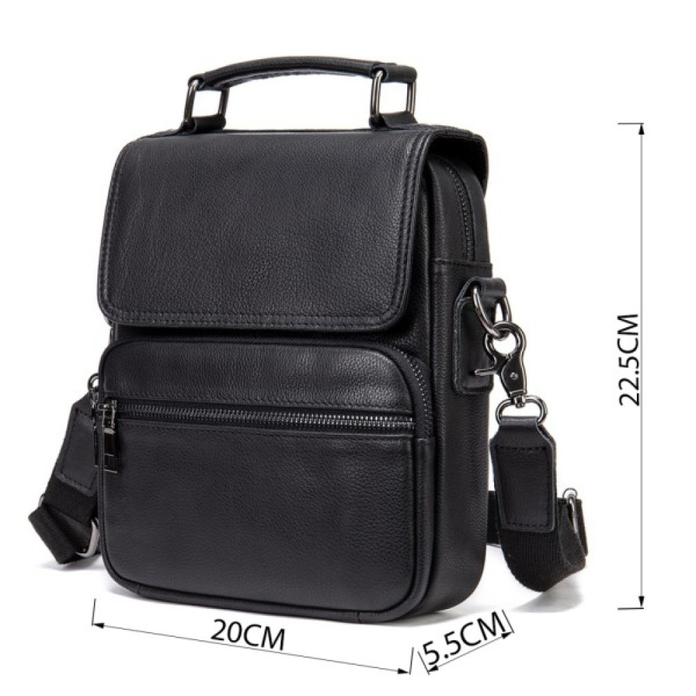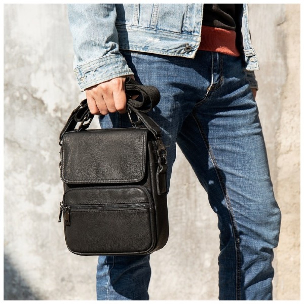 Вертикальна сумка з м'якої шкіри для чоловіків. Виріб стане просто знахідкою для чоловіків. Дизайн сумки продуманий до дрібниць і виглядає дуже солідно і стильно. Сумка доповнена якісною фурнітурою. Доповнена модель текстильним регульованим ремінцем. Закривається на блискавку і клапан. Сумка буде відмінним подарунком для близької людини.