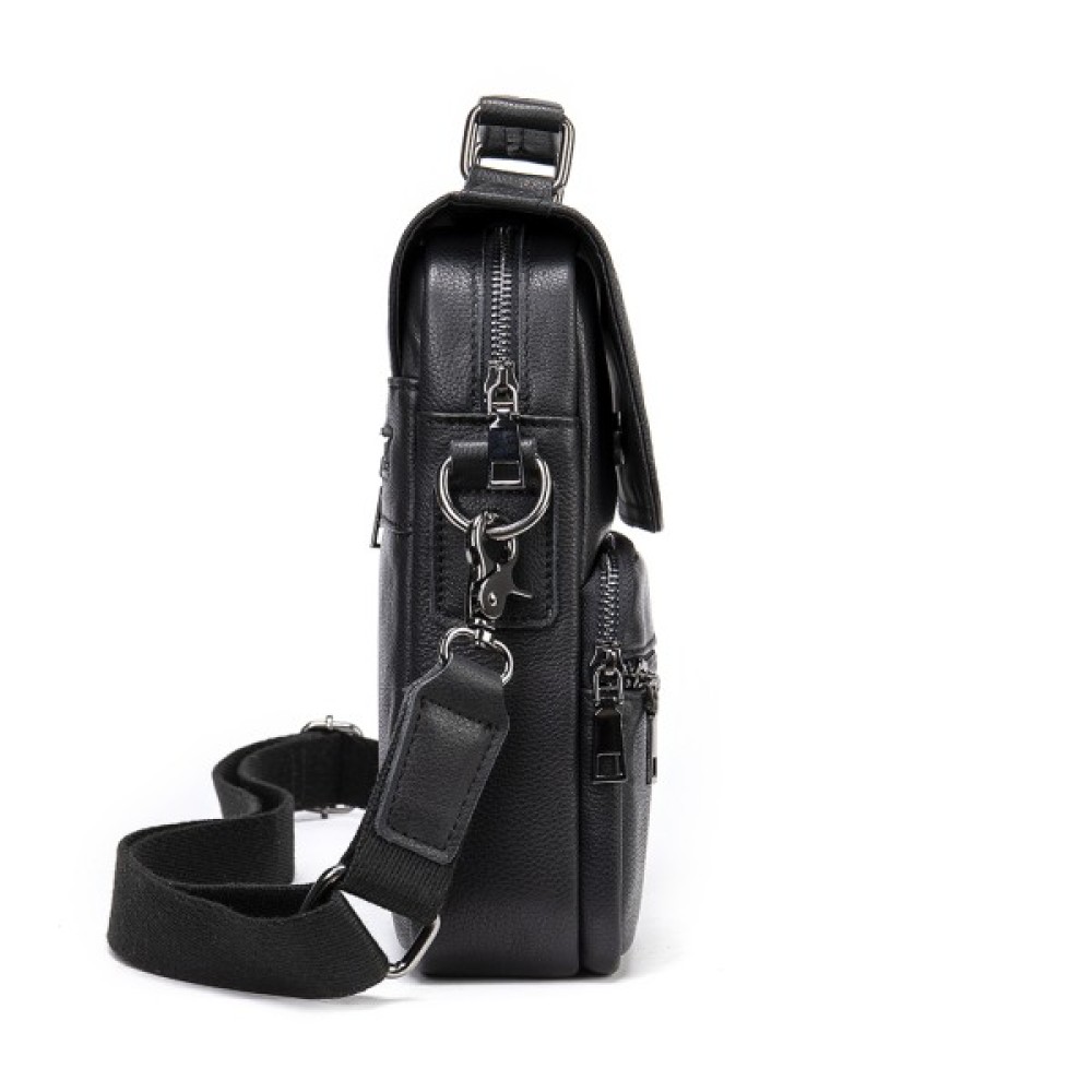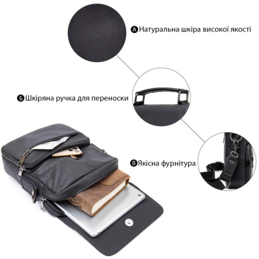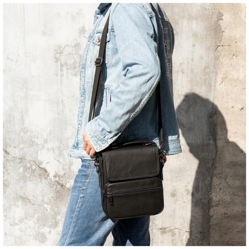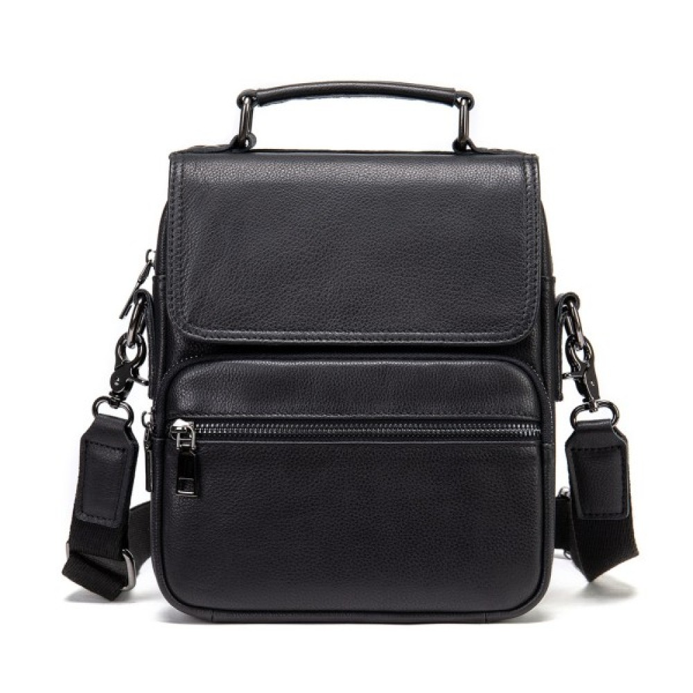Вертикальна сумка з м'якої шкіри для чоловіків. Виріб стане просто знахідкою для чоловіків. Дизайн сумки продуманий до дрібниць і виглядає дуже солідно і стильно. Сумка доповнена якісною фурнітурою. Доповнена модель текстильним регульованим ремінцем. Закривається на блискавку і клапан. Сумка буде відмінним подарунком для близької людини.