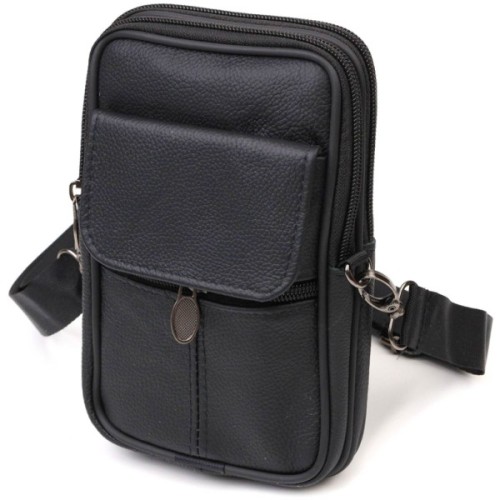Сумка Vintage Вертикальна поясна з натуральної шкіри Чорна (21487)