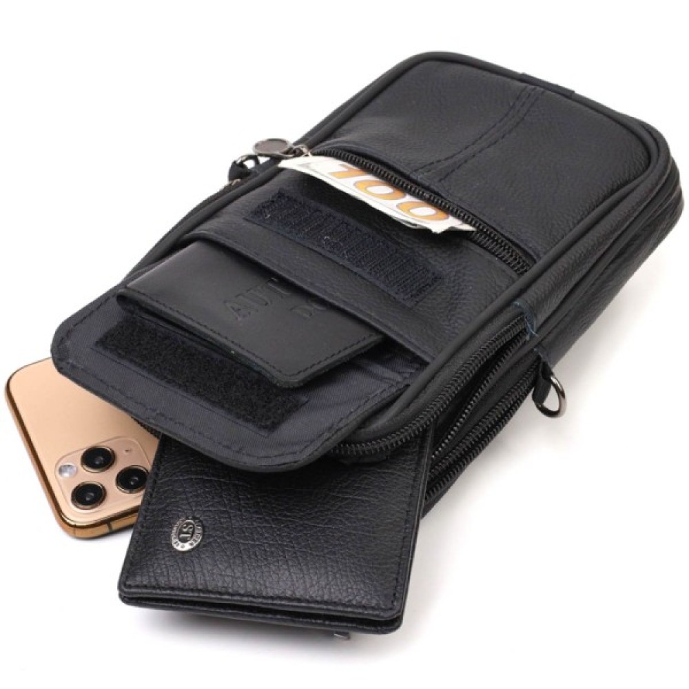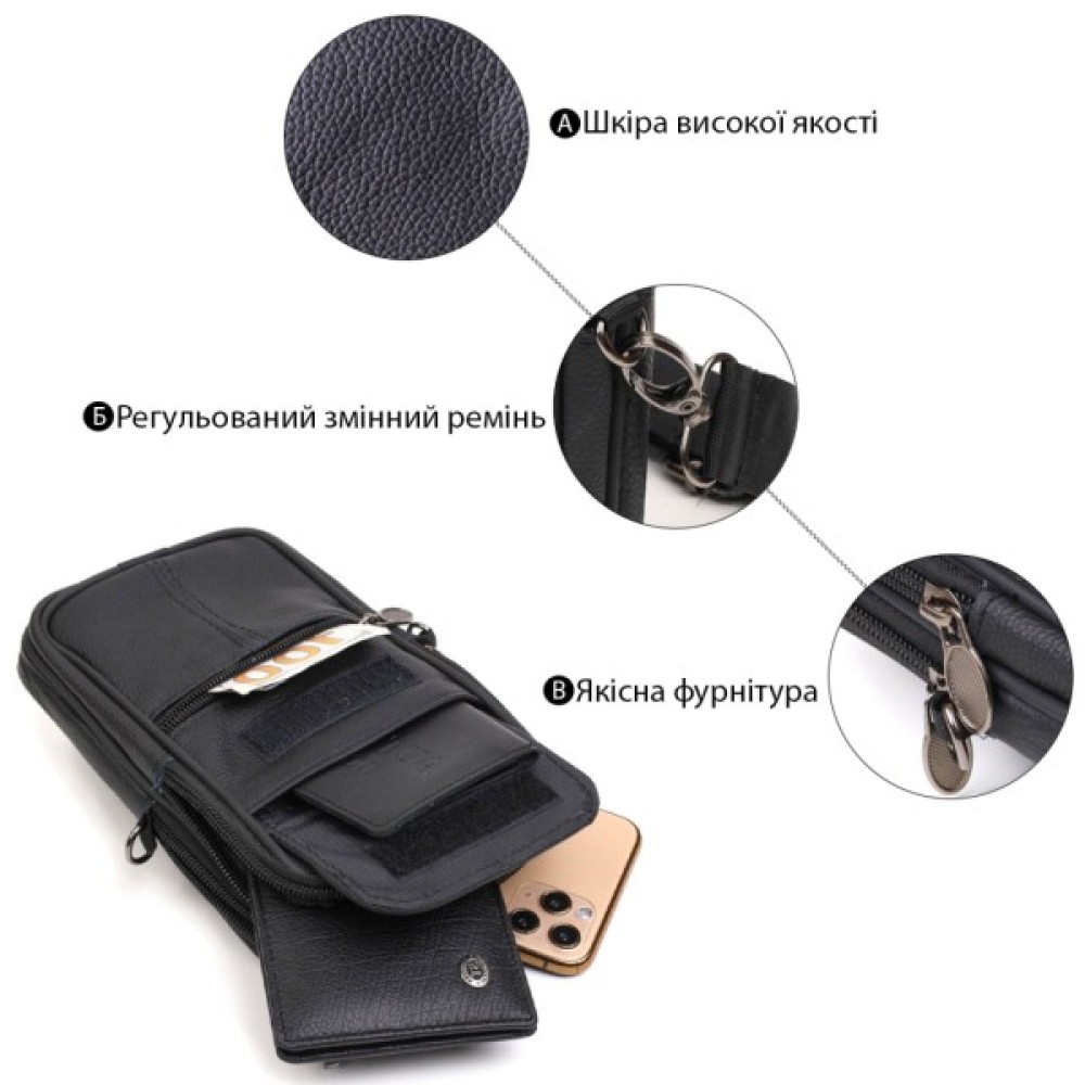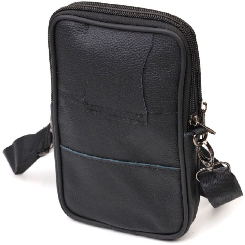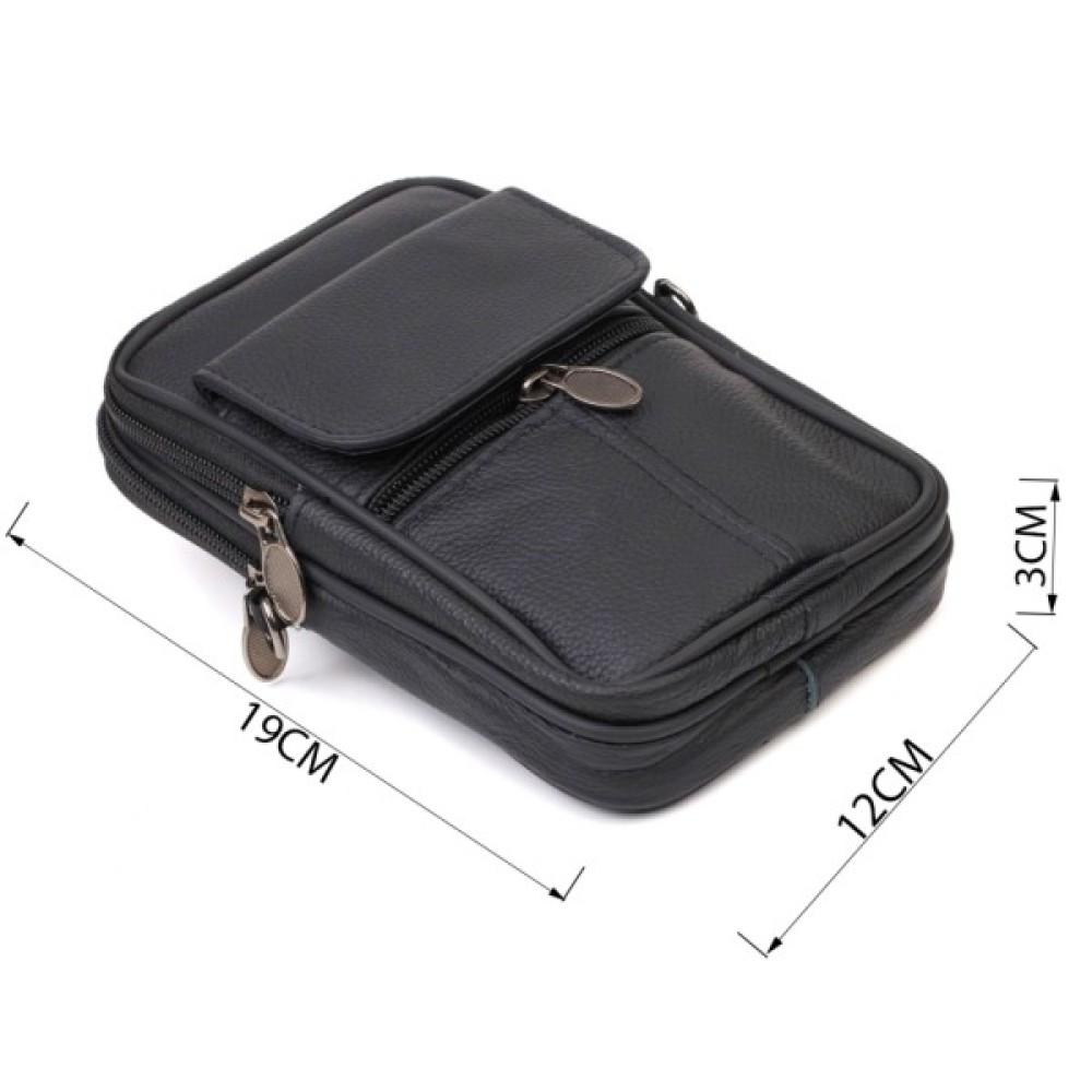 Аксесуар чудово підійде як для роботи, так і в дорогу. Сумка складається з двох відділень, що закриваються на блискавку та двох кишень зовні. Носити сумку можна на поясі, є спеціальна шкіряна петелька з тильного боку, а також в комплекті йде текстильний знімний плечовий ремінець. Модель дуже практична та універсальна. Виріб стане чудовим подарунком для будь-якого чоловіка.