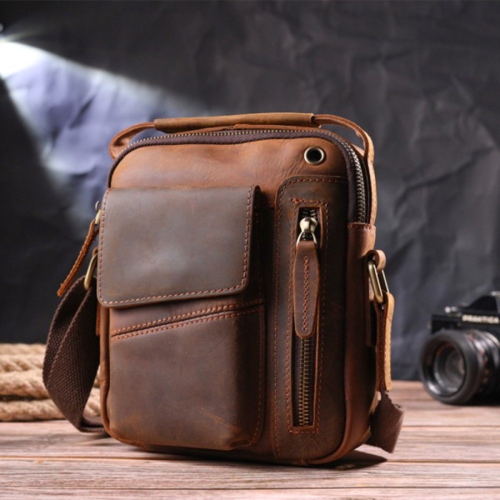 Практична чоловіча сумка з натуральної вінтажної шкіри з відмінними характеристиками якості та зносостійкості.
