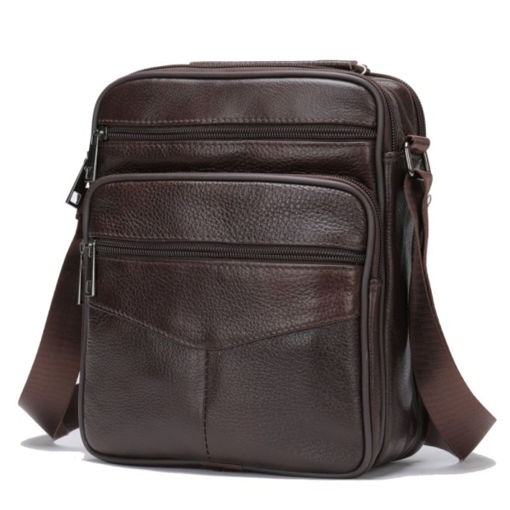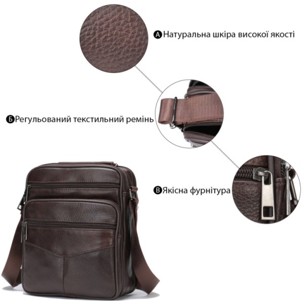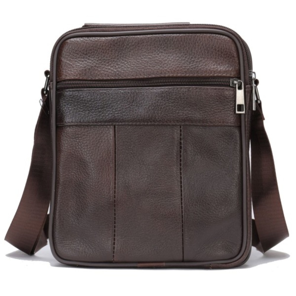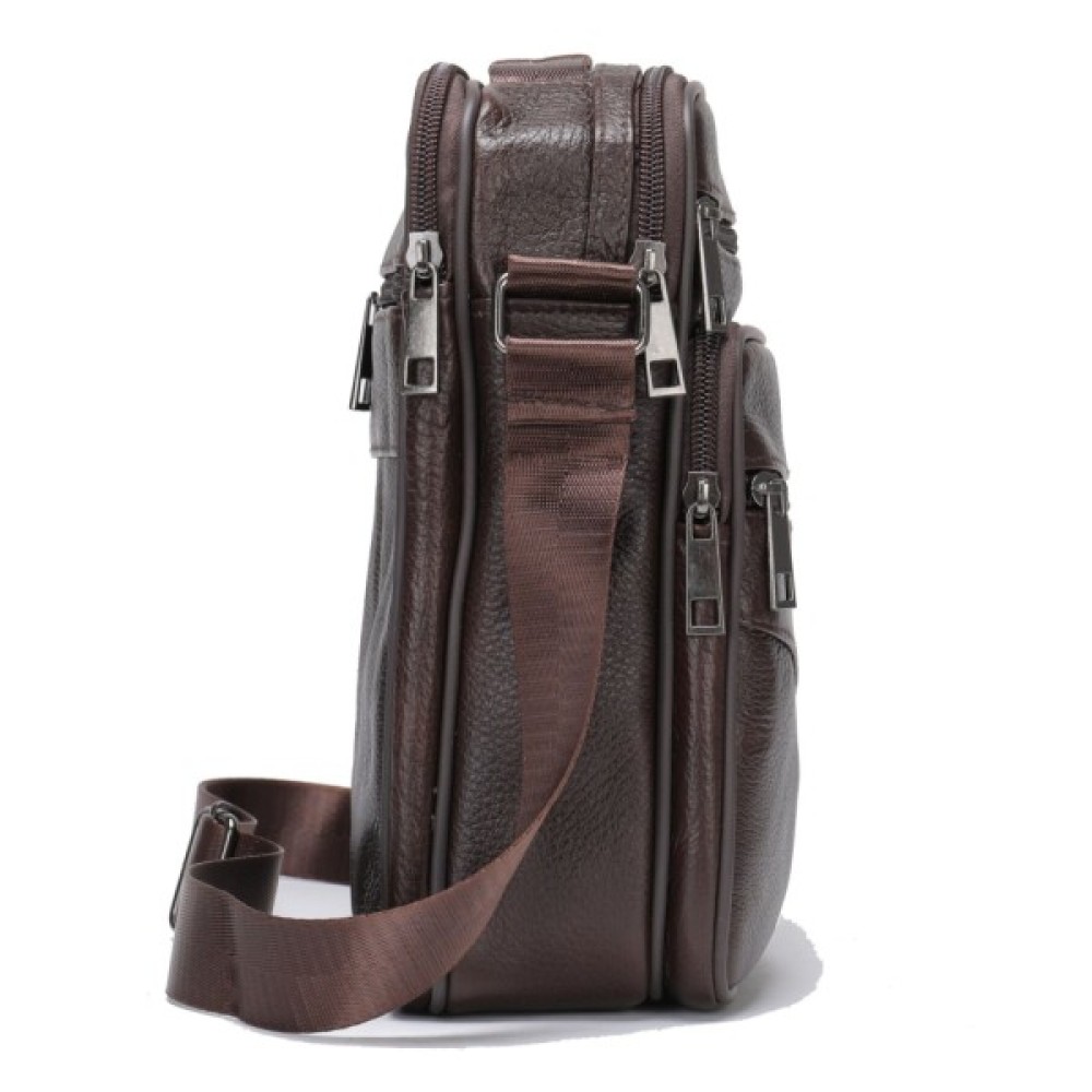 Якісна чоловіча сумка з натуральної шкіри. Виріб виконаний з зернистої шкіри коричневого кольору. Усередині аксесуара щільна текстильна підкладка коричневого кольору. Сумка буде вашим ідеальним варіантом на кожен день. Модель дуже зручна. Класичний дизайн ніколи не вийде з моди. Така сумка підійде під будь-які речі з вашого гардеробу. Модель доповнена якісною фурнітурою в дизайн виробу.