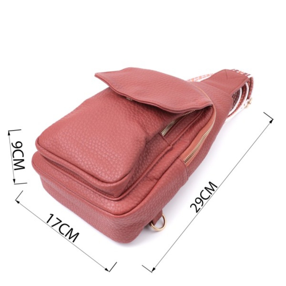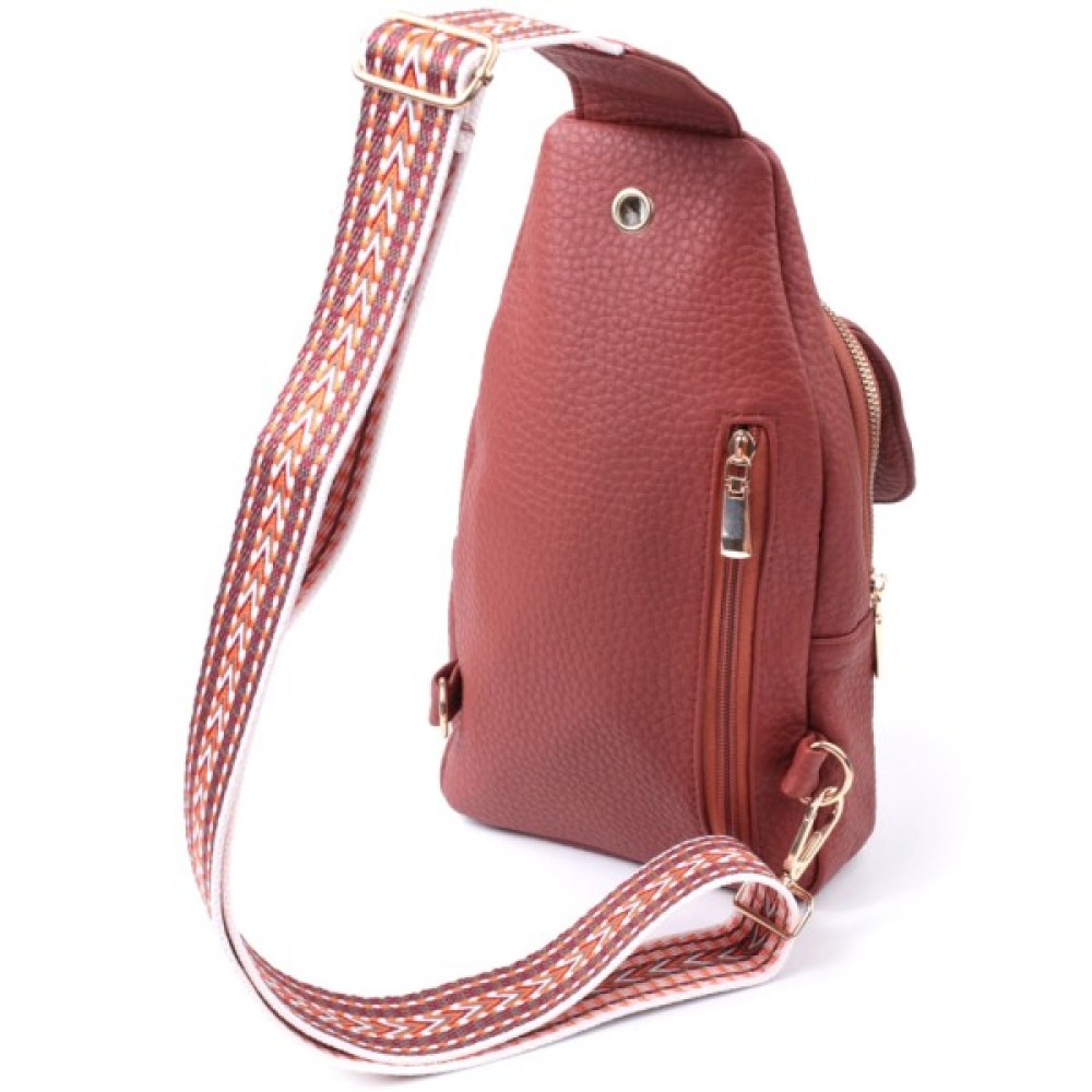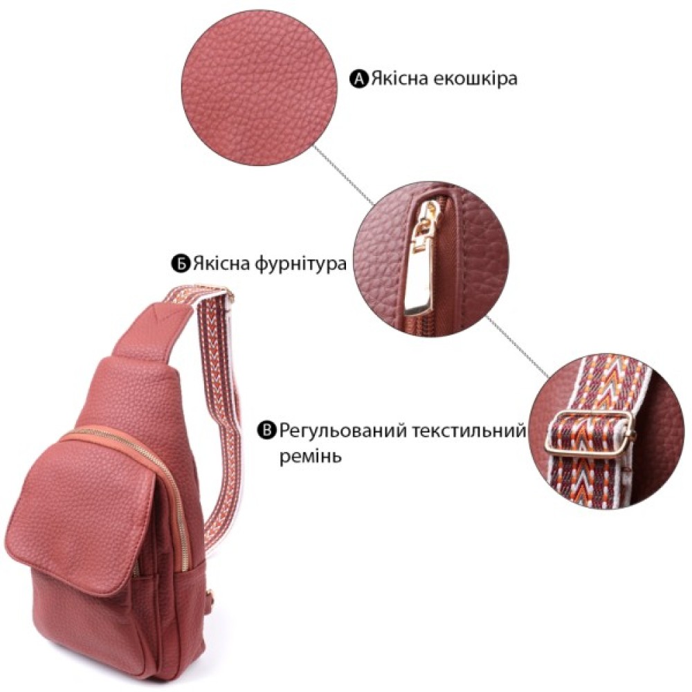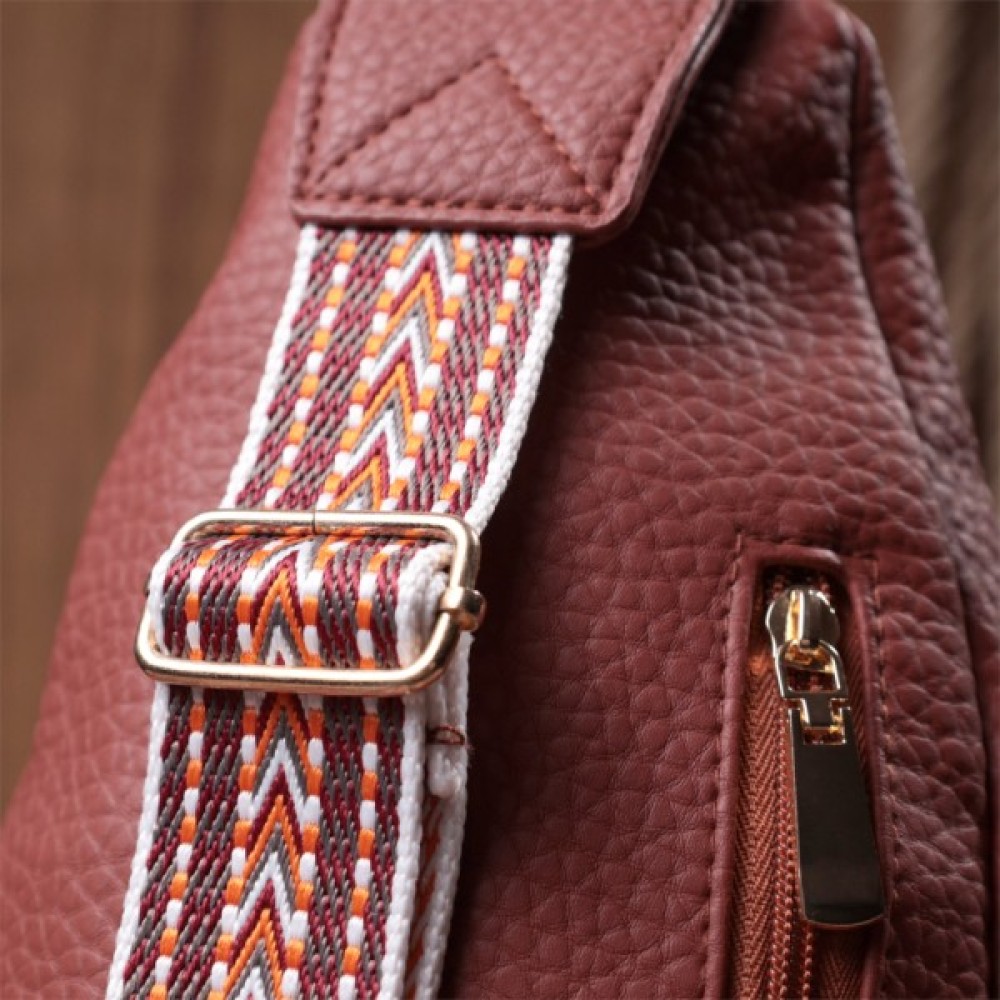 Жіноча слінг сумка з зернистої екошкіри в цікавий бордовий колір.