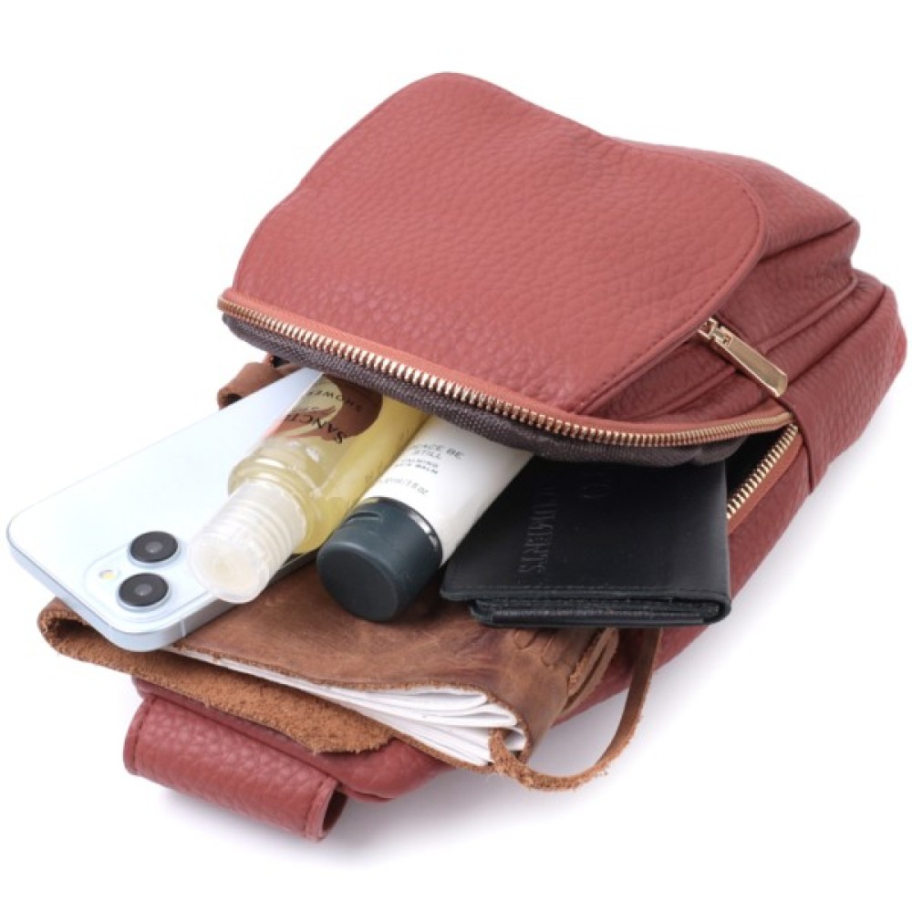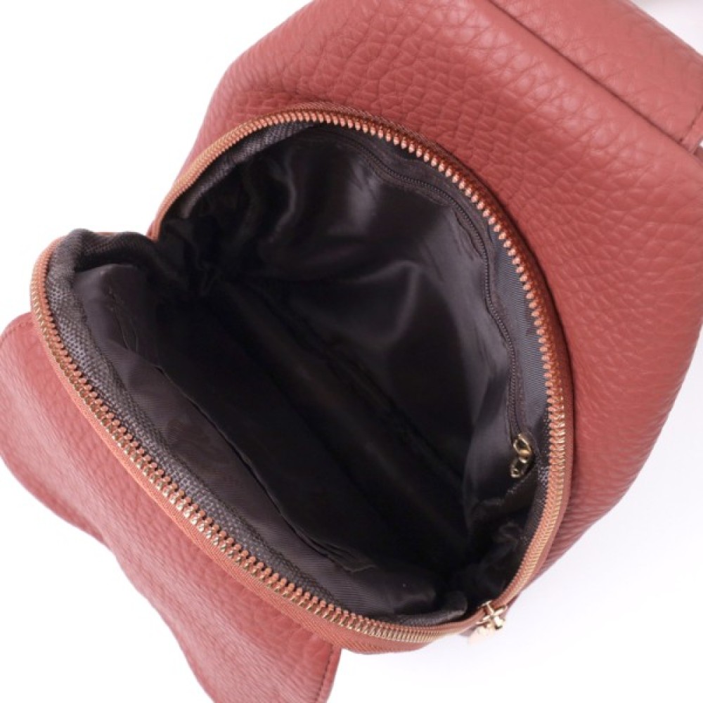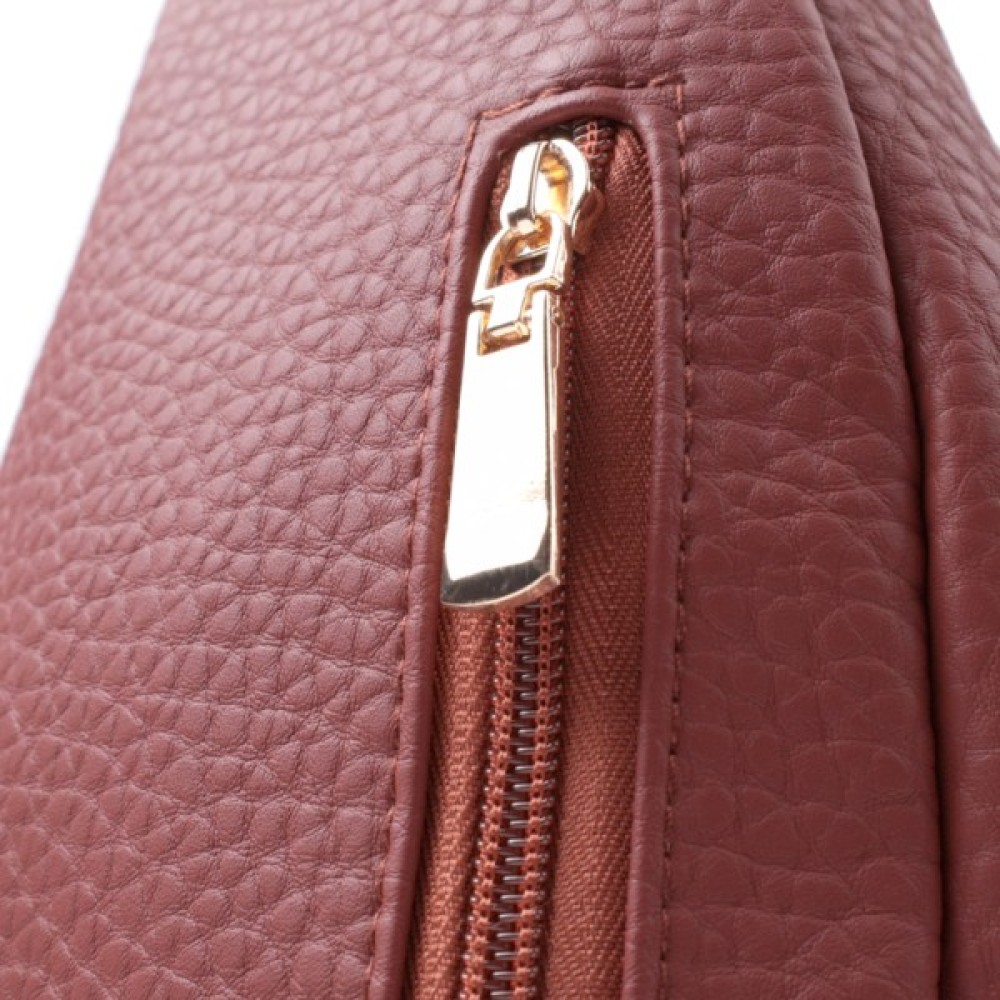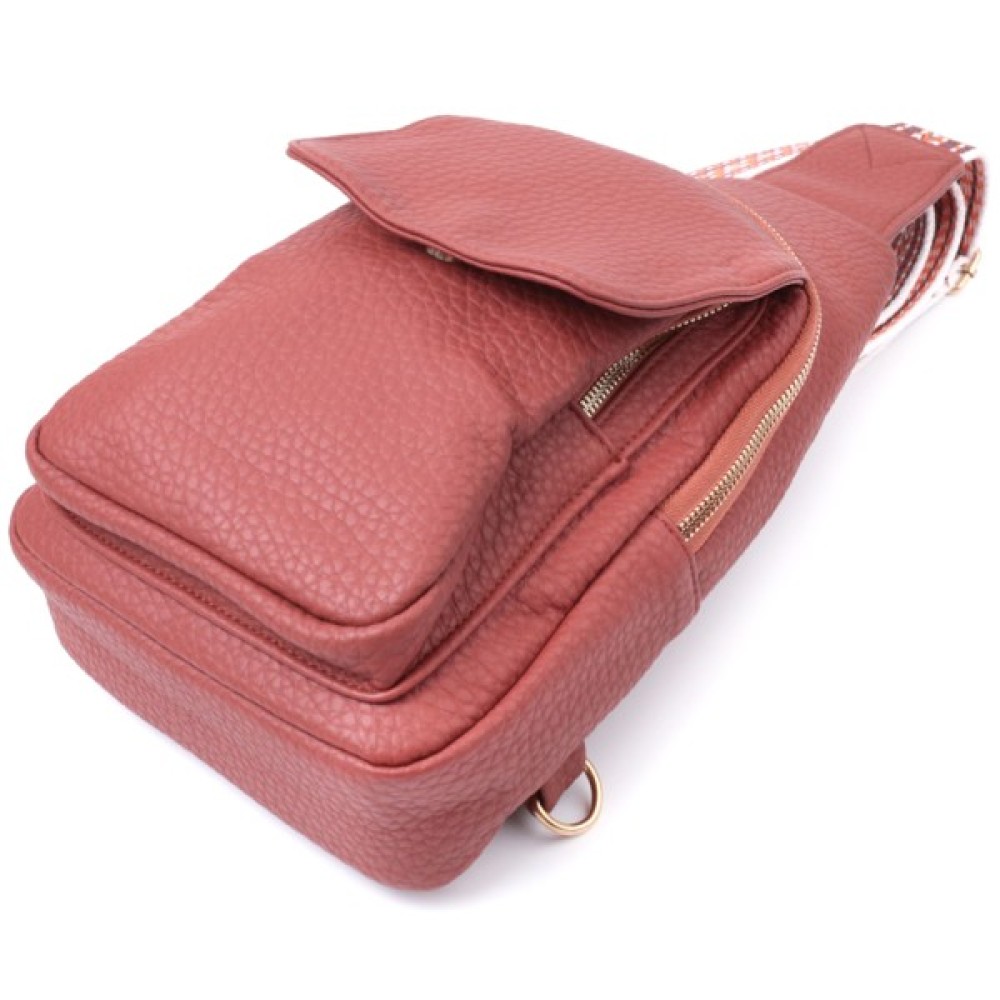 Жіноча слінг сумка з зернистої екошкіри в цікавий бордовий колір.