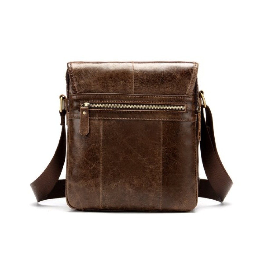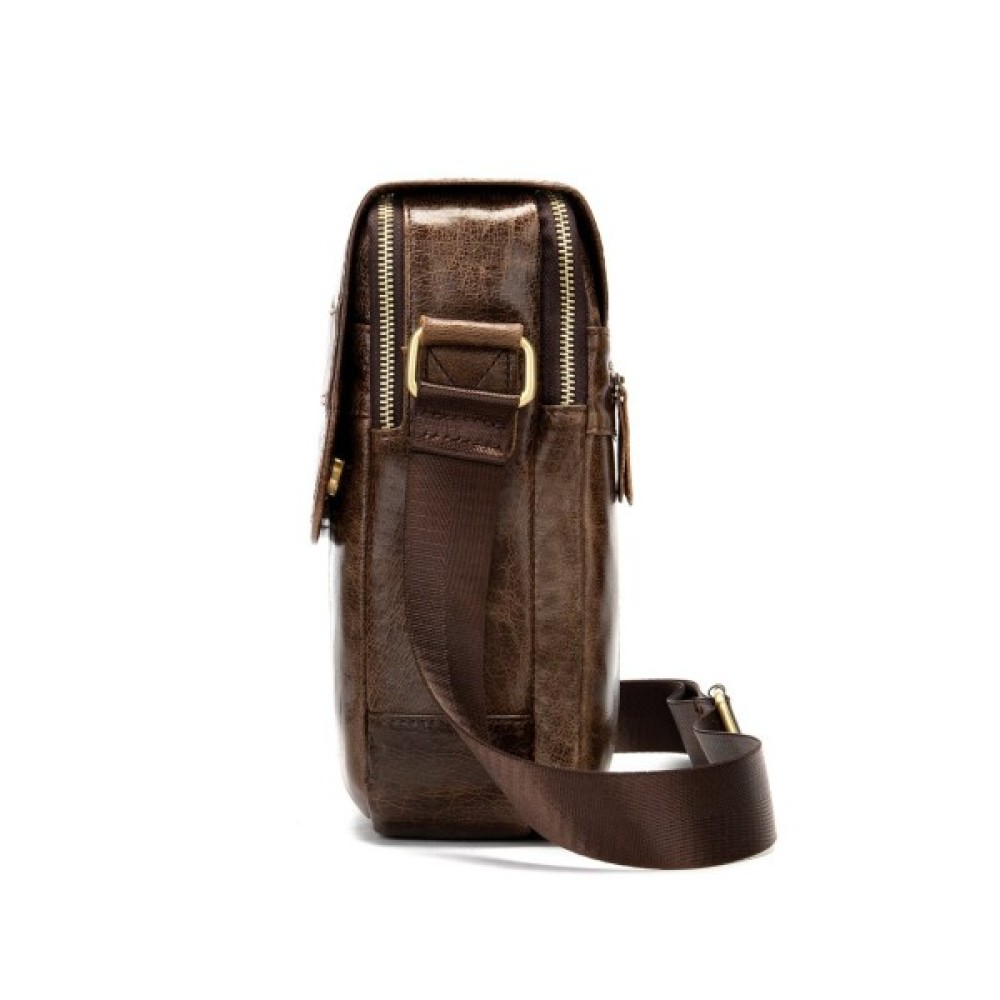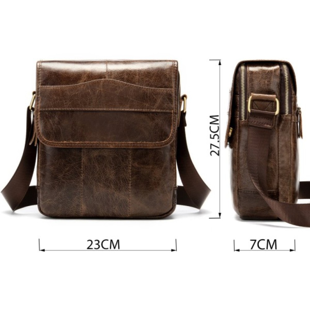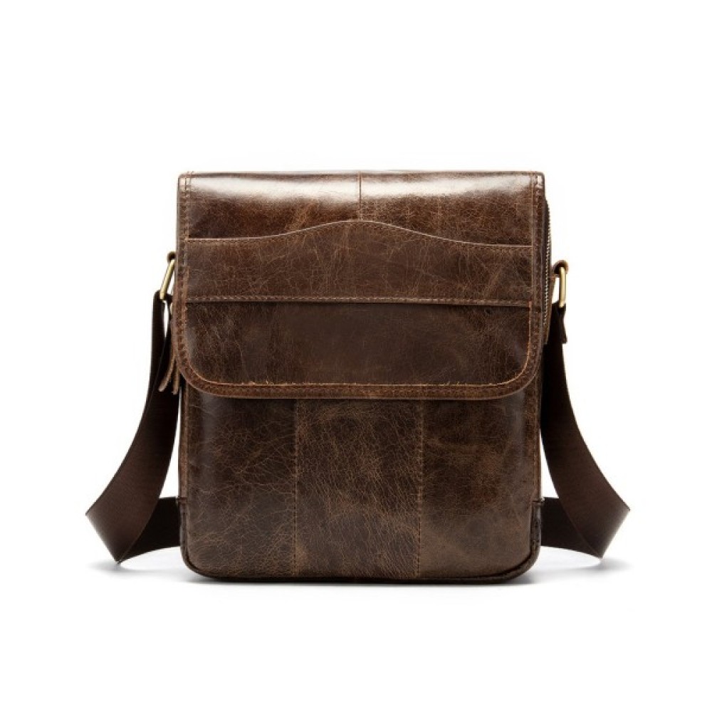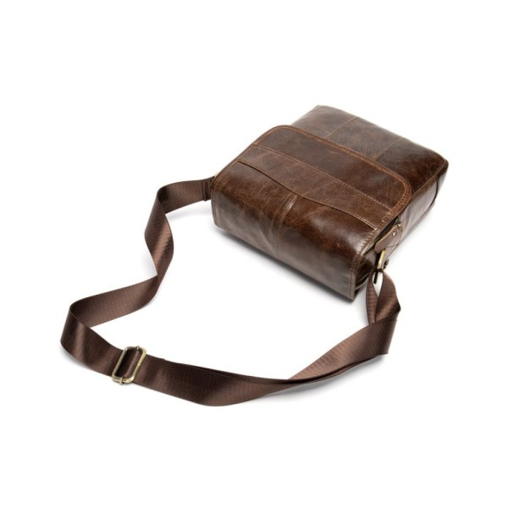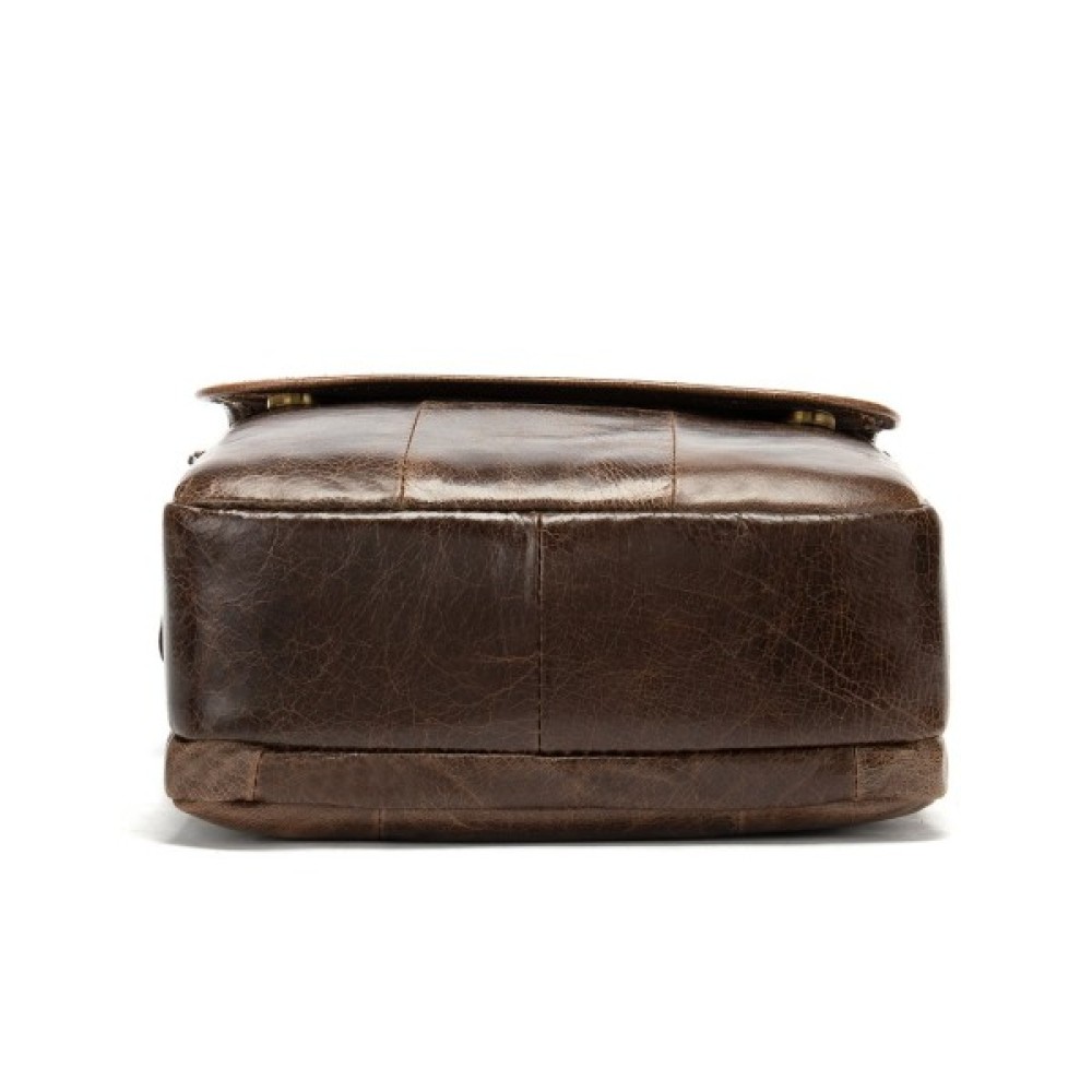 Чоловіча шкіряна сумка оптимальних розмірів на кожен день. Прекрасний варіант на роботу. Аксесуар виконаний з гладкої шкіри, яка не вибаглива в догляді і довго носиться. Модель оснащена всім необхідним функціоналом. Варто зазначити, що сумка має два відділення для вашої зручності. Аксесуар доповнено якісною фурнітурою золотистого кольору. Така сумка буде ідеальним подарунком для будь-якого чоловіка.
