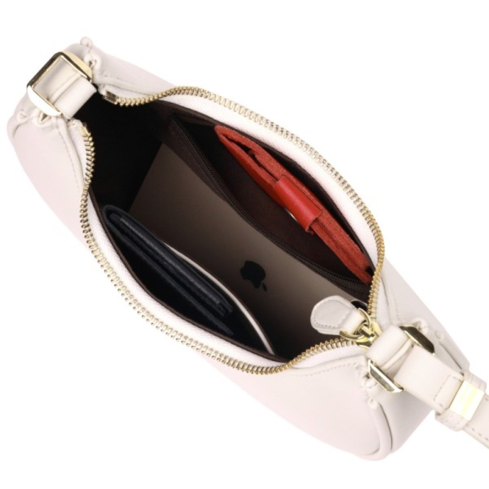 Стильна каркасна сумка з натуральної шкіри у напівкруглому форматі для справжніх модниць. Застібається на блискавку, має дві кишені всередині, одна з яких на блискавці.
