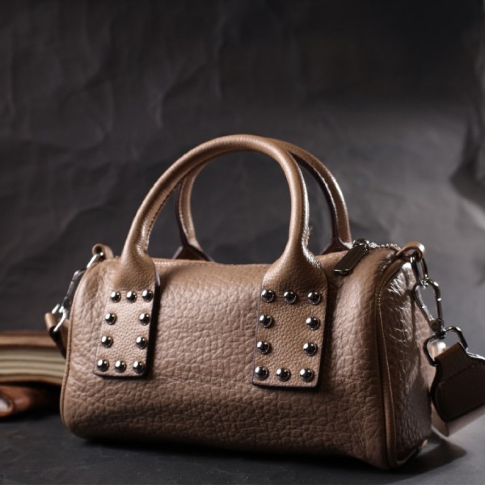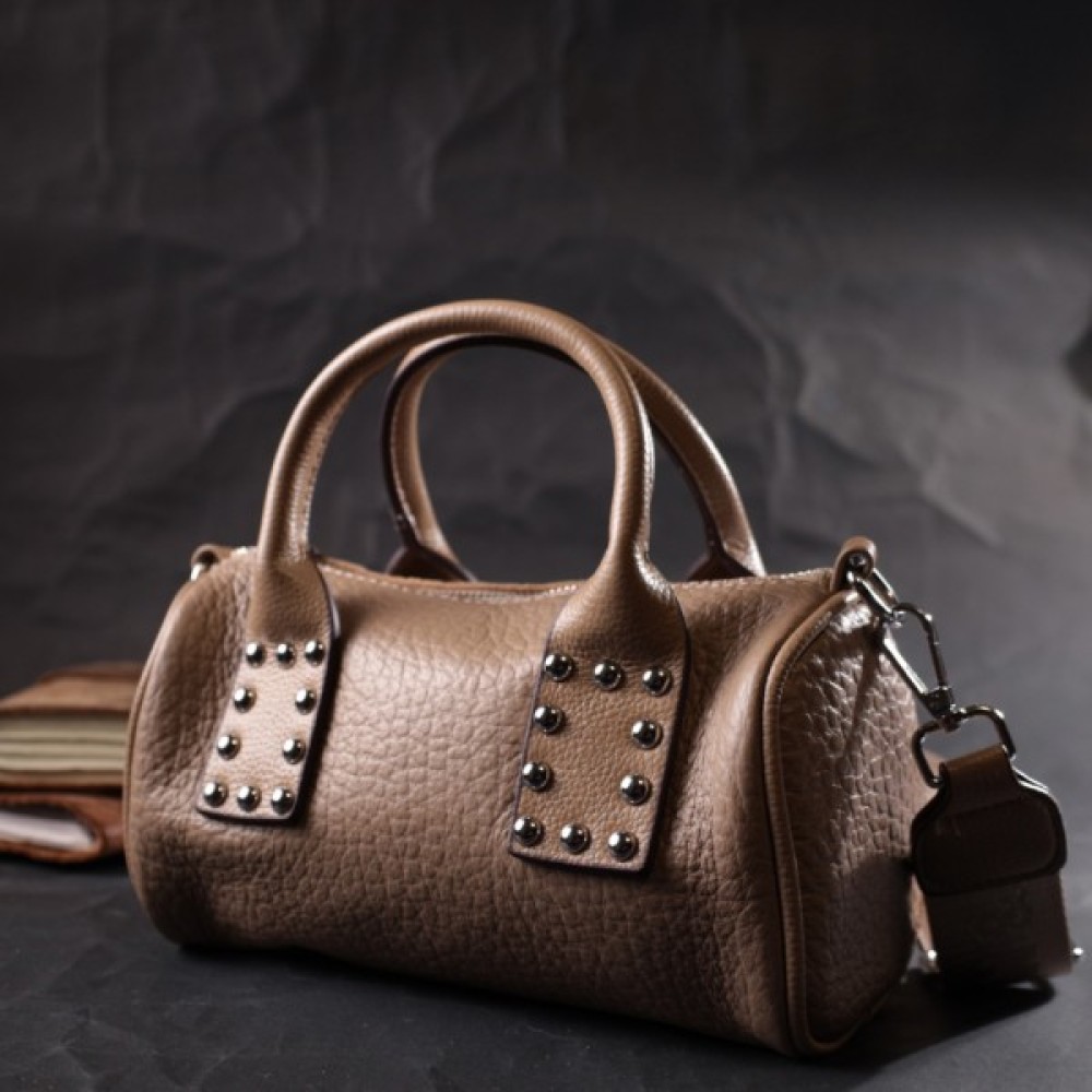 Модна жіноча сумка-боченок із натуральної шкіри.