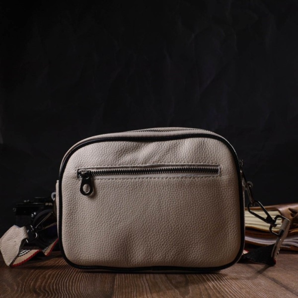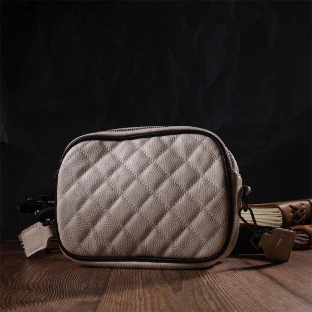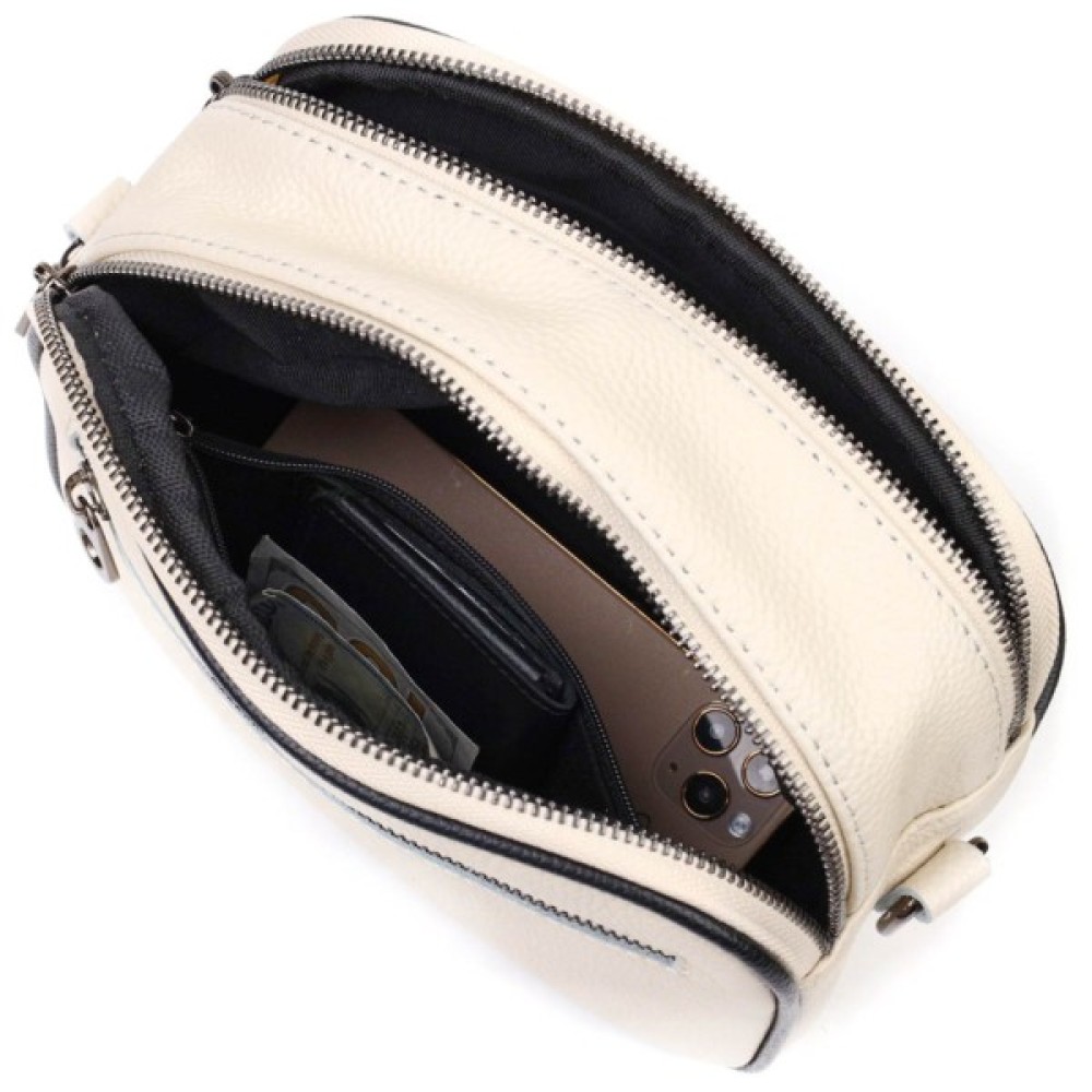 Жіноча сумка крос-боді з натуральної шкіри високої якості. Виріб дуже зручний, можна носити на плечі та через плече. Модель доповнена фурнітурою кольору темного срібла. Аксесуар має два основні відділення, у яких дві кишеньки — одна на блискавці та одна відкритого типу, а також кишеня на блискавці зовні, на тильній стороні. Модель закривається на блискавку. Ідеальний варіант для будь-якої дівчини на будь-який сезон.