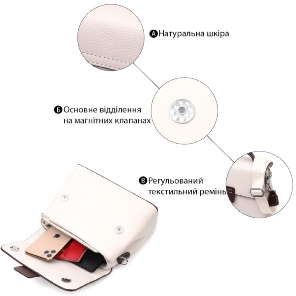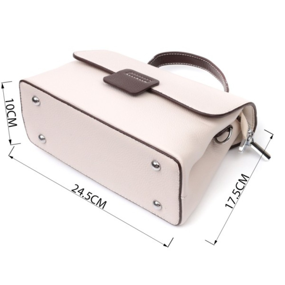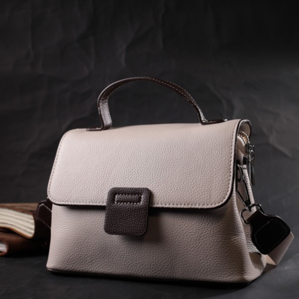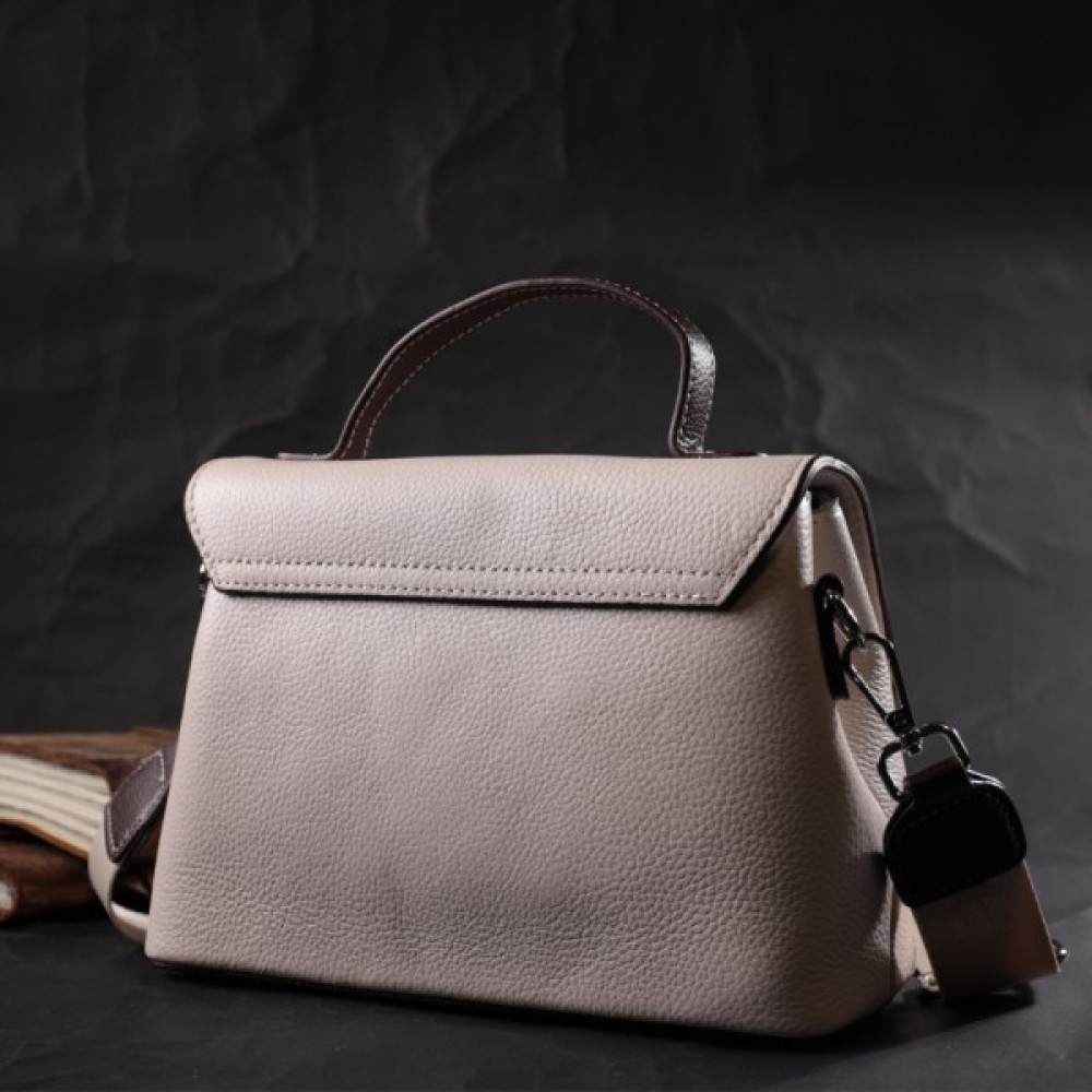 Красива жіноча сумка з натуральної шкіри флотар, яка неприбаглива в догляді та довго зберігає охайний вигляд. Аксесуар складається з двох основних відділень, потайної кишені на блискавці та кишені відкритого типу.