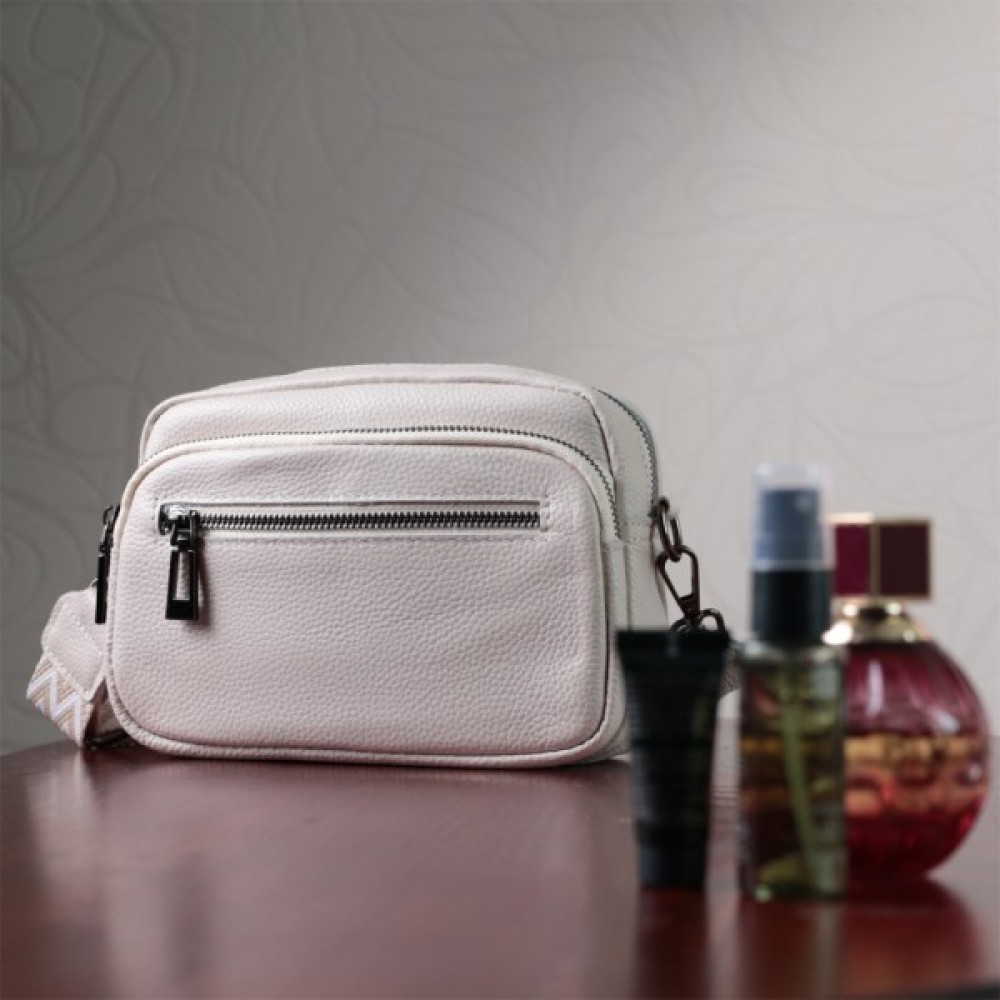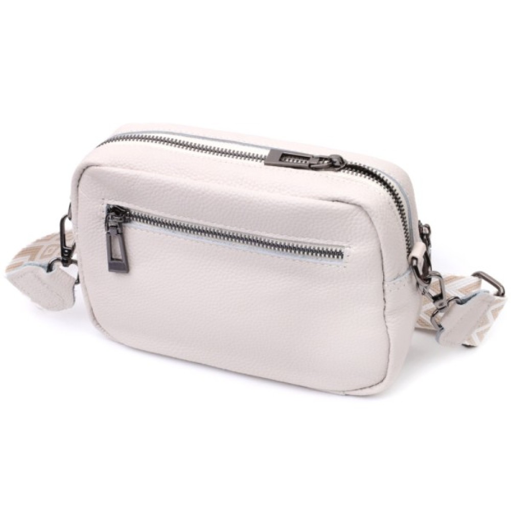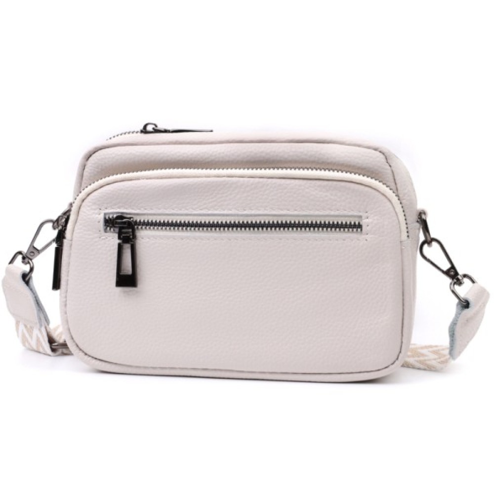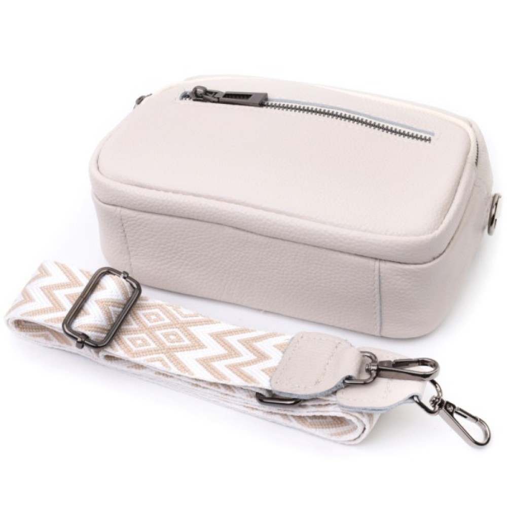 Компактна жіноча сумка в красивому білому кольорі виготовлена з натуральної шкіри, що гарантує якість і довговічність.