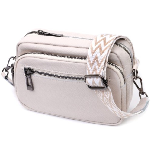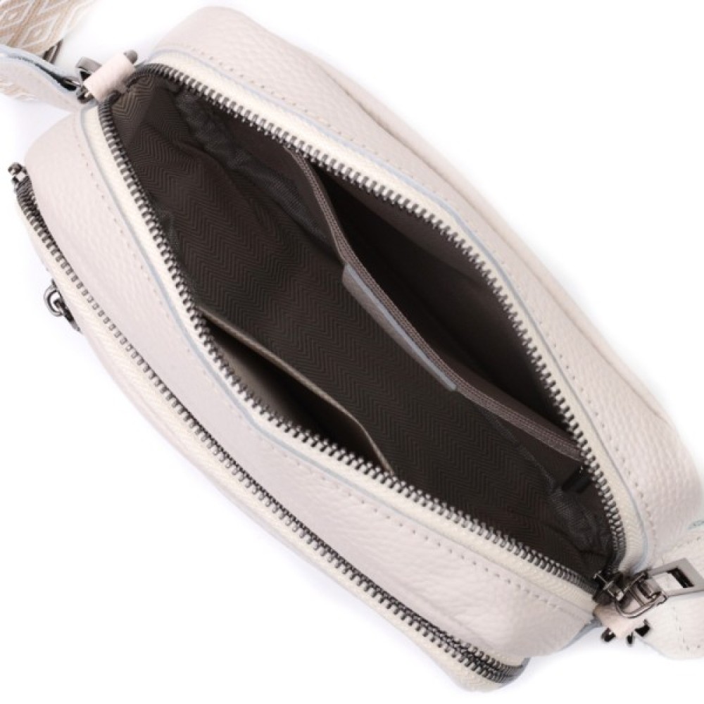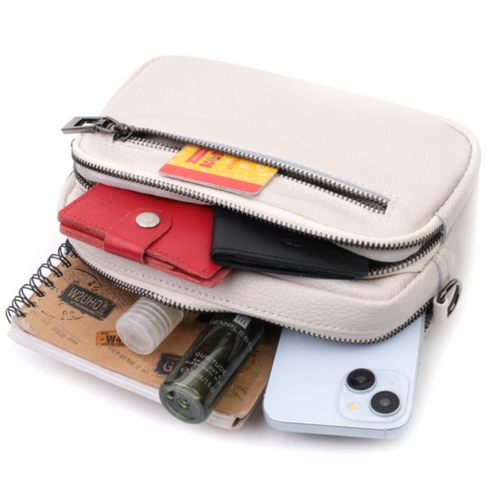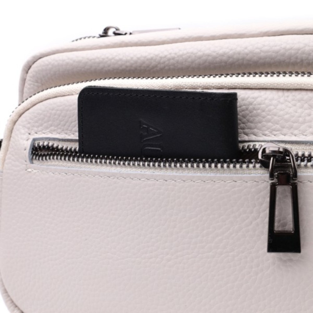 Компактна жіноча сумка в красивому білому кольорі виготовлена з натуральної шкіри, що гарантує якість і довговічність.