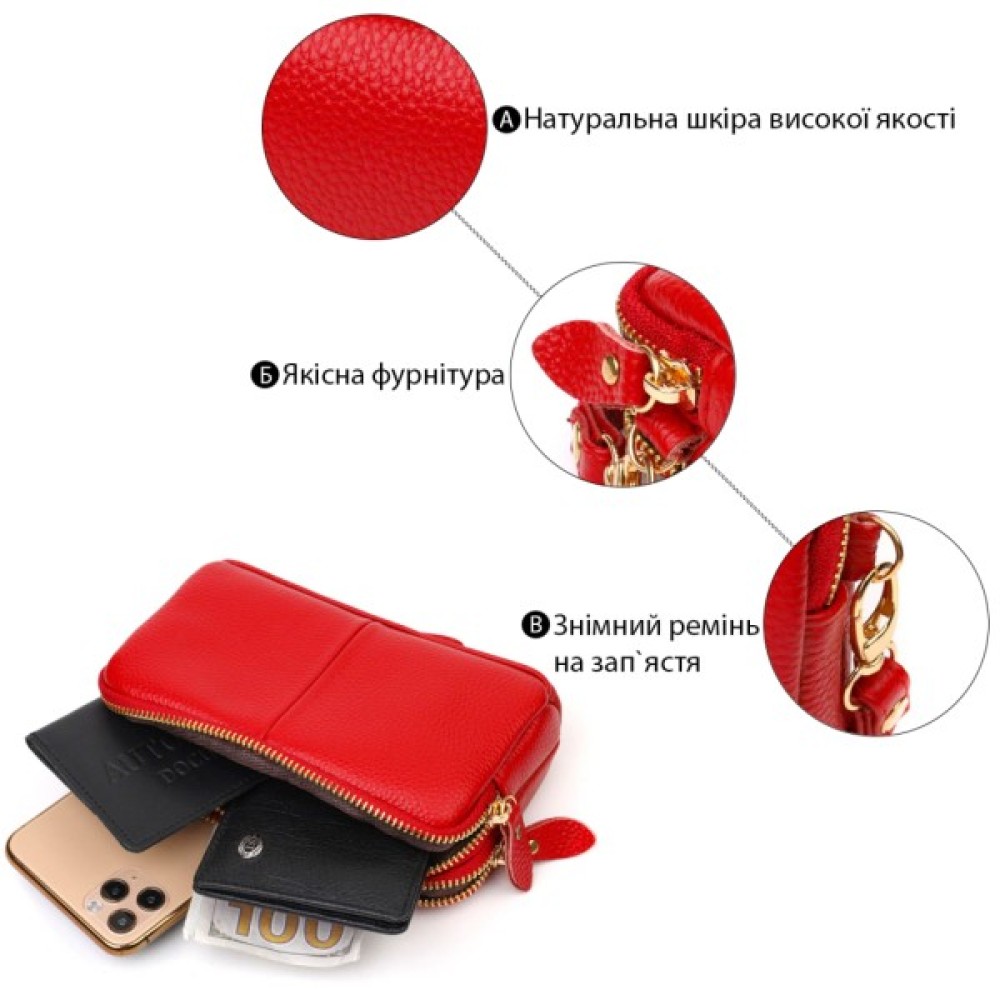 Яскрава жіноча сумочка-клатч із натуральної м'якої шкіри високої якості.