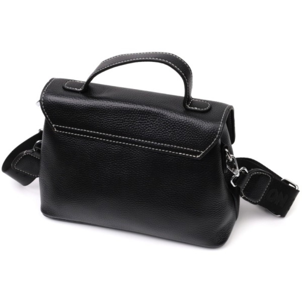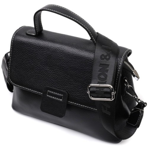Додатковий комфорт: шкіряна ручка та знімний текстильний ремінь у тон виробу
