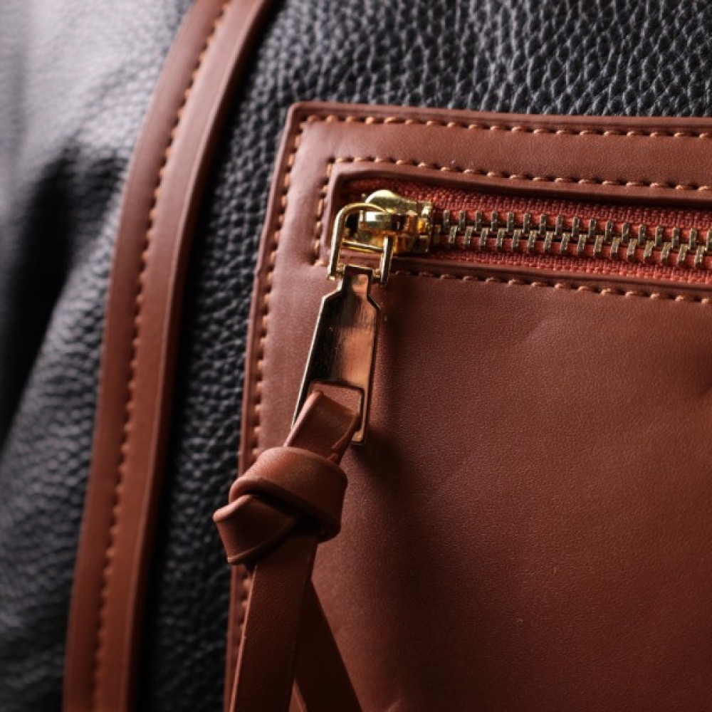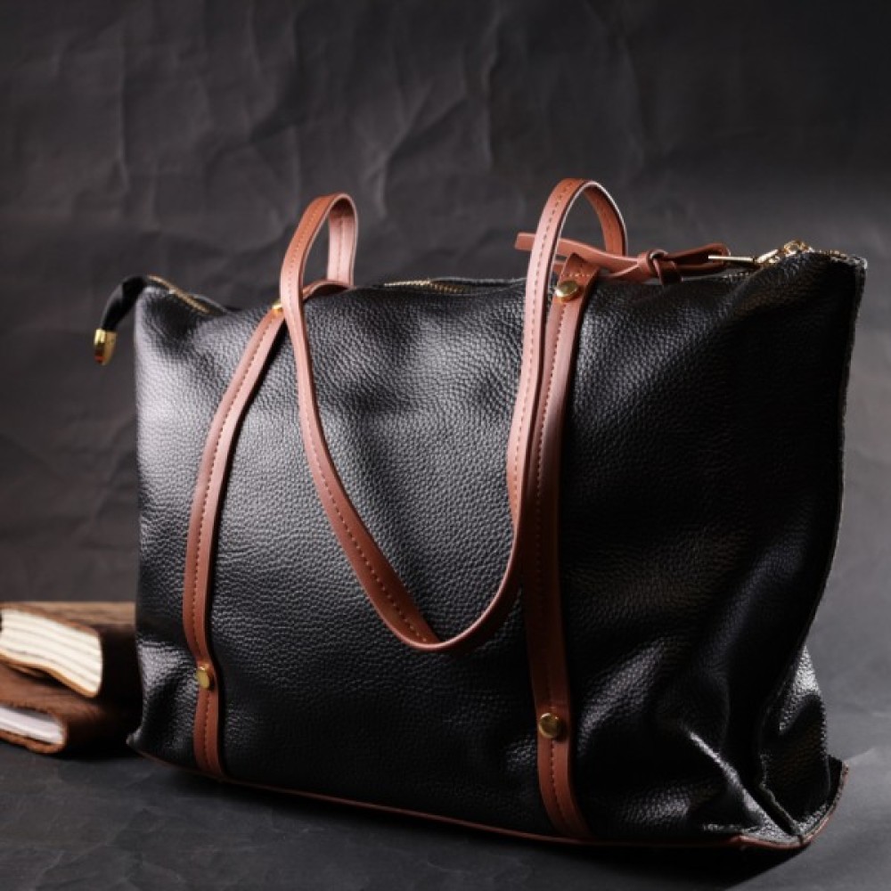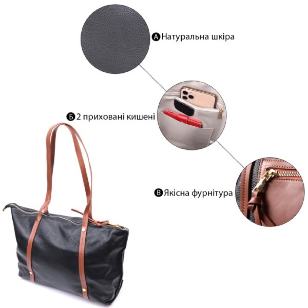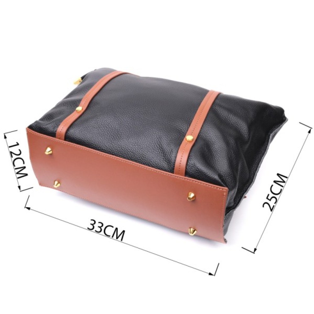 Жіноча велика сумка з натуральної шкіри у поєднанні чорного та коричневого кольорів