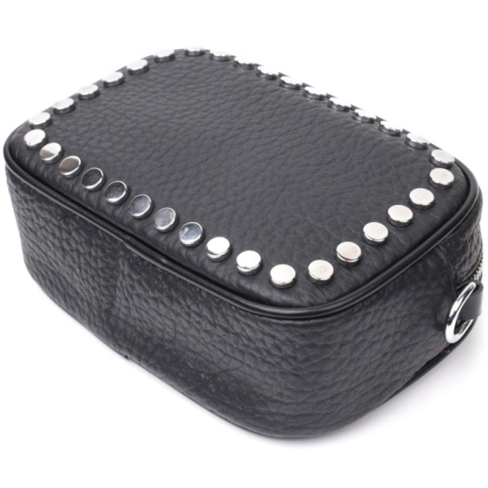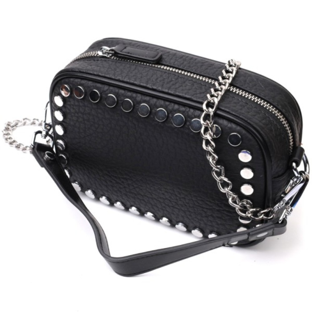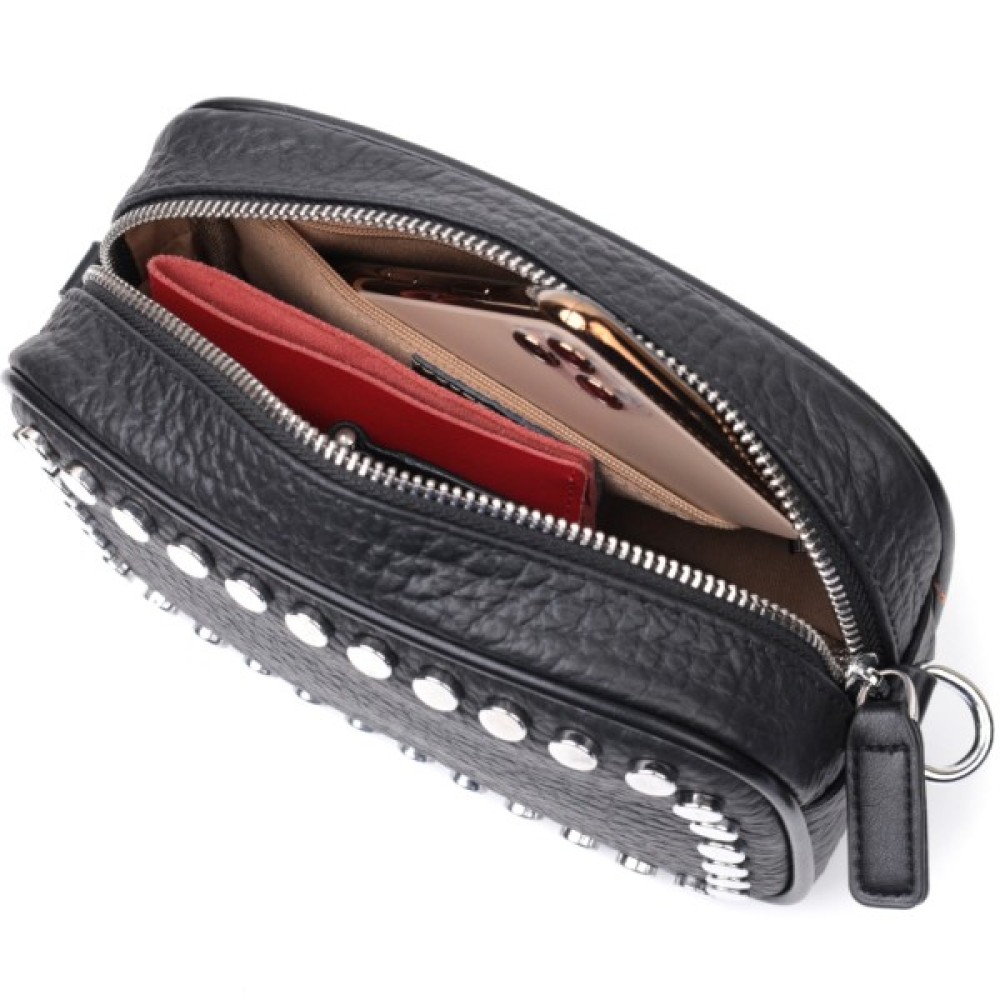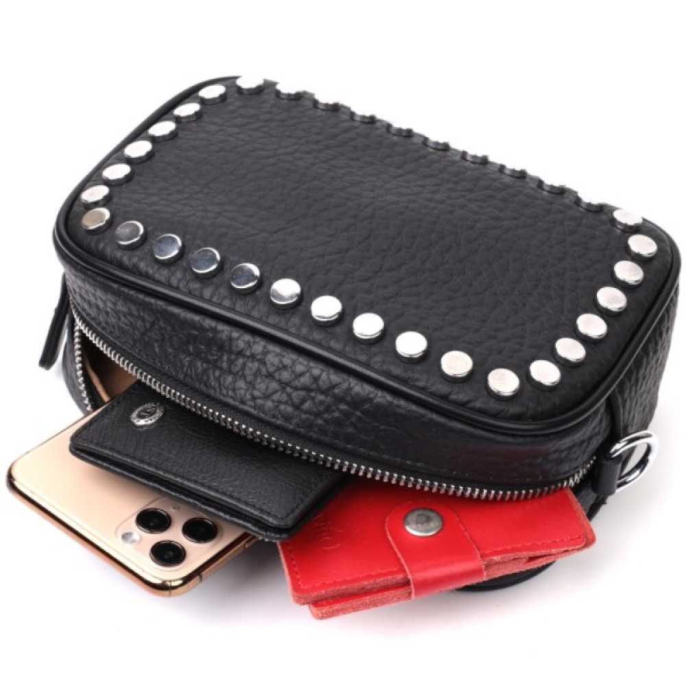 Стильна жіноча сумка з натуральної крупнозернистої шкіри, яка має декор у вигляді кнопок на лицьовій стороні, що надає аксесуару елегантності. Сумка складається з одного основного відділення, потайної кишені на блискавці і кишені відкритого типу всередині, а також кишені на блискавці зовні.