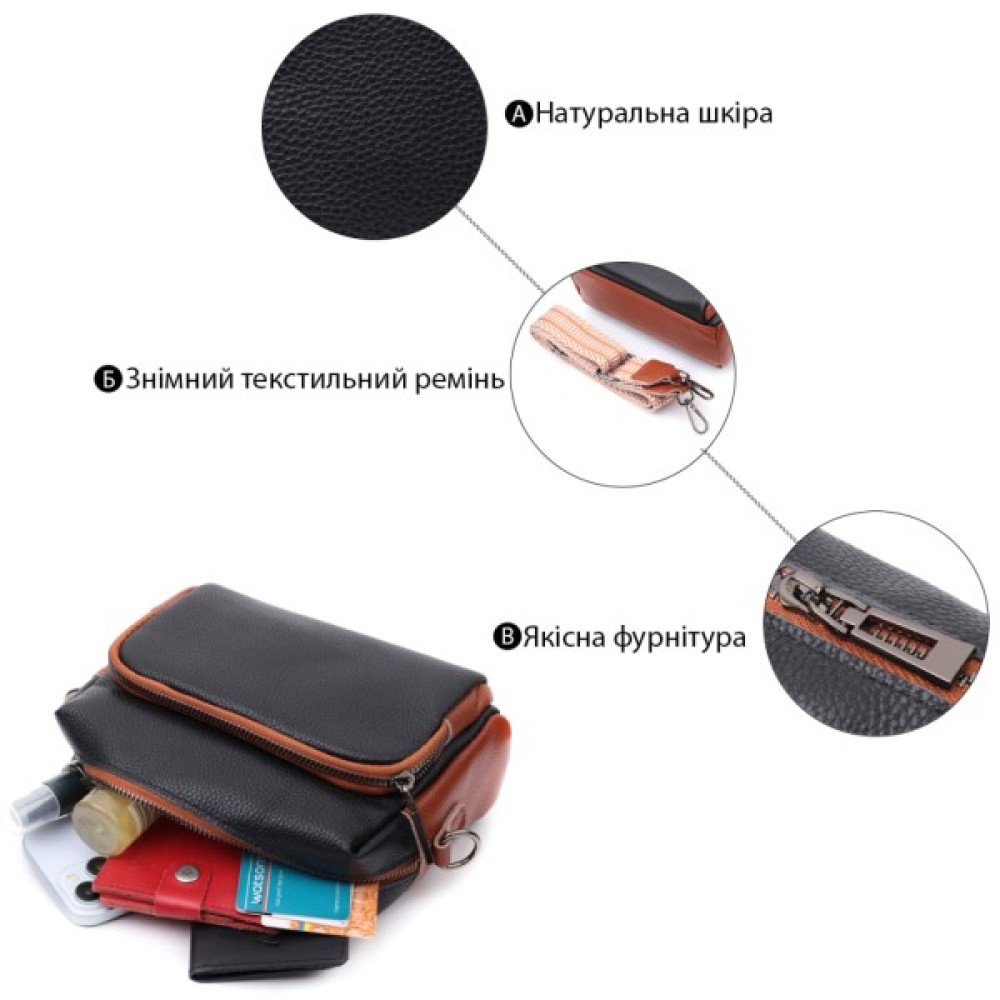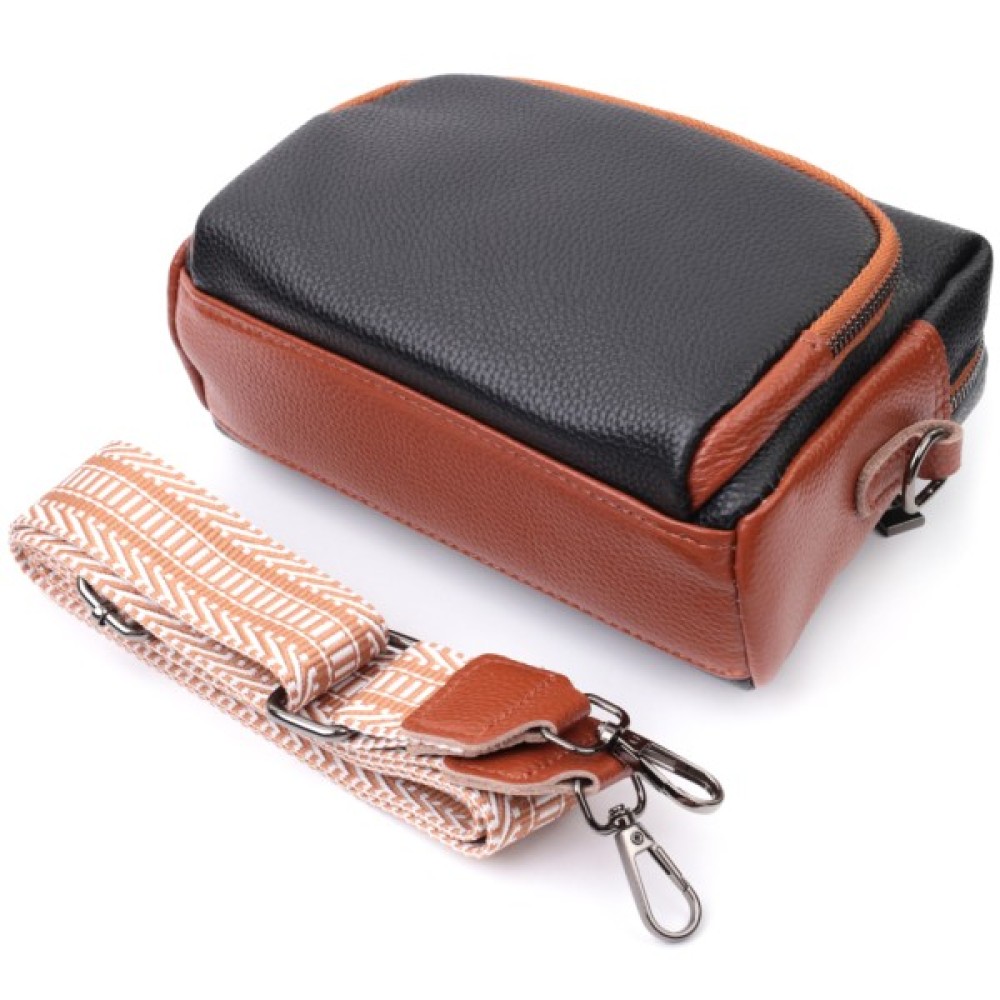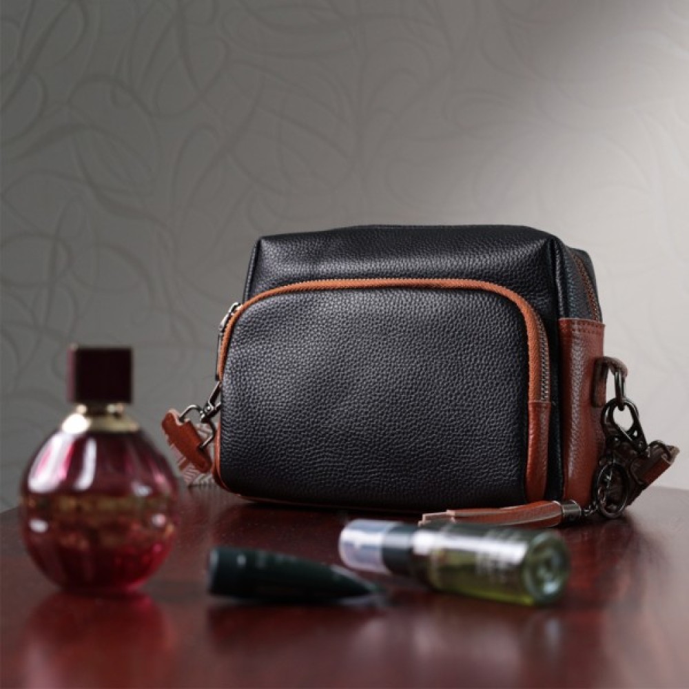 Зручна жіноча сумка на кожен день з натуральної шкіри. Використана шкіра чорного та коричневого кольору.