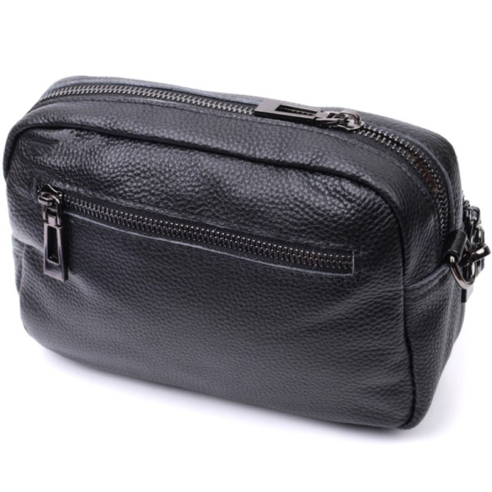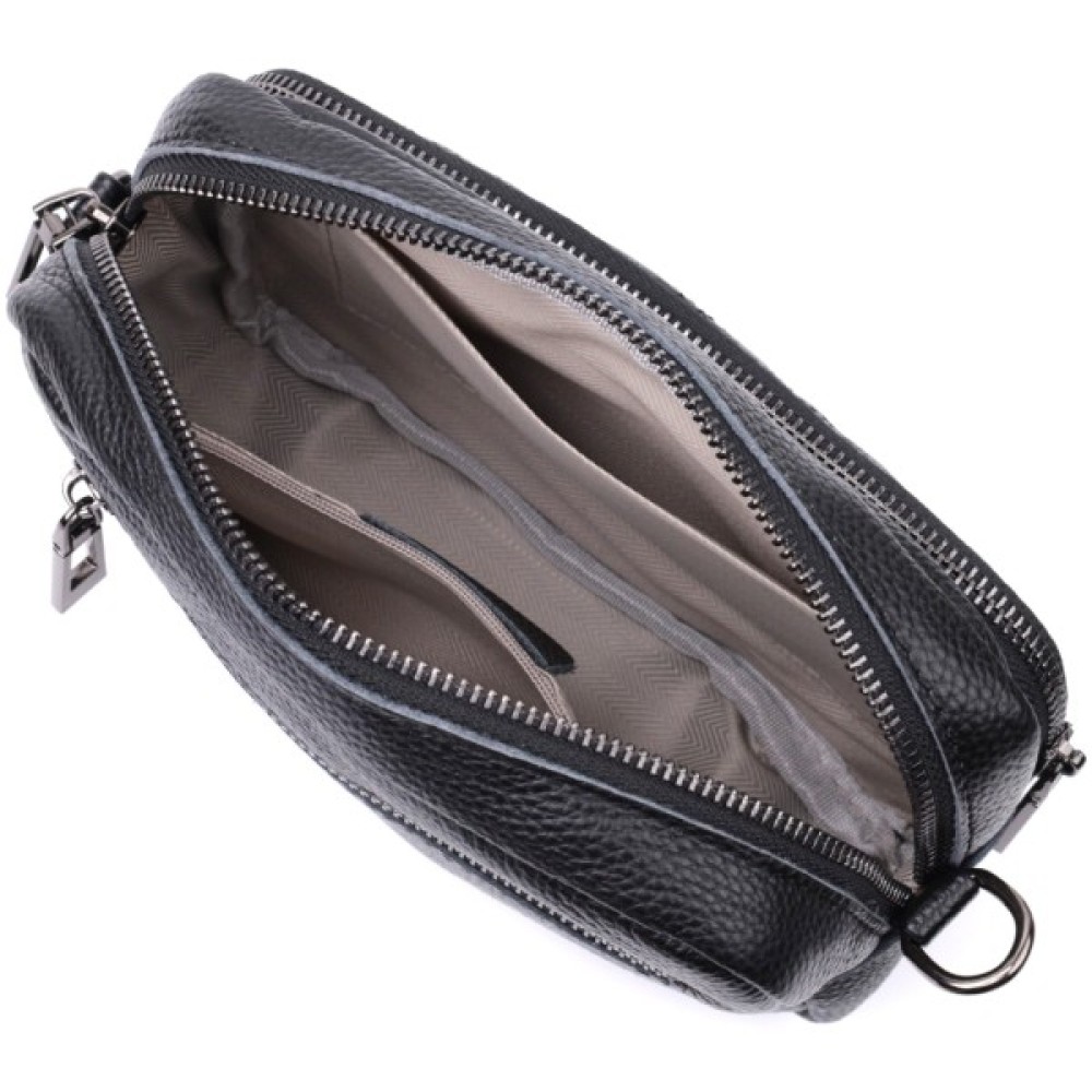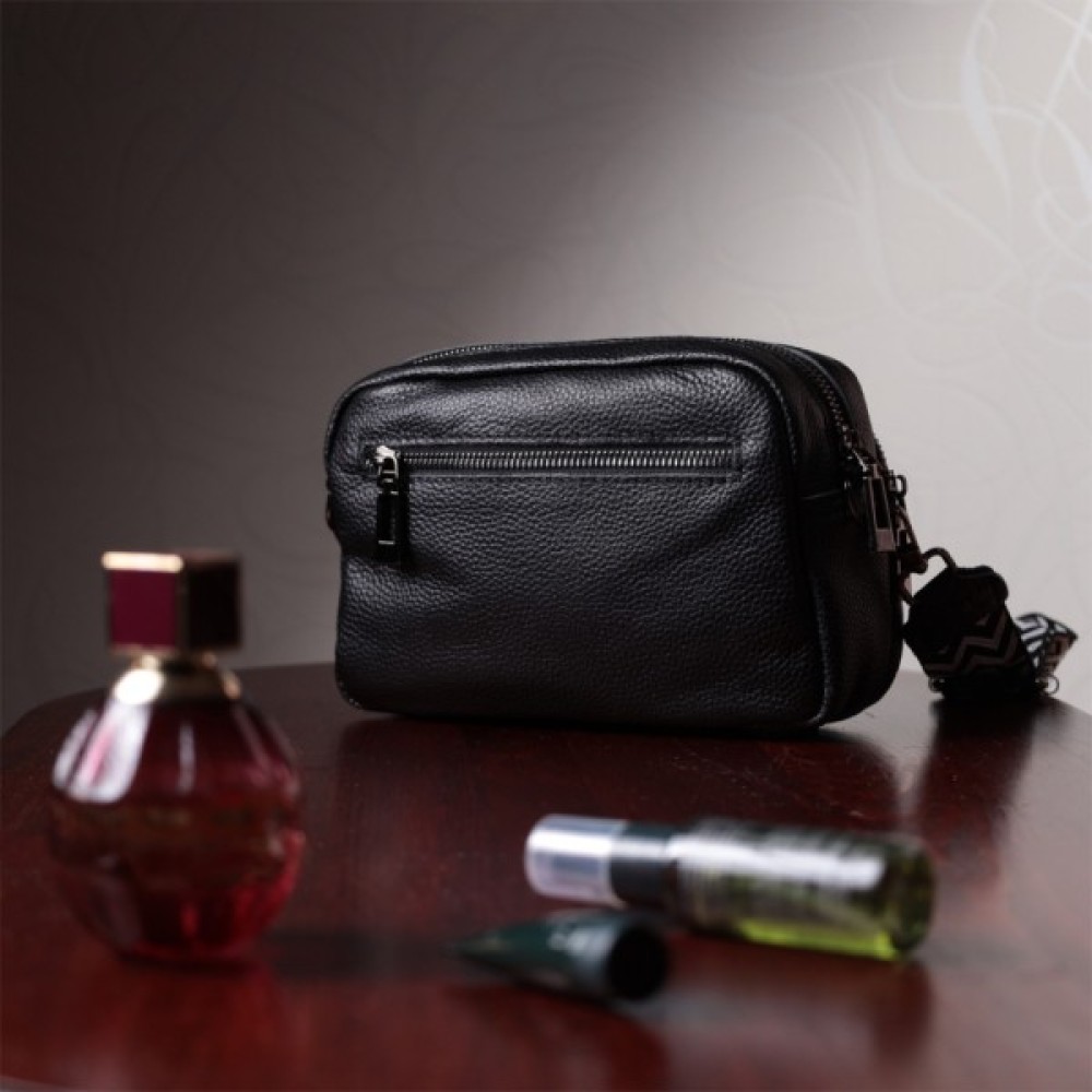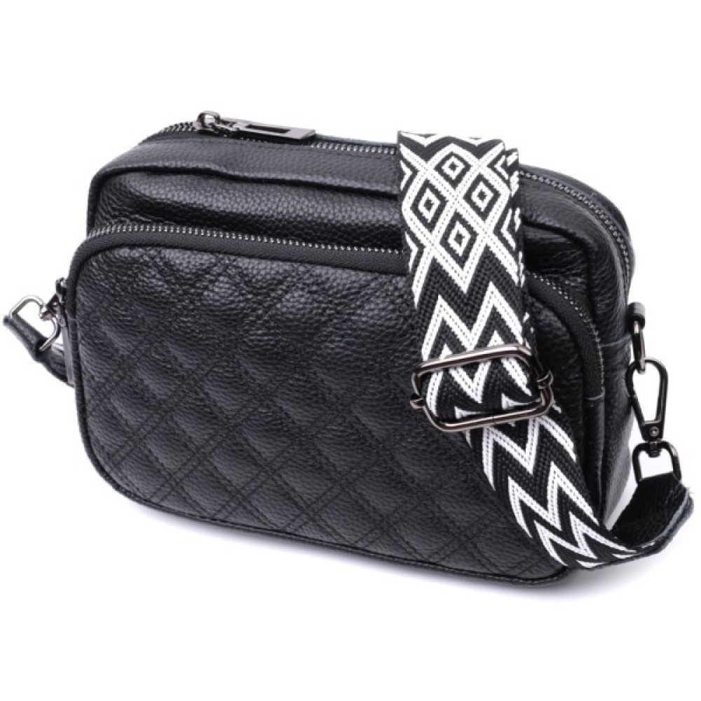 Стильна жіноча сумка з натуральної шкіри у класичному чорному кольорі. Модель декорована трендовим ромбовим прошиттям на лицьовій стороні, що додає їй вишуканого вигляду.
