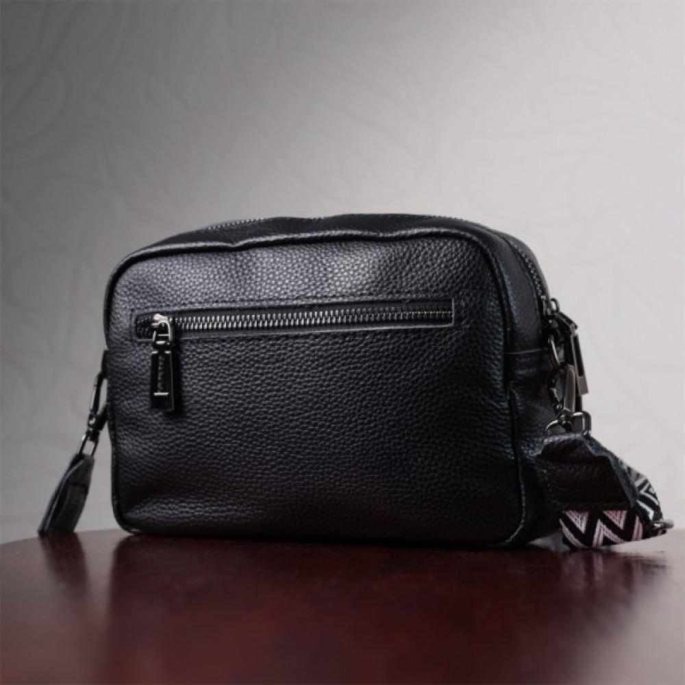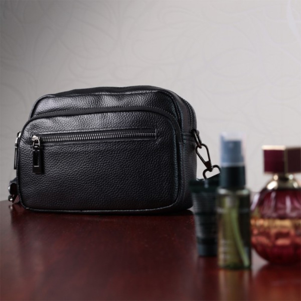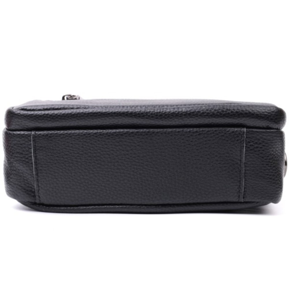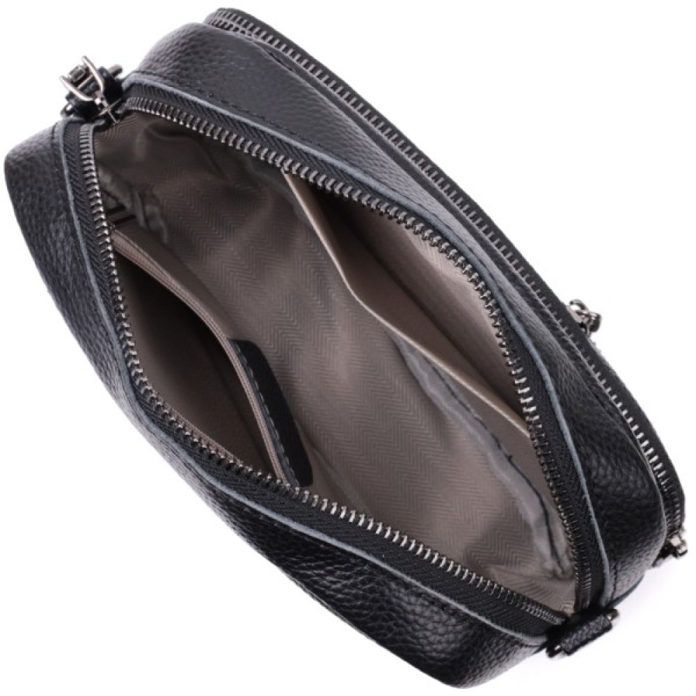 Компактна жіноча сумка в класичному чорному кольорі з натуральної шкіри.