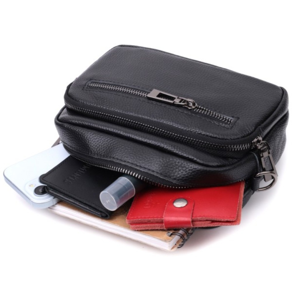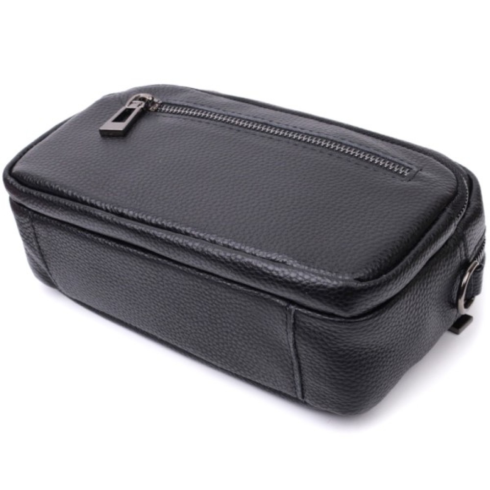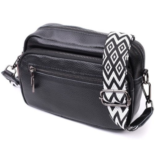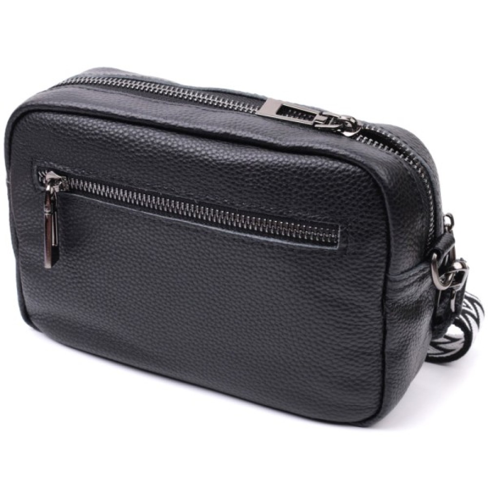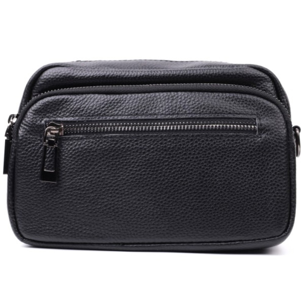 Компактна жіноча сумка в класичному чорному кольорі з натуральної шкіри.