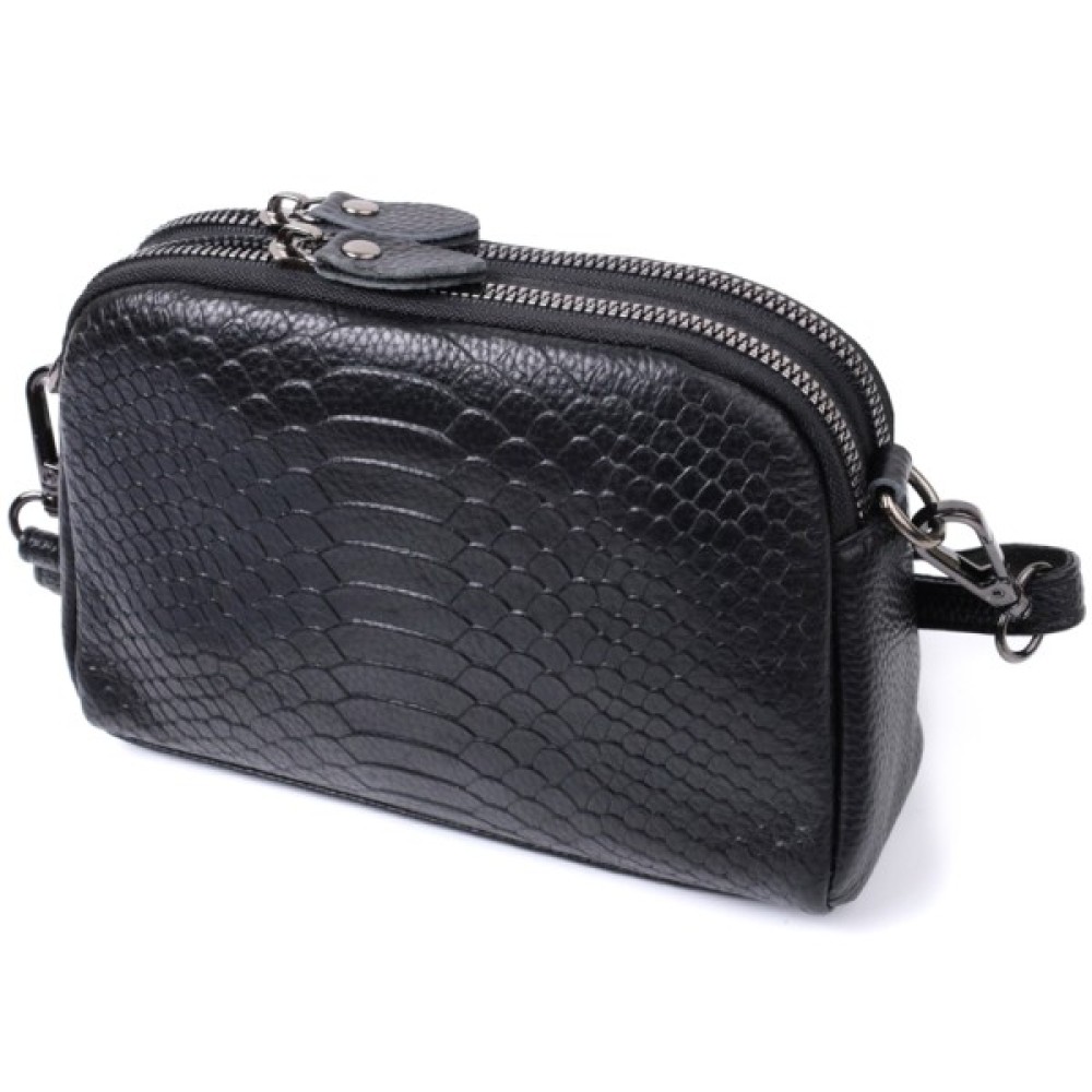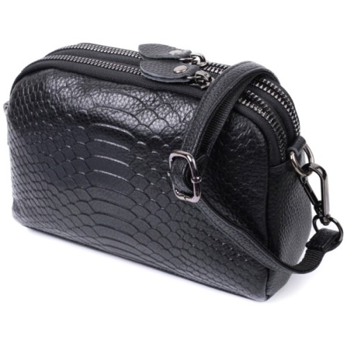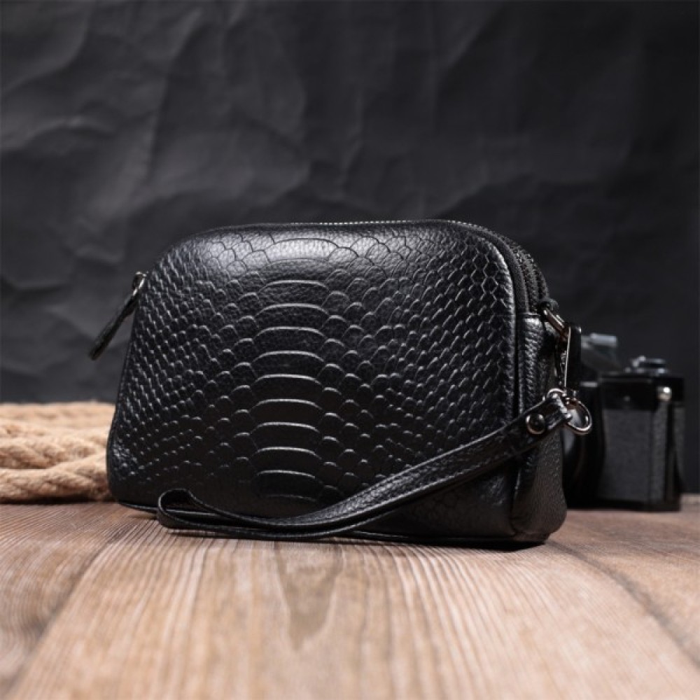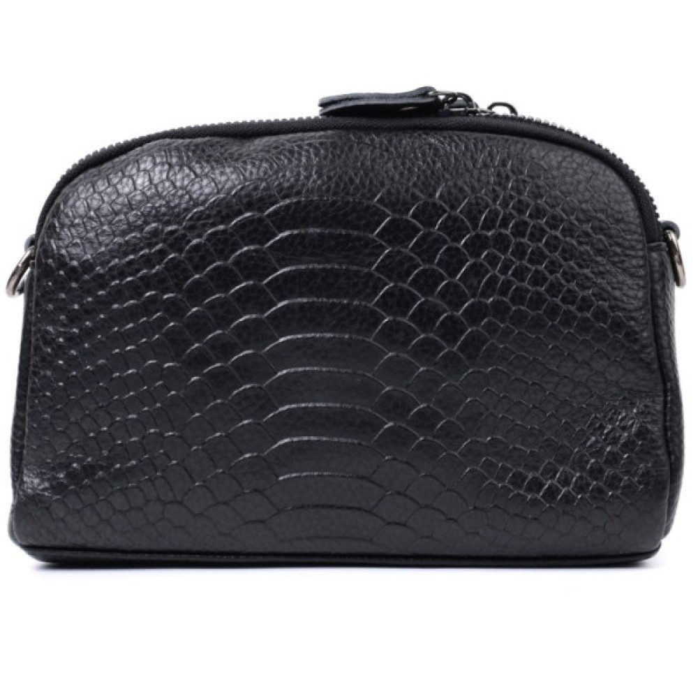 Жіноча сумка з натуральної шкіри високої якості з тисненням під змію. Виріб дуже зручний, можна носити на плечі та через плече, на кисті та просто під рукою як клатч. Модель доповнена фурнітурою кольору темного срібла. Аксесуар має два основні відділення, у яких дві кишеньки - одна на блискавці та одна відкритого типу, а також кишеня на блискавці зовні, на тильній стороні. Ідеальний варіант для будь-якої дівчини, яка цінує якість і має чудовий смак.
