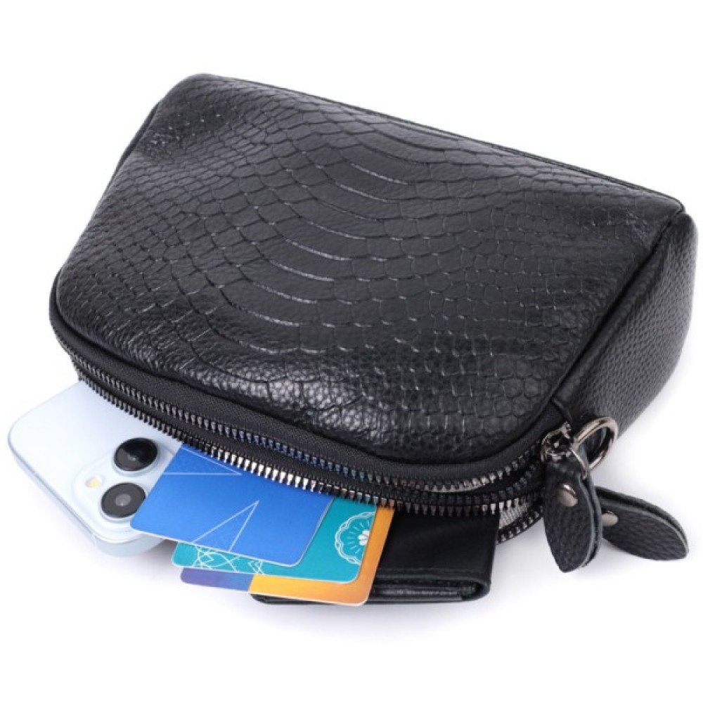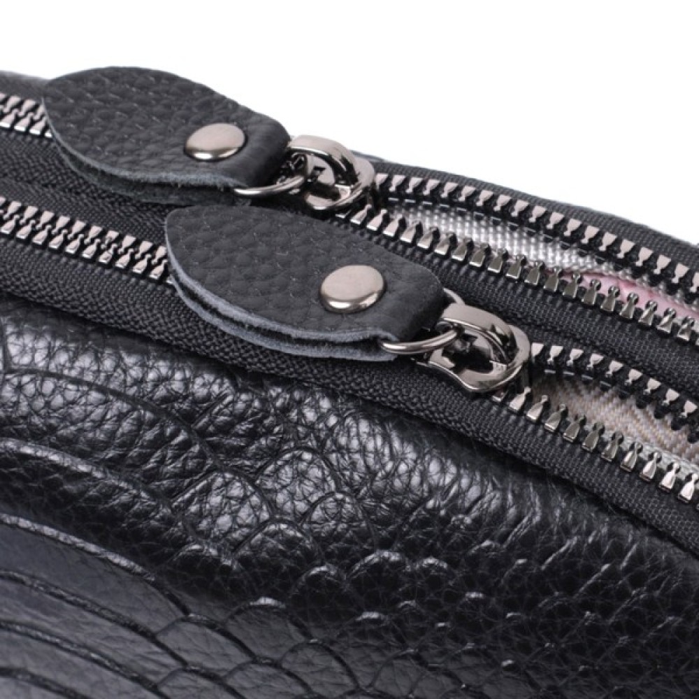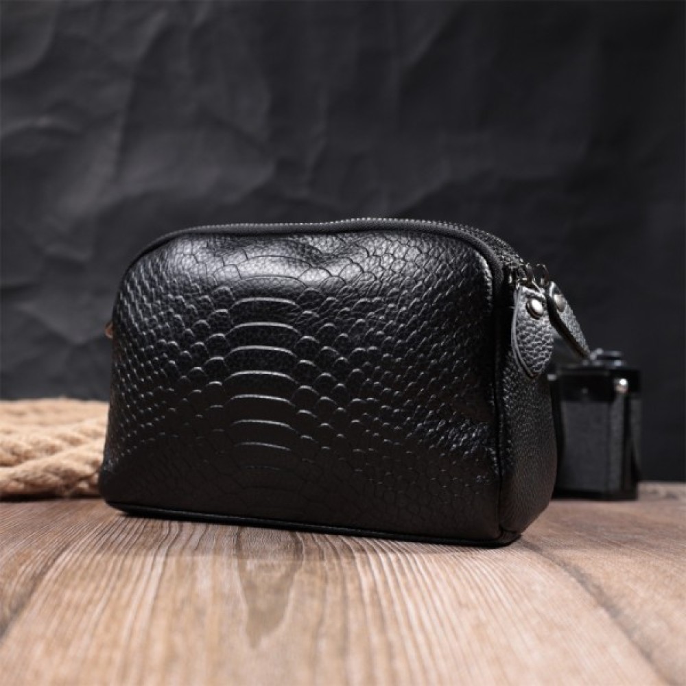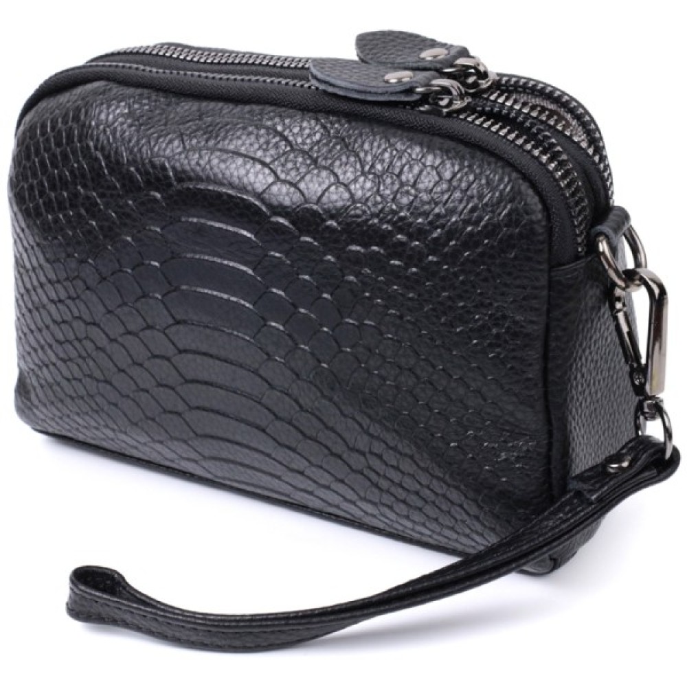 Жіноча сумка з натуральної шкіри високої якості з тисненням під змію. Виріб дуже зручний, можна носити на плечі та через плече, на кисті та просто під рукою як клатч. Модель доповнена фурнітурою кольору темного срібла. Аксесуар має два основні відділення, у яких дві кишеньки - одна на блискавці та одна відкритого типу, а також кишеня на блискавці зовні, на тильній стороні. Ідеальний варіант для будь-якої дівчини, яка цінує якість і має чудовий смак.