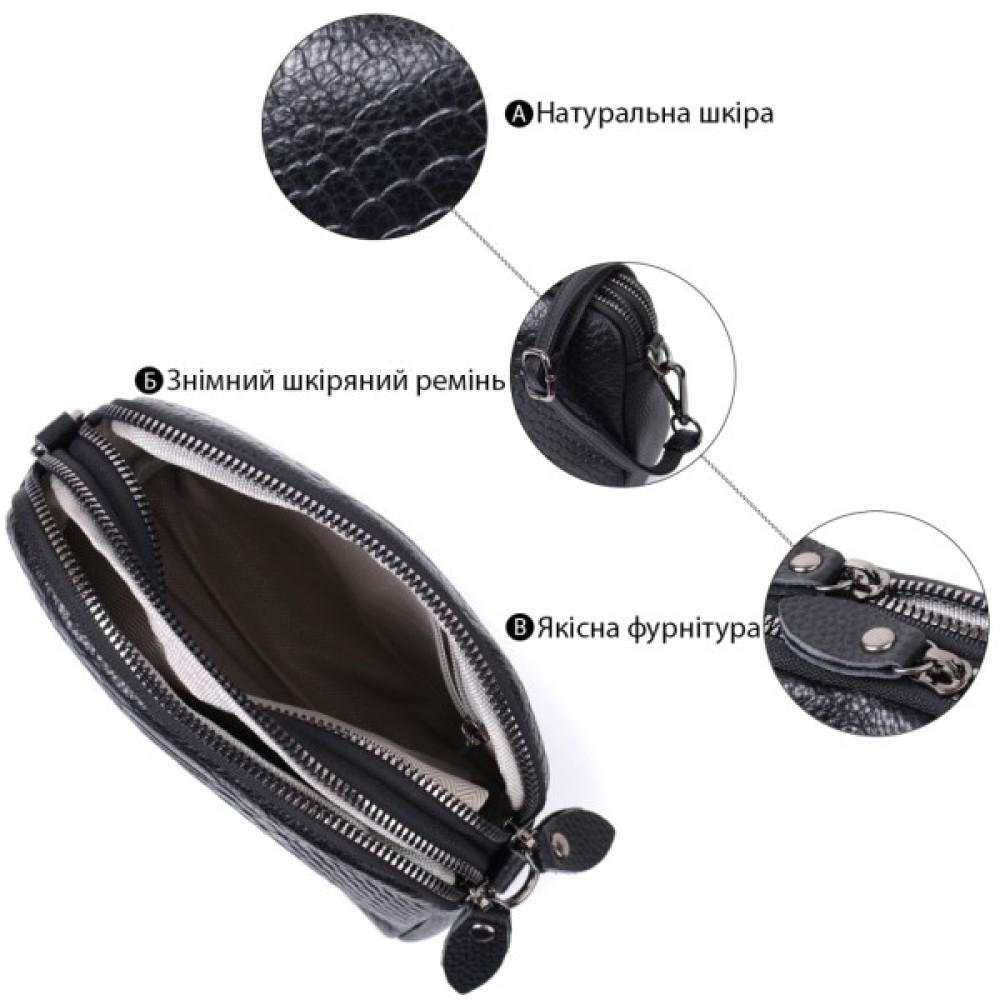 Особливості знімний шкіряний ремінь; на тильній стороні кишеня на блискавці; знімний кистьовий ремінь