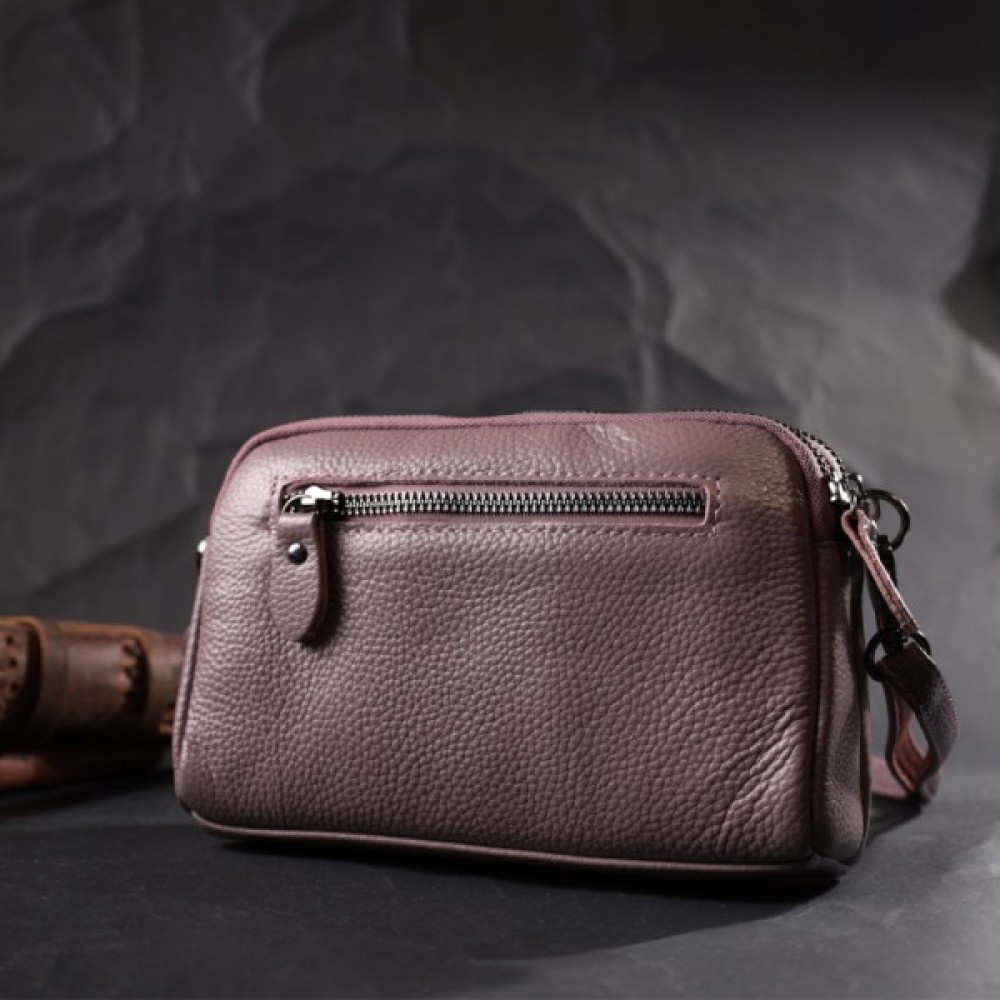 Сумка для жінок невеликого розміру на два автономні відділення з натуральної шкіри флотар. Вона невибаглива у догляді та довго носиться. Аксесуар складається з двох автономних відділень, кишені відкритого типу, потайної кишені на блискавці та зовнішньої кишені на блискавці, що знаходиться на тильній стороні. Носити сумку можна в руці, на зап'ясті для цього передбачений шкіряний кистьовий ремінь, що знімається, а також на плечі і через плече, для цього є шкіряний знімний ремінь. В аксесуарі використано якісну фурнітуру кольору срібла. Відмінний варіант сумки для жінок, які люблять якісні та стильні речі.
