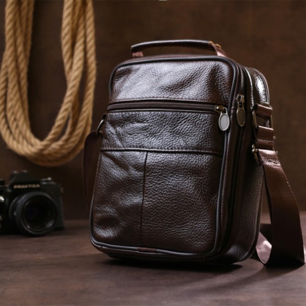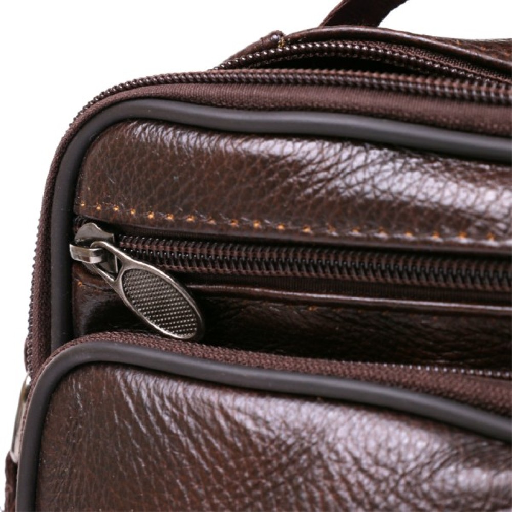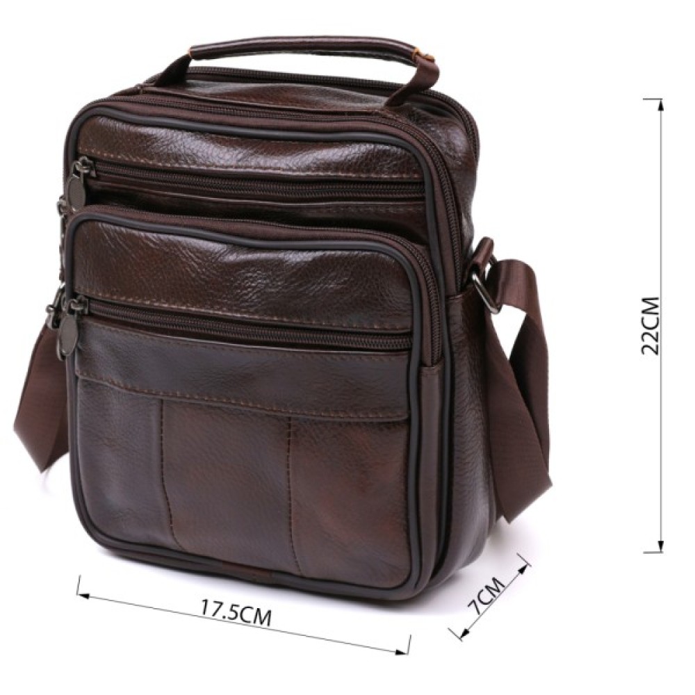 Добротна чоловіча сумка-месенджер із натуральної шкіри високої якості з відмінними характеристиками. Має місткі основні відділення та додаткові кишені на зовнішній стороні, що дуже зручно та практично.