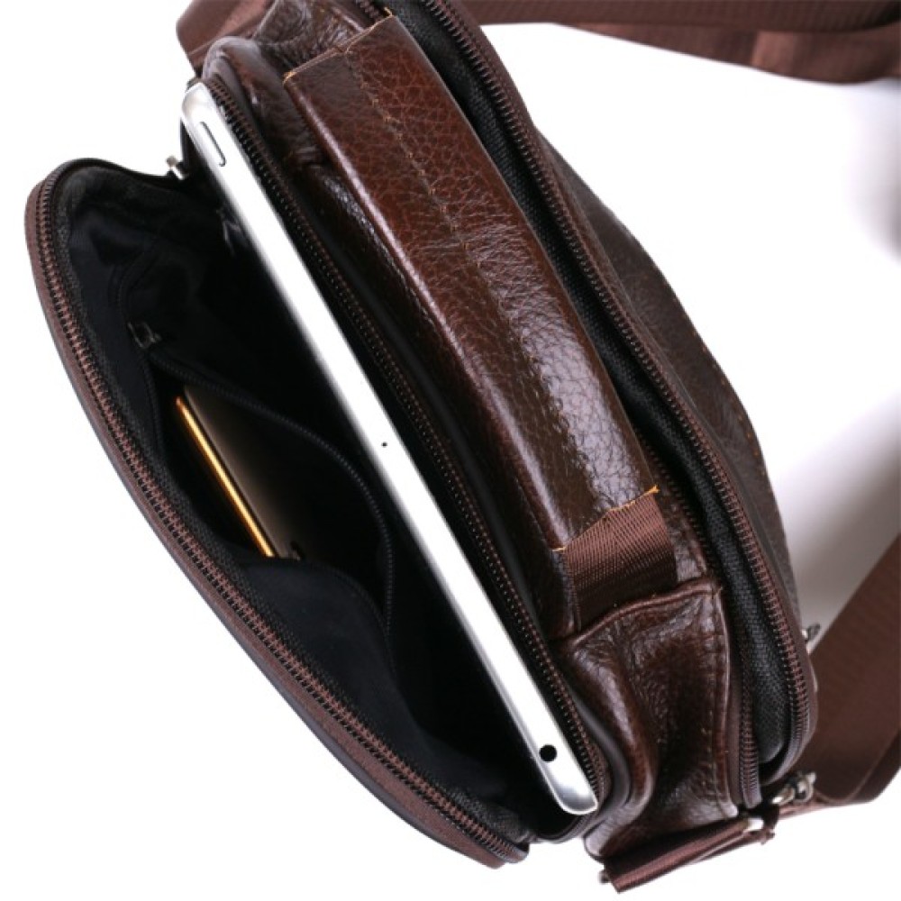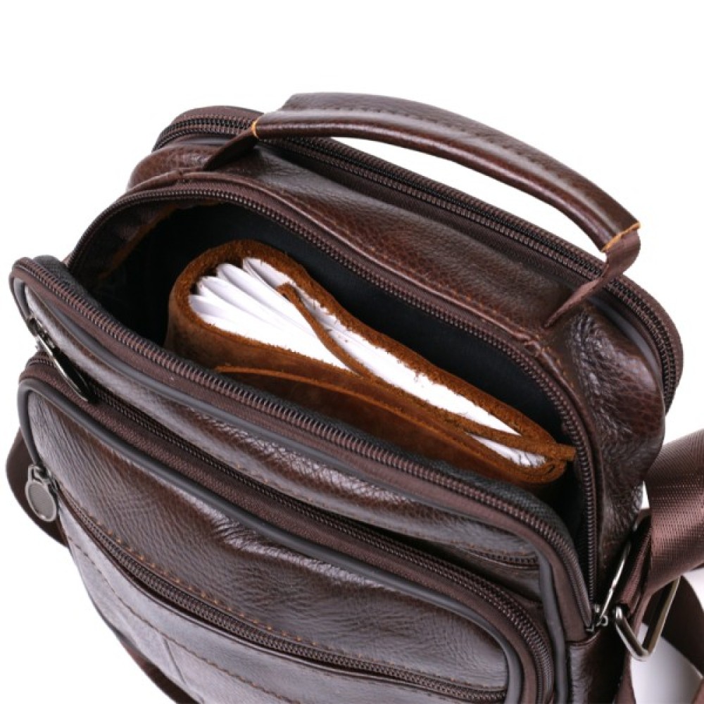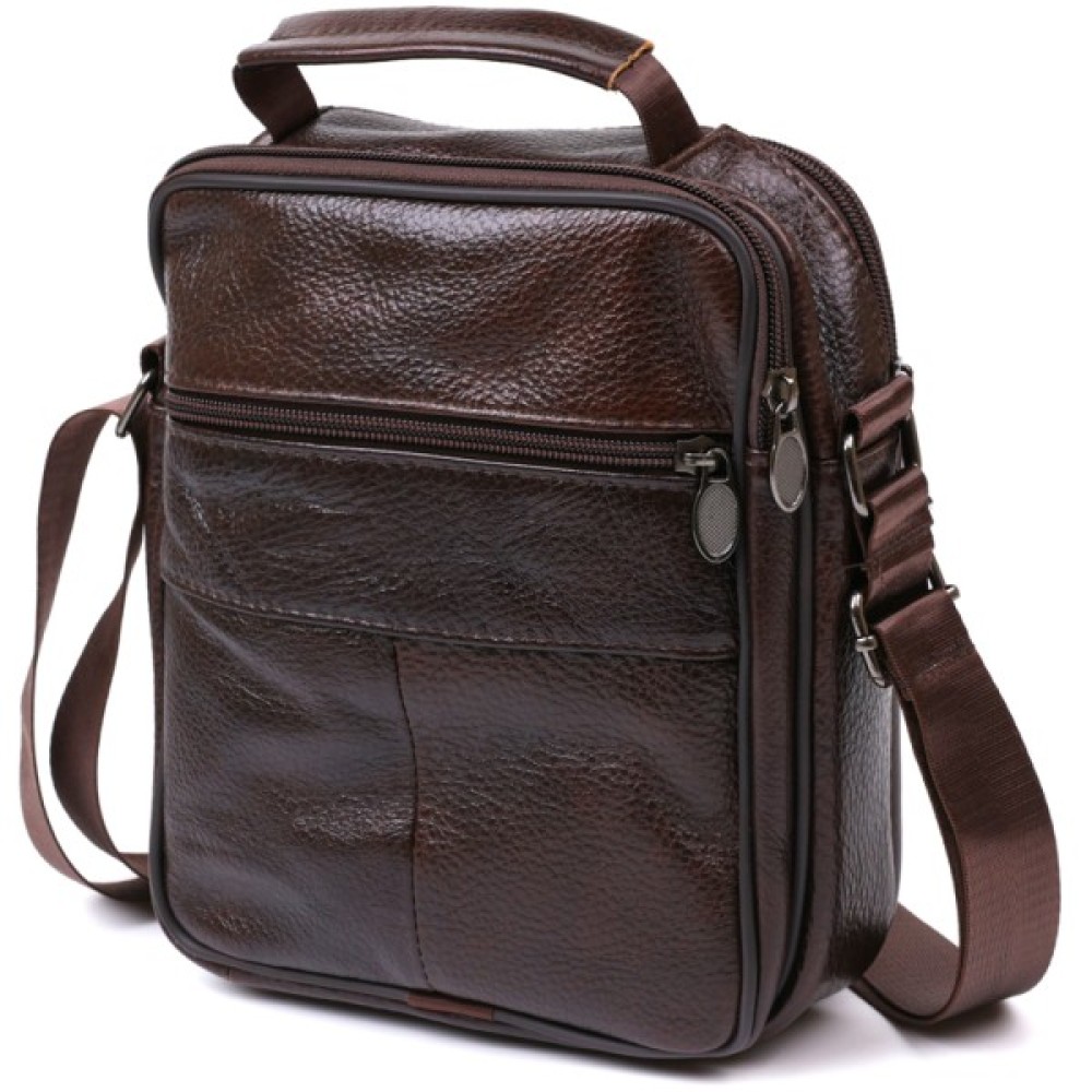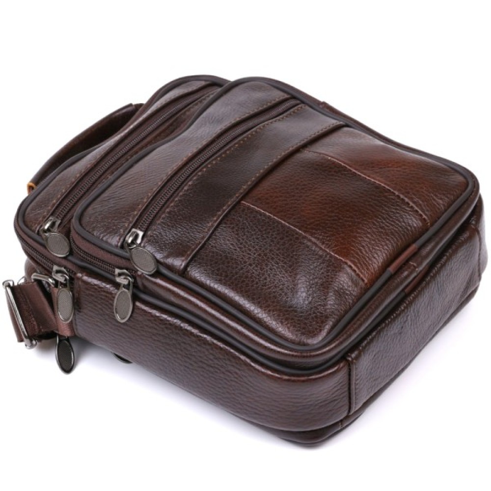 Добротна чоловіча сумка-месенджер із натуральної шкіри високої якості з відмінними характеристиками. Має місткі основні відділення та додаткові кишені на зовнішній стороні, що дуже зручно та практично.