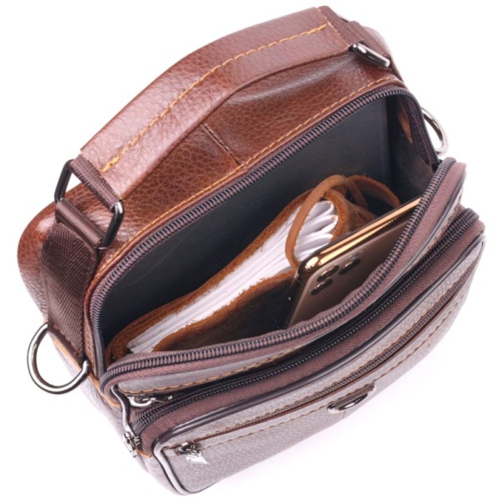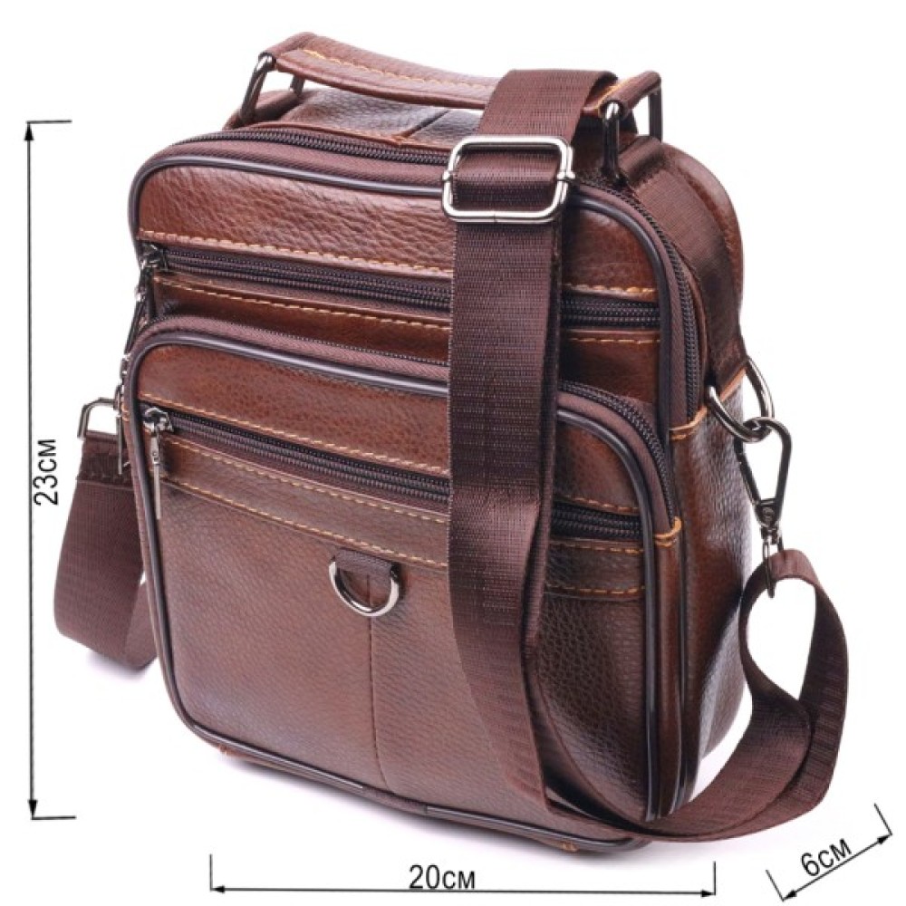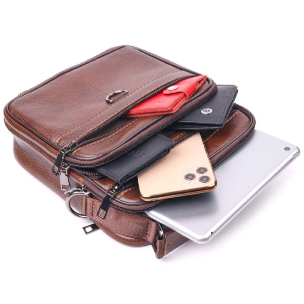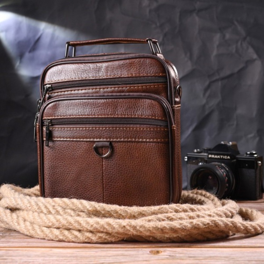 Багатофункціональна чоловіча сумка середнього розміру із натуральної шкіри. Модель, яка ідеально підійде на кожен день.