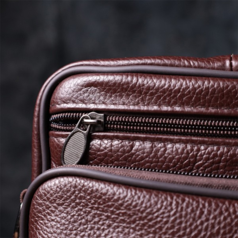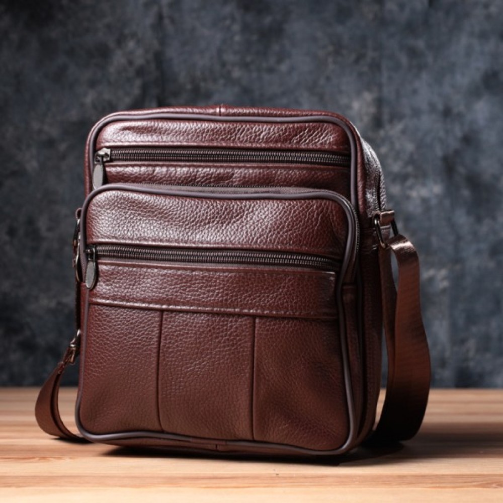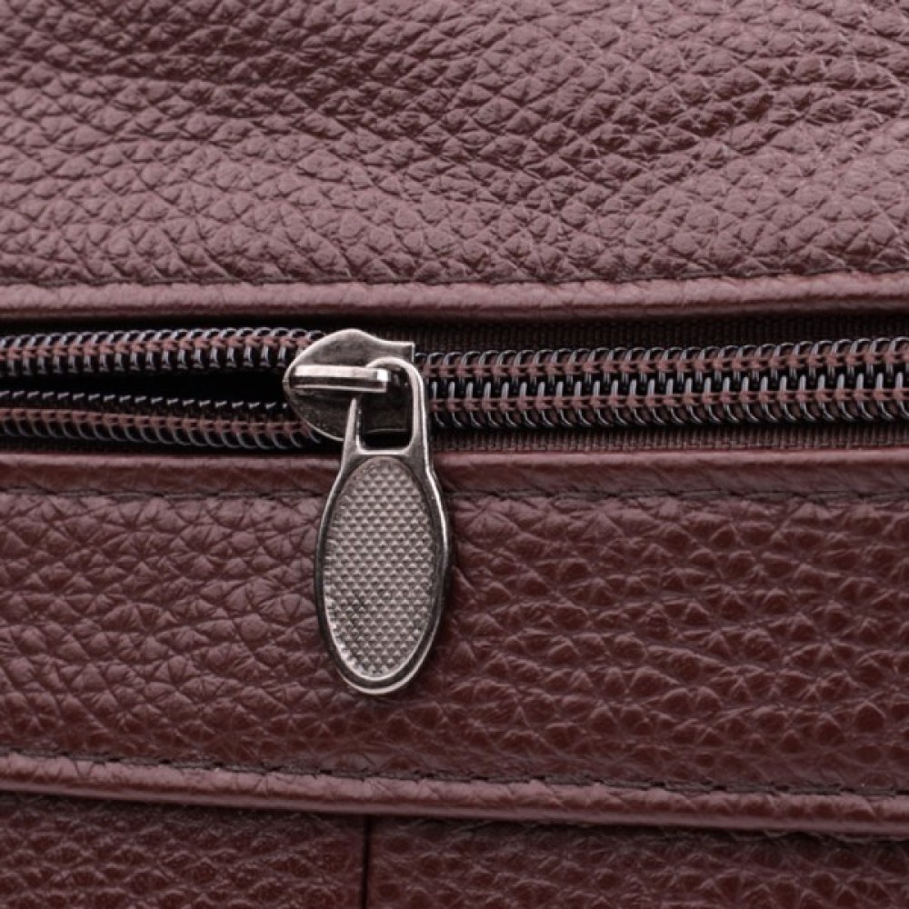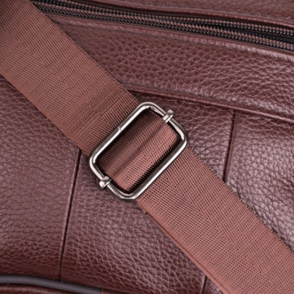Солідна чоловіча сумка з натуральної шкіри, у коричневому кольорі, з якісною фурнітурою.