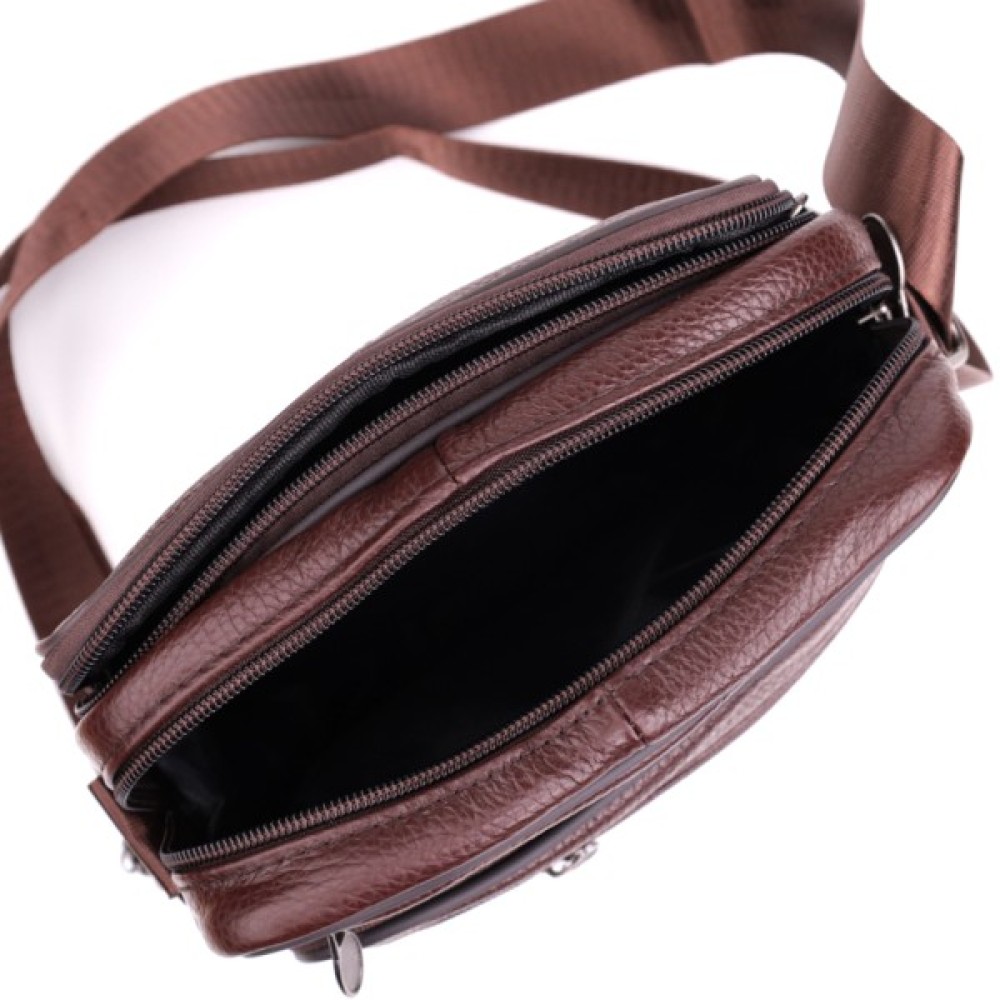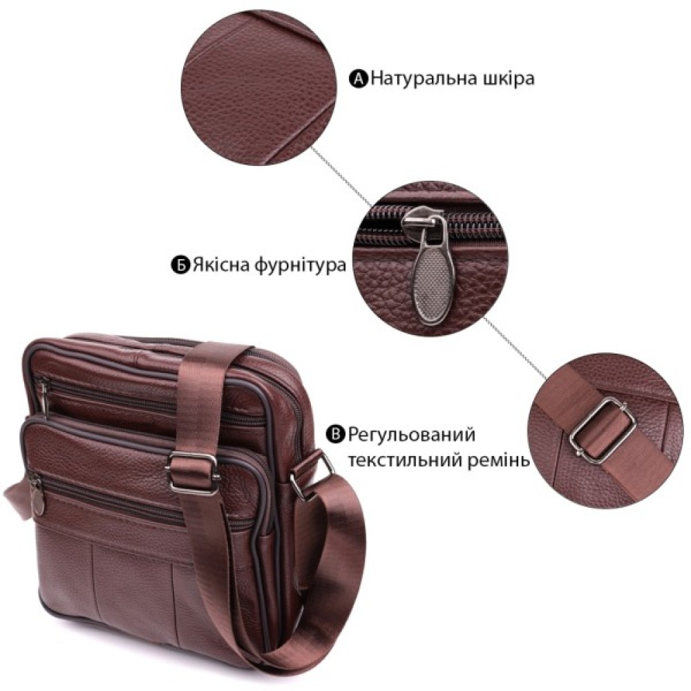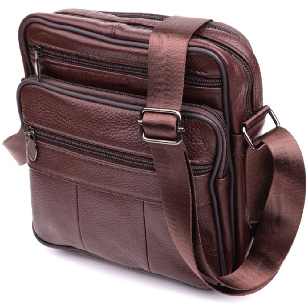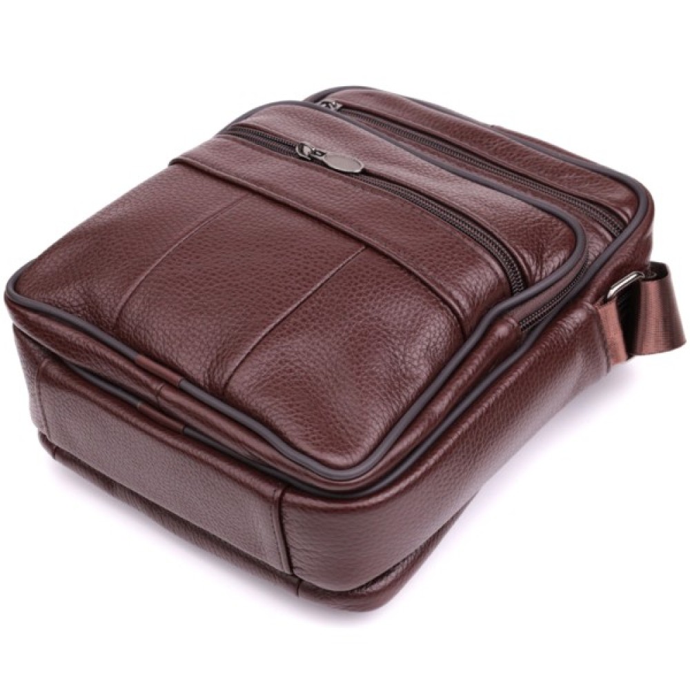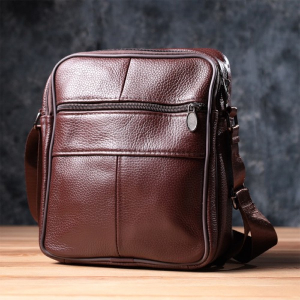 Солідна чоловіча сумка з натуральної шкіри, у коричневому кольорі, з якісною фурнітурою.