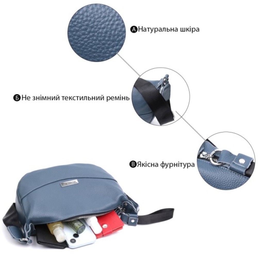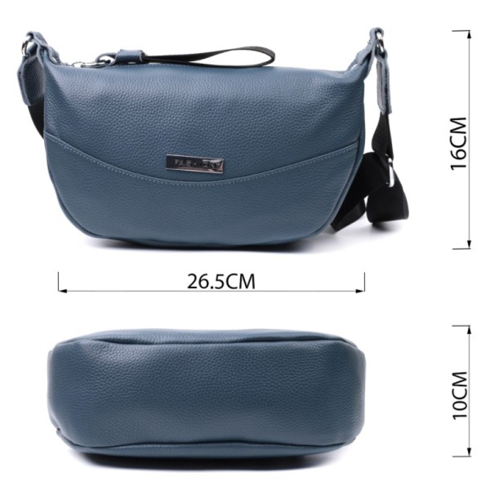 Практична сумка жіноча на плече з натуральної шкіри, яка дуже добре носиться і не втрачає свій первісний вигляд з часом. Аксесуар складається з основного відділення, потайної кишені на блискавці та кишені відкритого типу, а також кишені на блискавці зовні. Носити сумку зручно через плече. В аксесуарі використано якісну фурнітуру кольору срібла. Чудовий варіант сумки на кожен день.