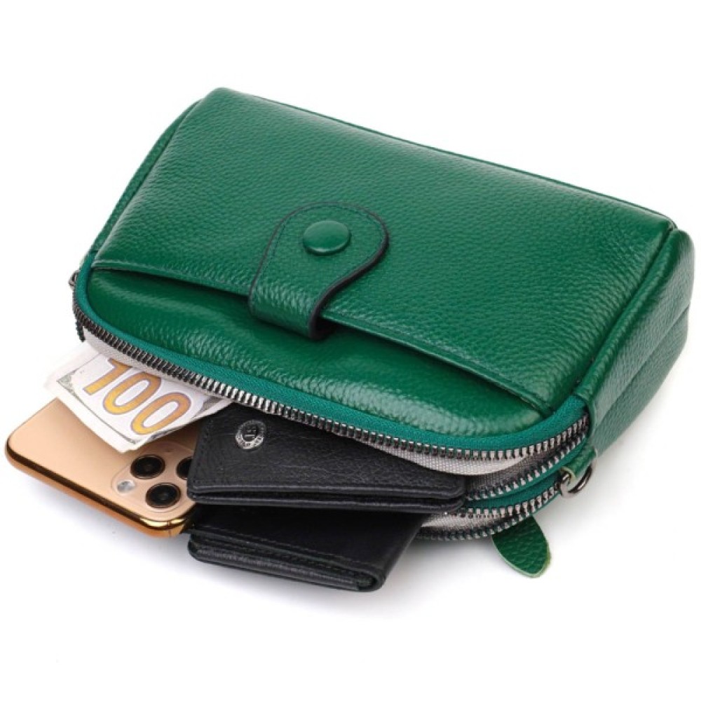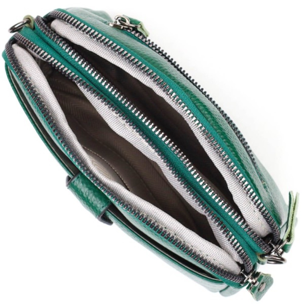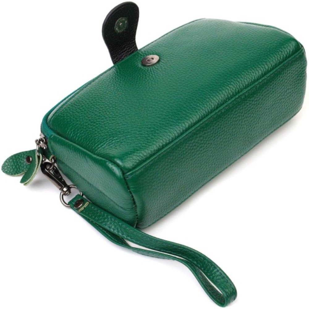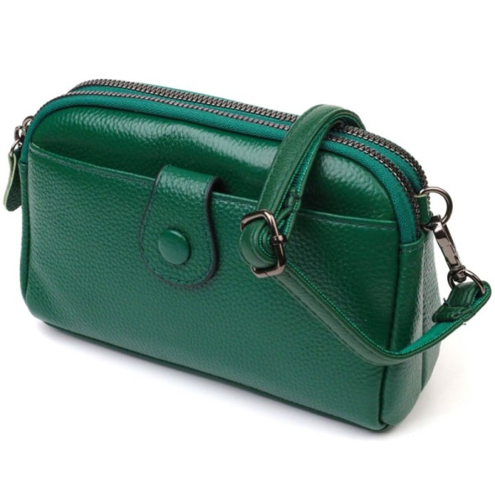 Чудова невелика сумка-клатч із натуральної м'якої шкіри високої якості. Виріб дуже зручний — можна носити на плечі, через плече, під рукою та на кисті. Модель доповнена фурнітурою кольору темного срібла. Аксесуар має два основні відділення на блискавках, в яких дві кишеньки — на блискавці та одна відкритого типу, також зовні знаходяться дві кишені. У комплекті до сумки йде знімний плечовий ремінь та знімний кистьовий ремінь. Модель закривається на блискавку.