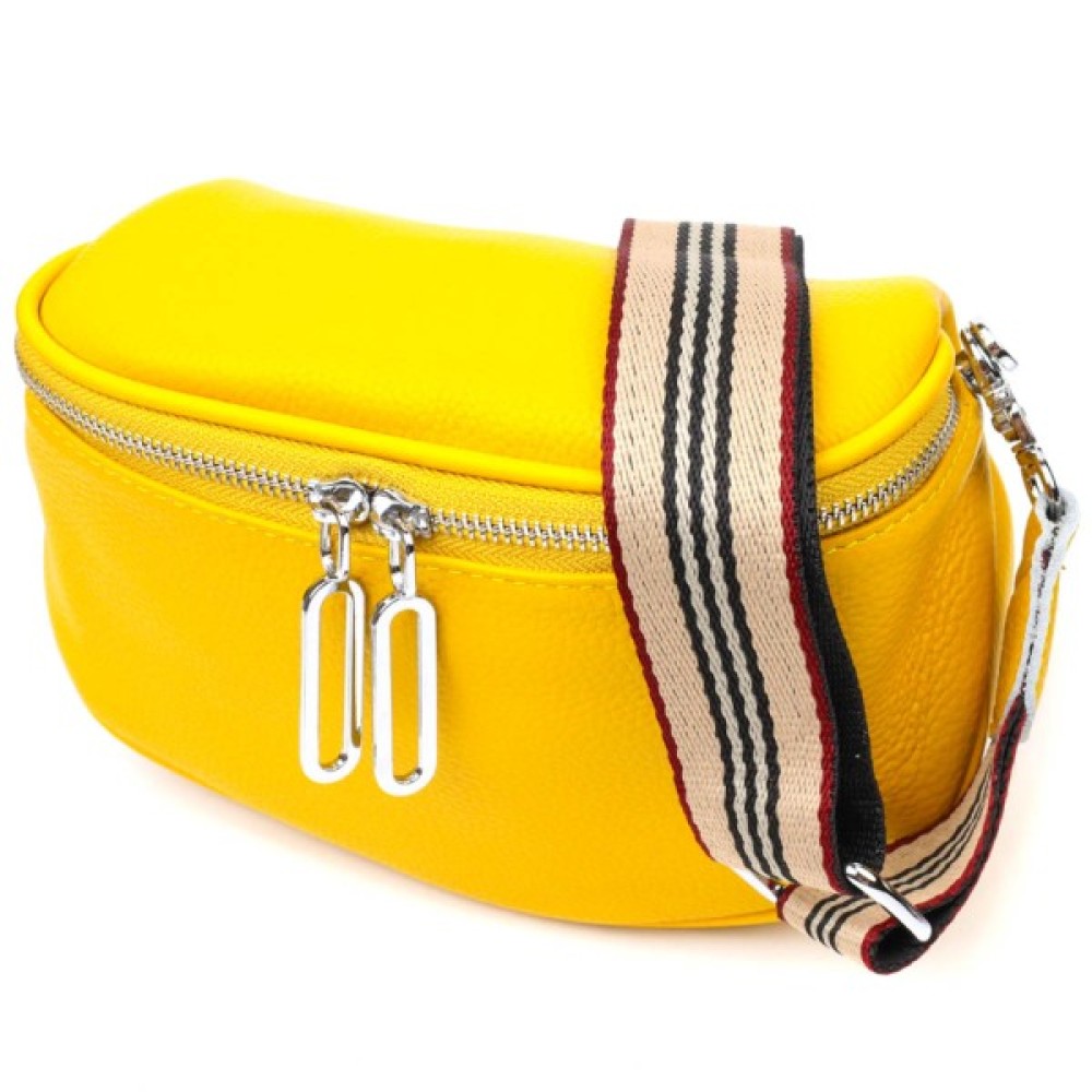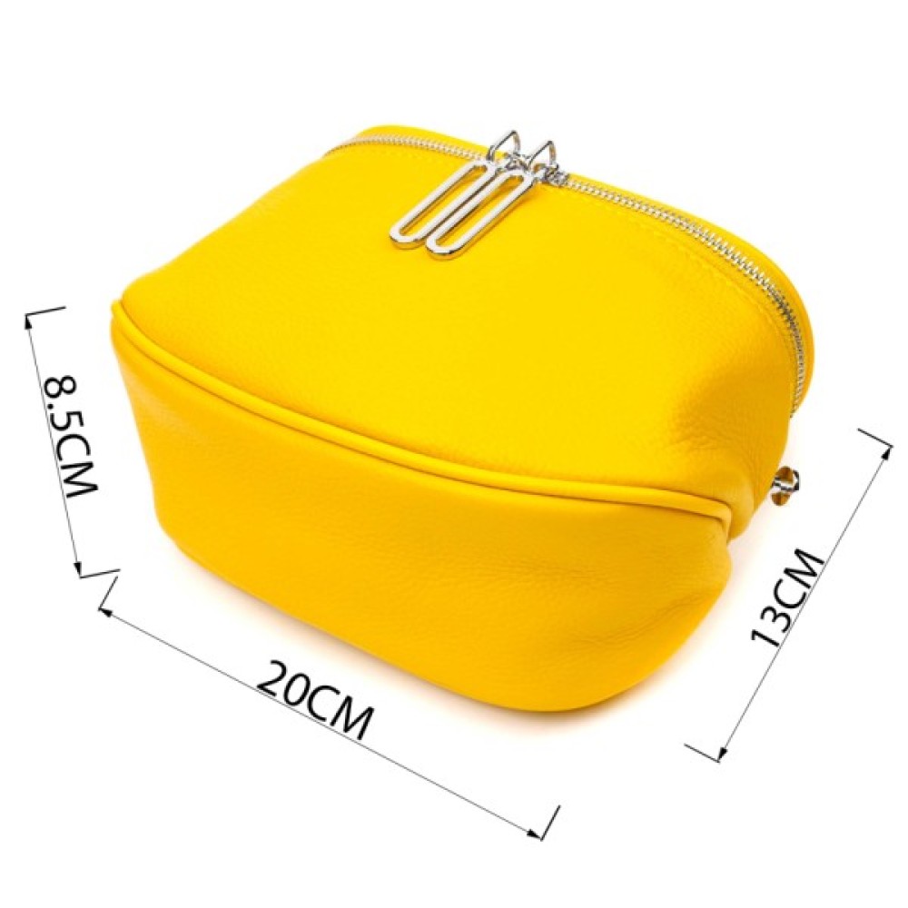 Яскрава жіноча сумочка на літо з натуральної шкіри високої якості. Виріб дуже зручний, можна носити на плечі та через плече, відмінний повсякденний варіант невеликої сумки. Модель доповнена фурнітурою сріблястого кольору. Аксесуар має одне основне відділення в якому дві кишеньки: на блискавці та відкритого типу. Модний та практичний варіант сумки для стильних жінок.