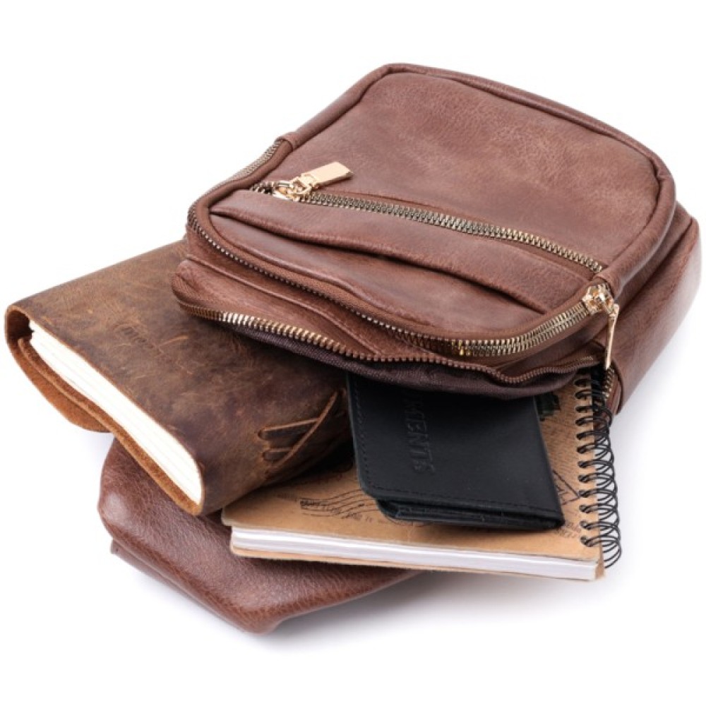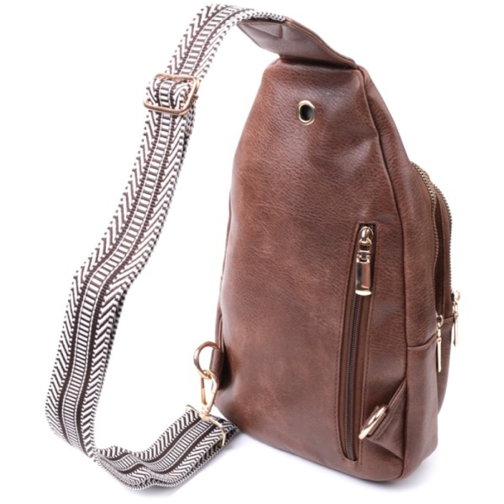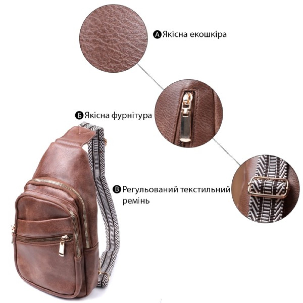 Пропонуємо до Вашої уваги зручну слінг сумку з екошкіри коричневого кольору.