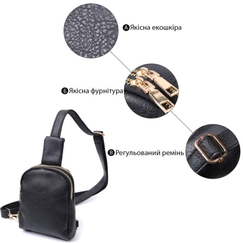 Цікава слінг сумка через плече з якісної екошкіри на два відділення. Акцентом даної моделі є зручний регульований плечовий ремінець у етнічному стилі, що дуже модно вже кілька сезонів. Екошкіра - високоякісна альтернатива натуральному матеріалу, яка дуже стійка до тертя, до низьких температур, відмінно носиться на відміну від інших штучних матеріалів, а також має гіпоалергенний склад на відміну від натуральної шкіри. Така сумка дуже зручна в експлуатації, оскільки речі завжди під рукою і у безпеці. Однозначно потішить кожну дівчину.