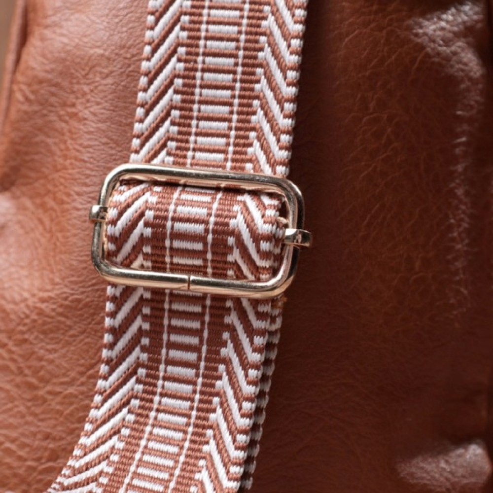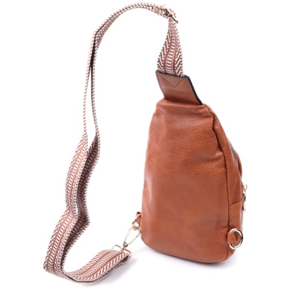 Сумка Vintage Жіноча через плече з екошкіри з акцентом на текстильну лямку Руда (22780)