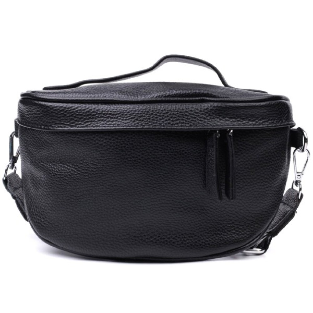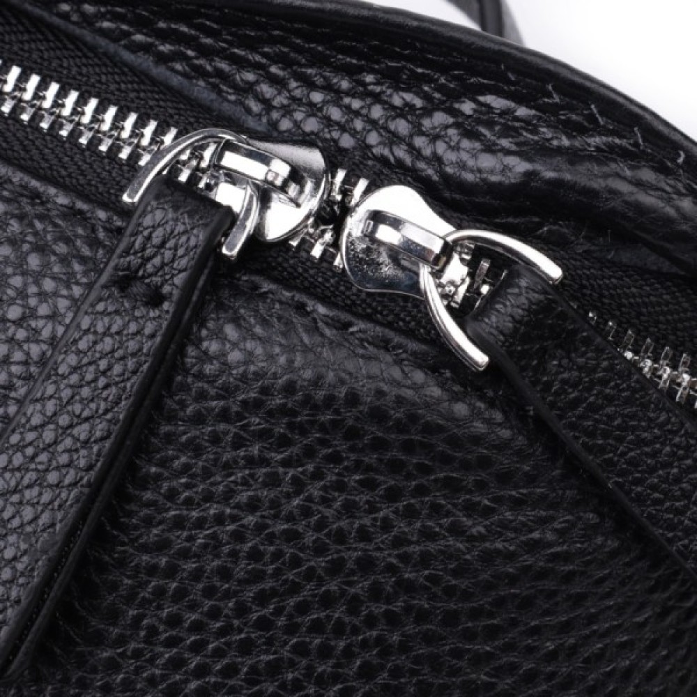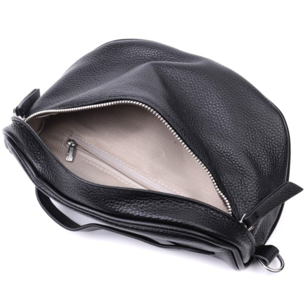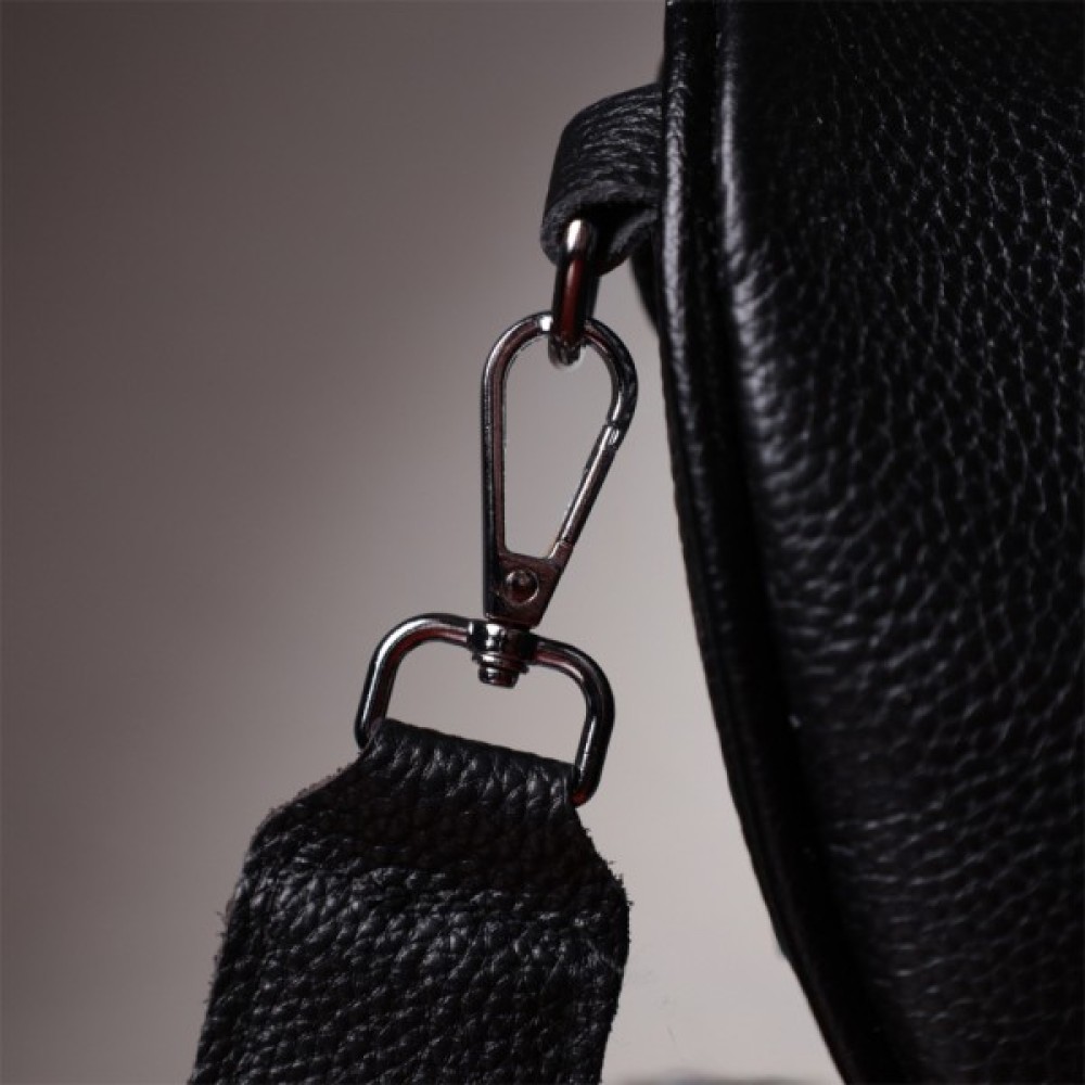 Модна цього сезону сумка через плече з натуральної шкіри. Аксесуар складається з основного відділення, що закривається на блискавку, кишені на блискавці та кишені відкритого типу усередині. Носити сумку можна на плечі, через плече, а також в руках для цього є текстильний ремінь, що знімається, і шкіряна ручка.