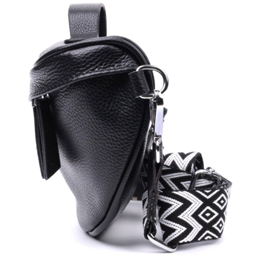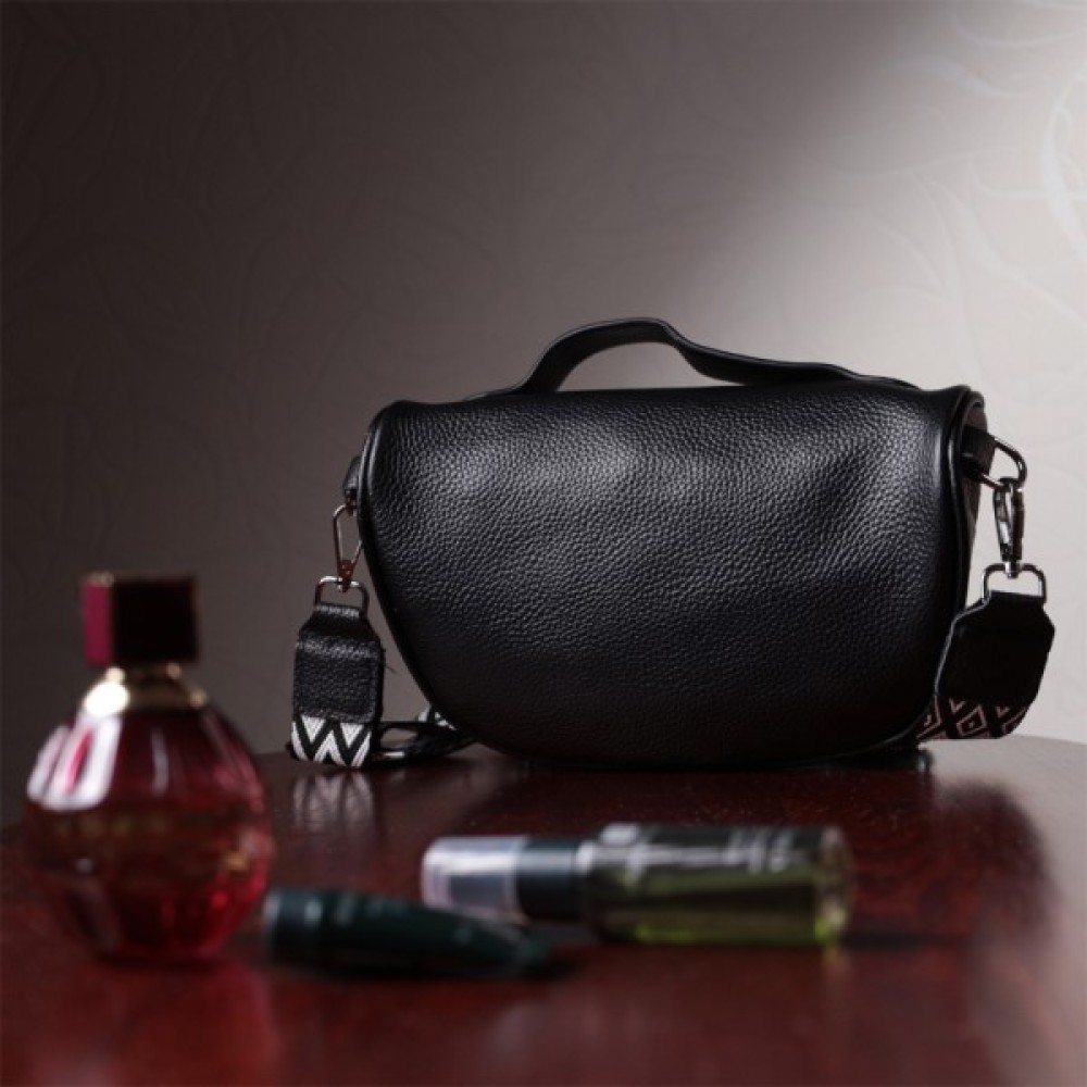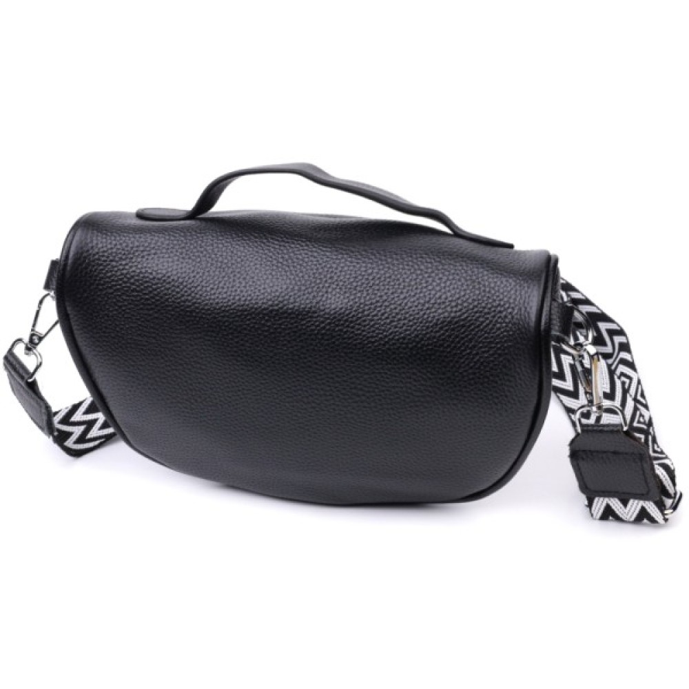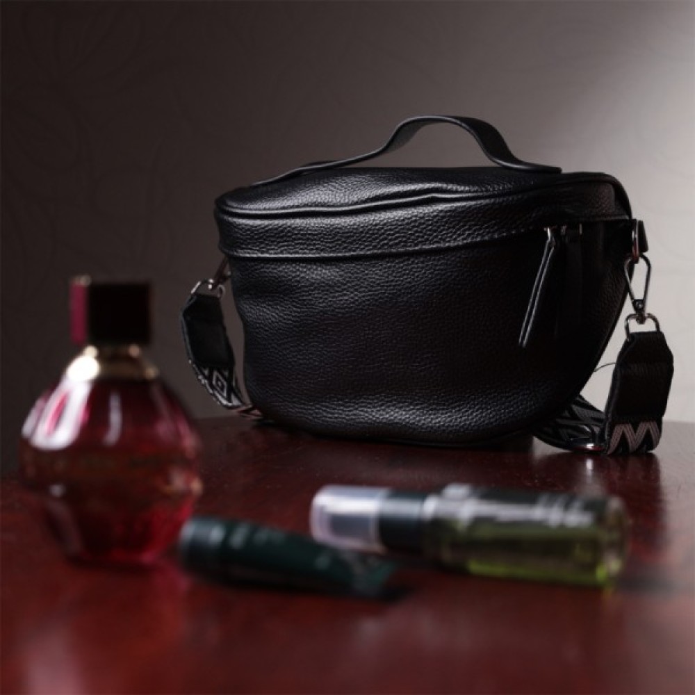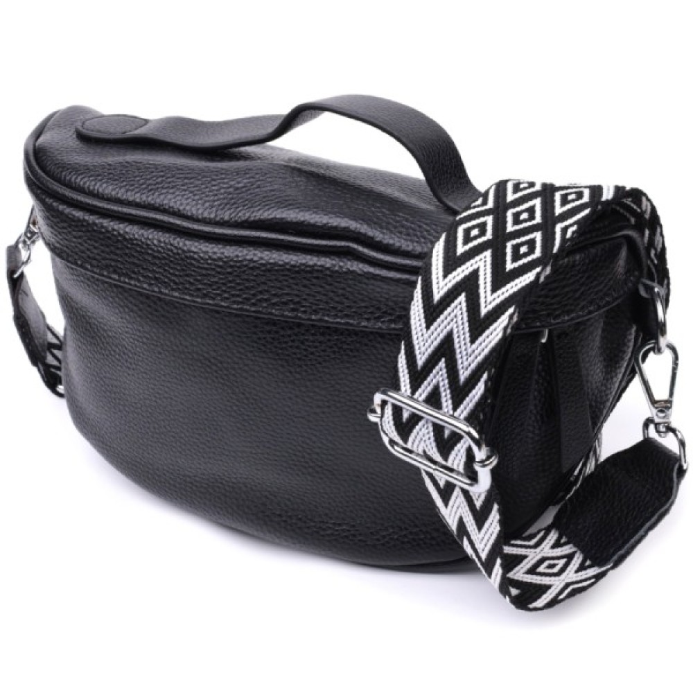 Модна цього сезону сумка через плече з натуральної шкіри. Аксесуар складається з основного відділення, що закривається на блискавку, кишені на блискавці та кишені відкритого типу усередині. Носити сумку можна на плечі, через плече, а також в руках для цього є текстильний ремінь, що знімається, і шкіряна ручка.