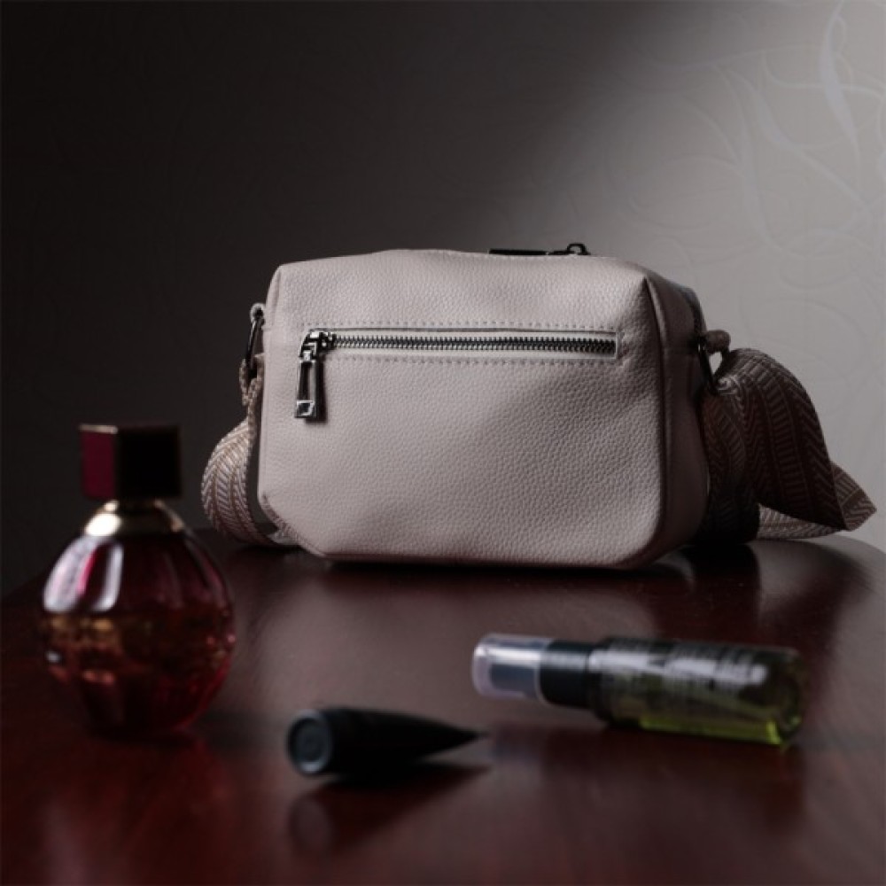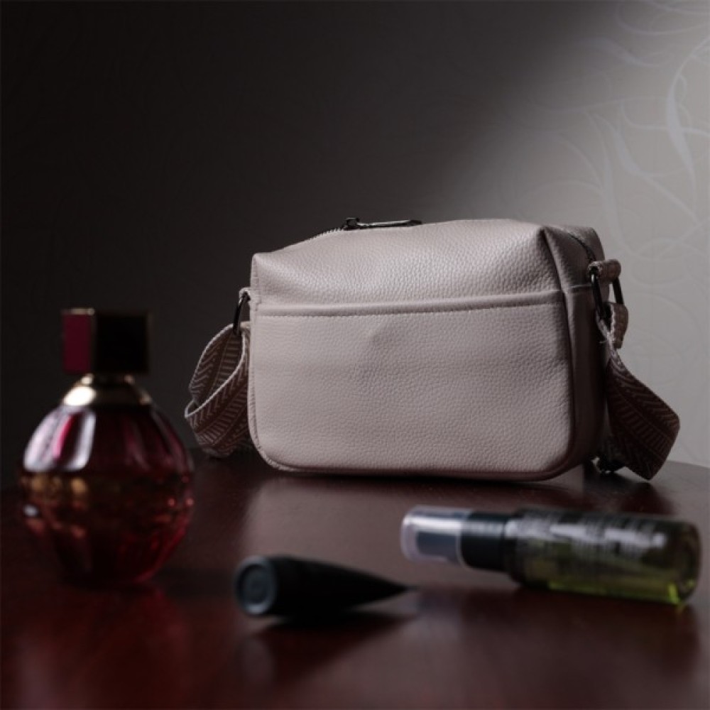 Сучасна жіноча сумка на всі випадки із натуральної якісної шкіри. Аксесуар складається з основного відділення, яке закривається на блискавку, а також двох кишень зовні на лицьовій та тильній стороні. Носити сумку можна в руці, під рукою, на плечі і через плече, для цього є текстильний ремінь, що не знімається. В аксесуарі використано якісну фурнітуру кольору темного срібла. У нашому магазині Ви зможете придбати якісний шкіряний аксесуар, який завжди порадує жінку будь-якого віку.