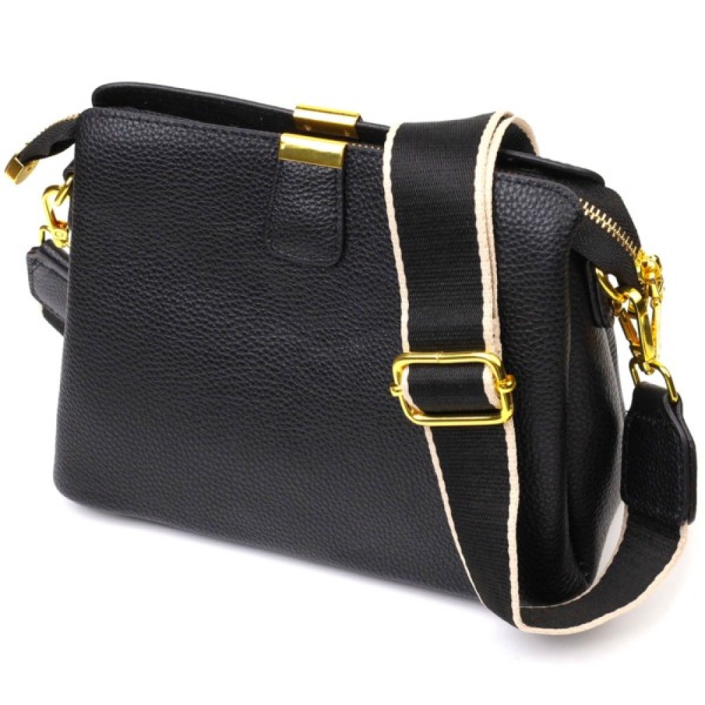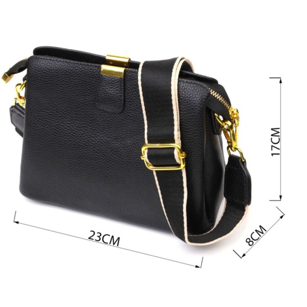 Компактна модель жіночої сумки на кожен день з натуральної шкіри високої якості. Виріб дуже зручний, можна носити на плечі та як клатч. Модель доповнена фурнітурою кольору жовтого золота. Аксесуар має три основні відділення (бічні відділення закриваються на магніти, а середнє на блискавку), в середньому відділенні дві бічні кишеньки - одна на блискавці та одна відкритого типу. Відмінна сумка, яка не залишить байдужою жодну жінку.