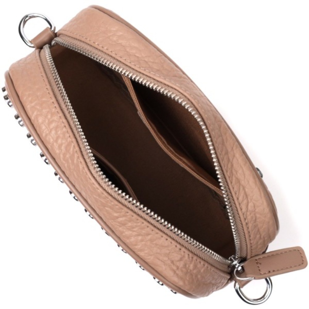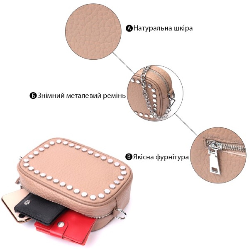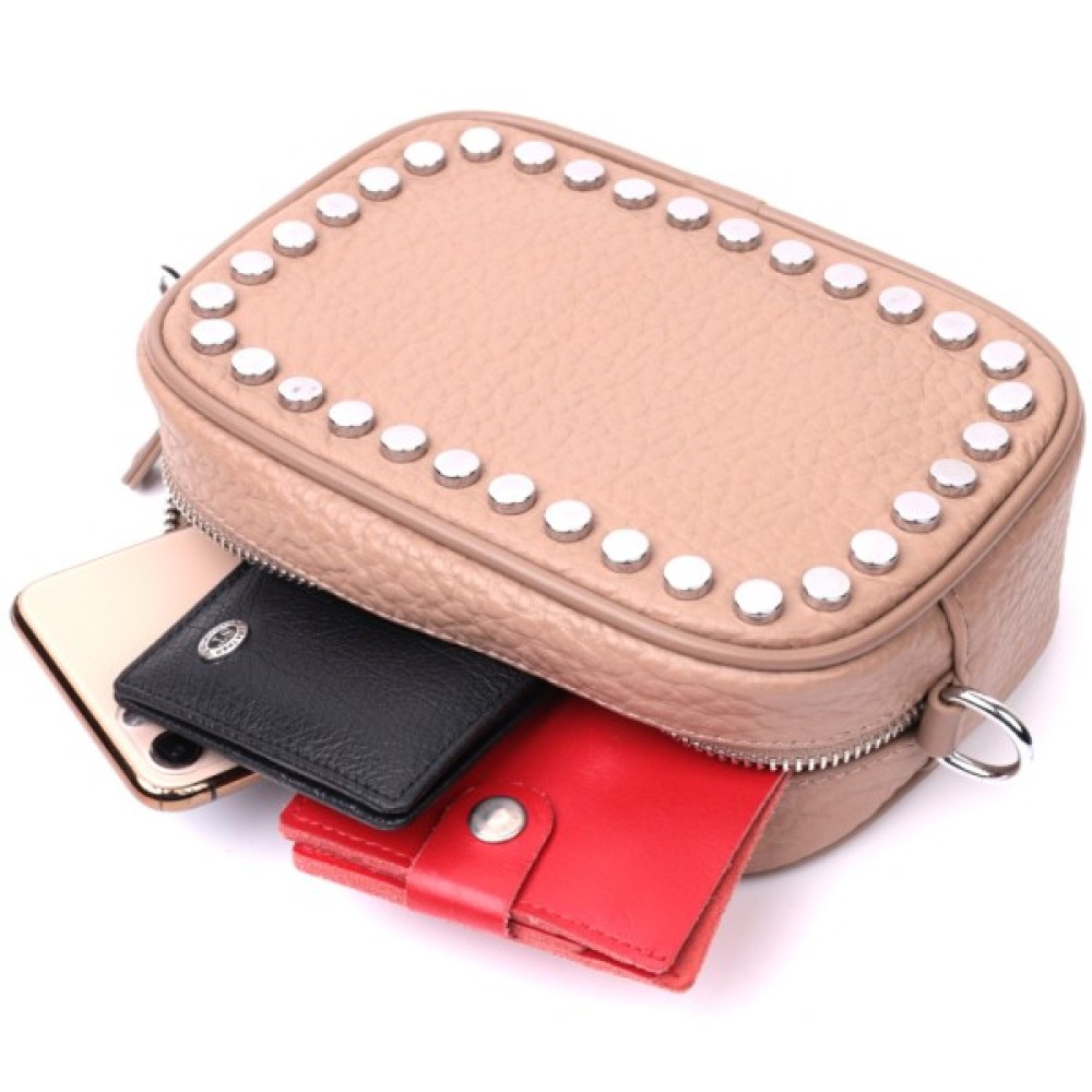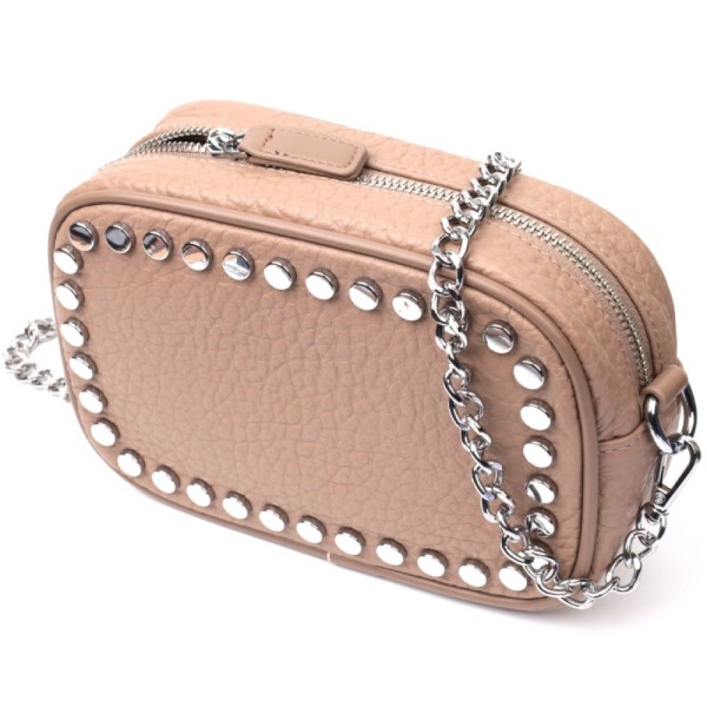 Модель: Жіноча шкіряна декорована металевими кнопками Беже