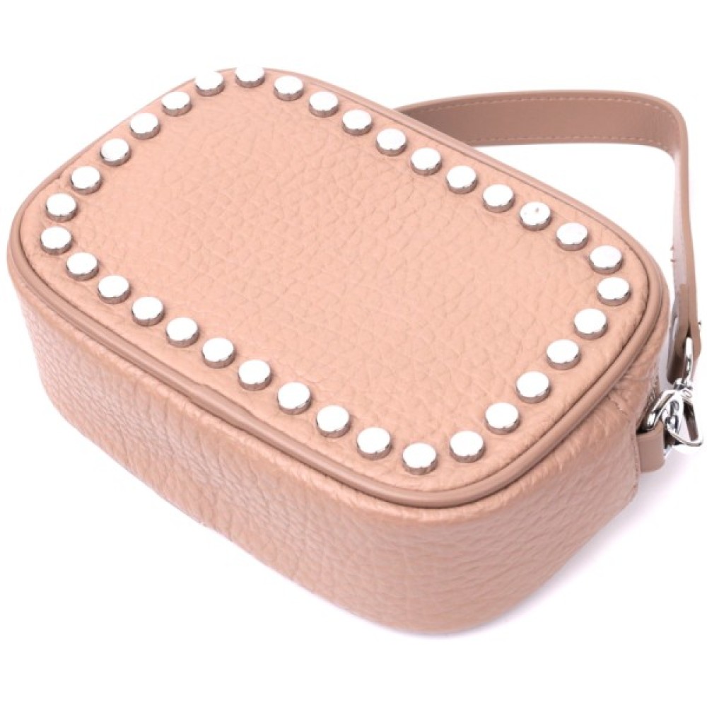 Сумка Vintage Жіноча шкіряна декорована металевими кнопками Бежева (22335)