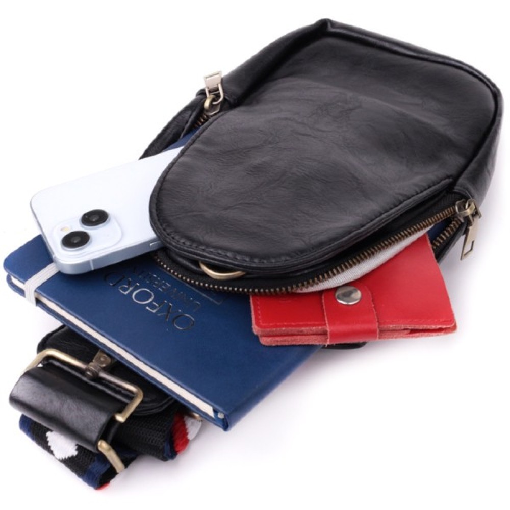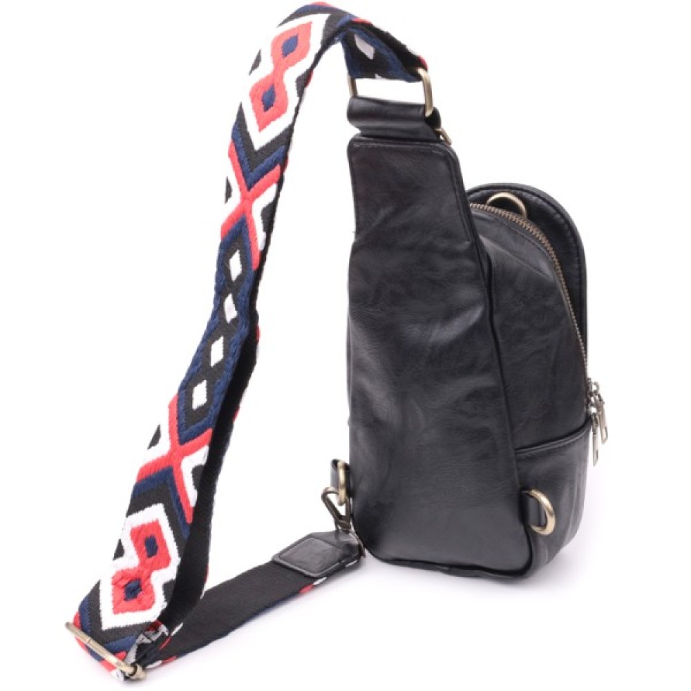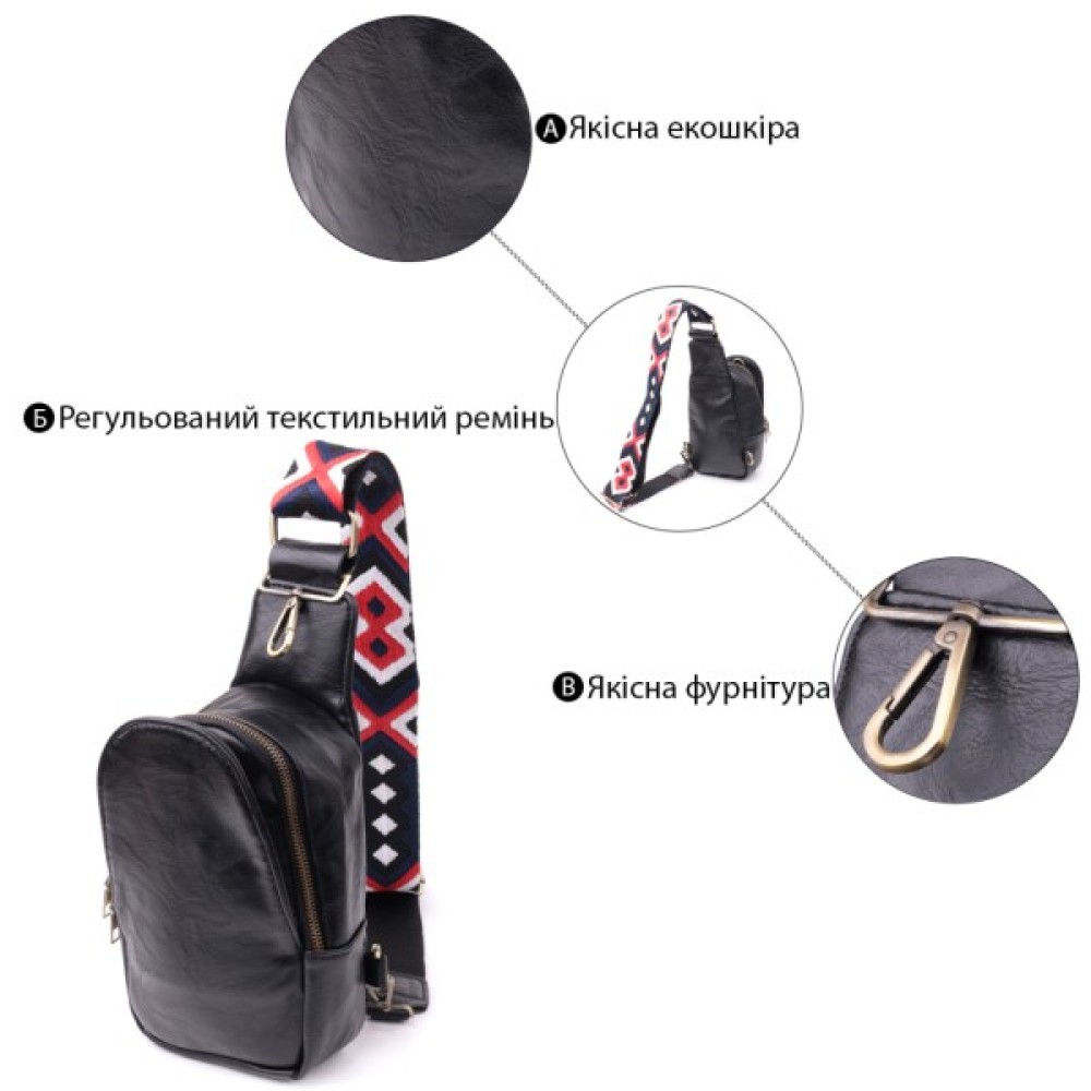 Модель: Жіноча слінг через плече з екошкіри Чорна